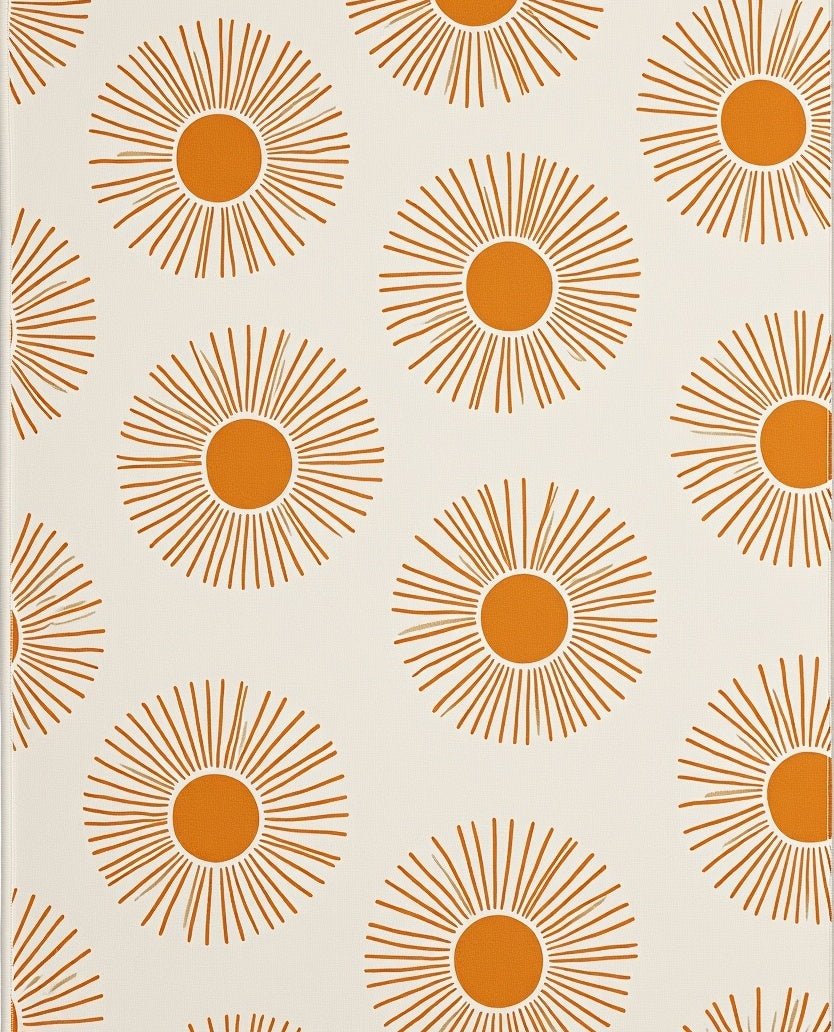 Celestial Mosaic Featuring Radiating Sunburst Motifs(Orange)