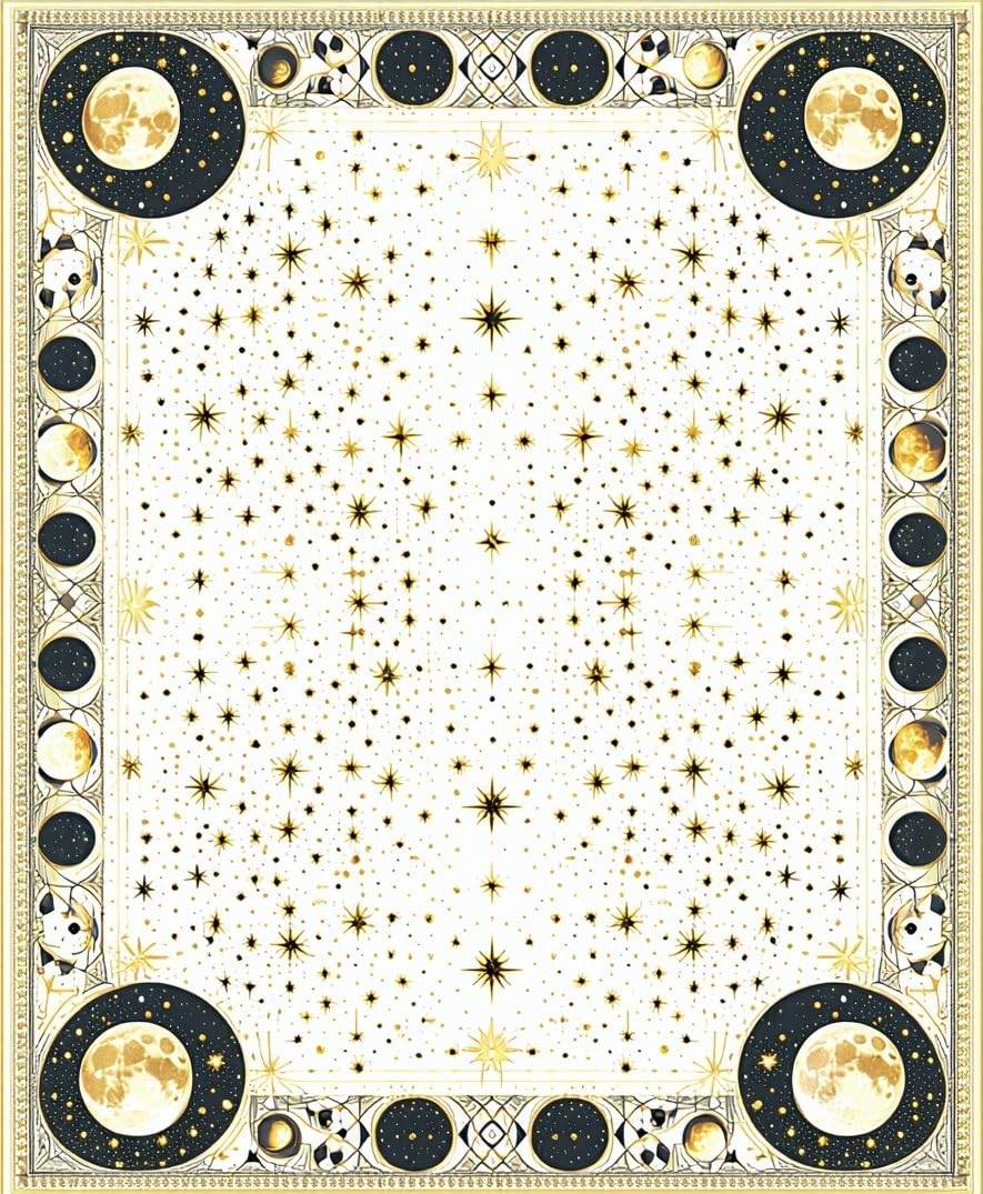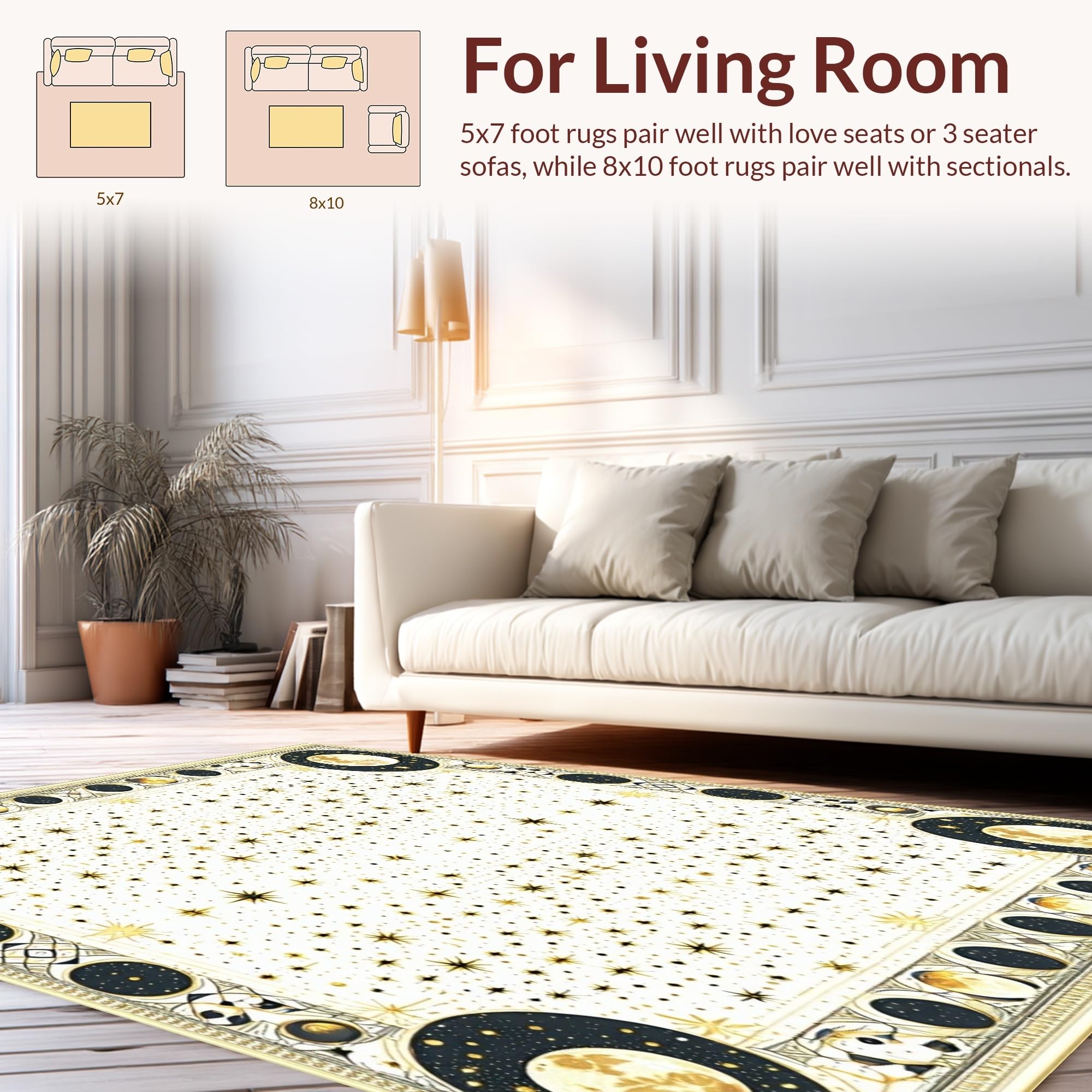 Ultra Soft Area Rug, Non Slip, Stain Resistant, Washable Area Rugs for Living Room, Bedroom, Celestial Stars Area Cream & Black(White) Overview: