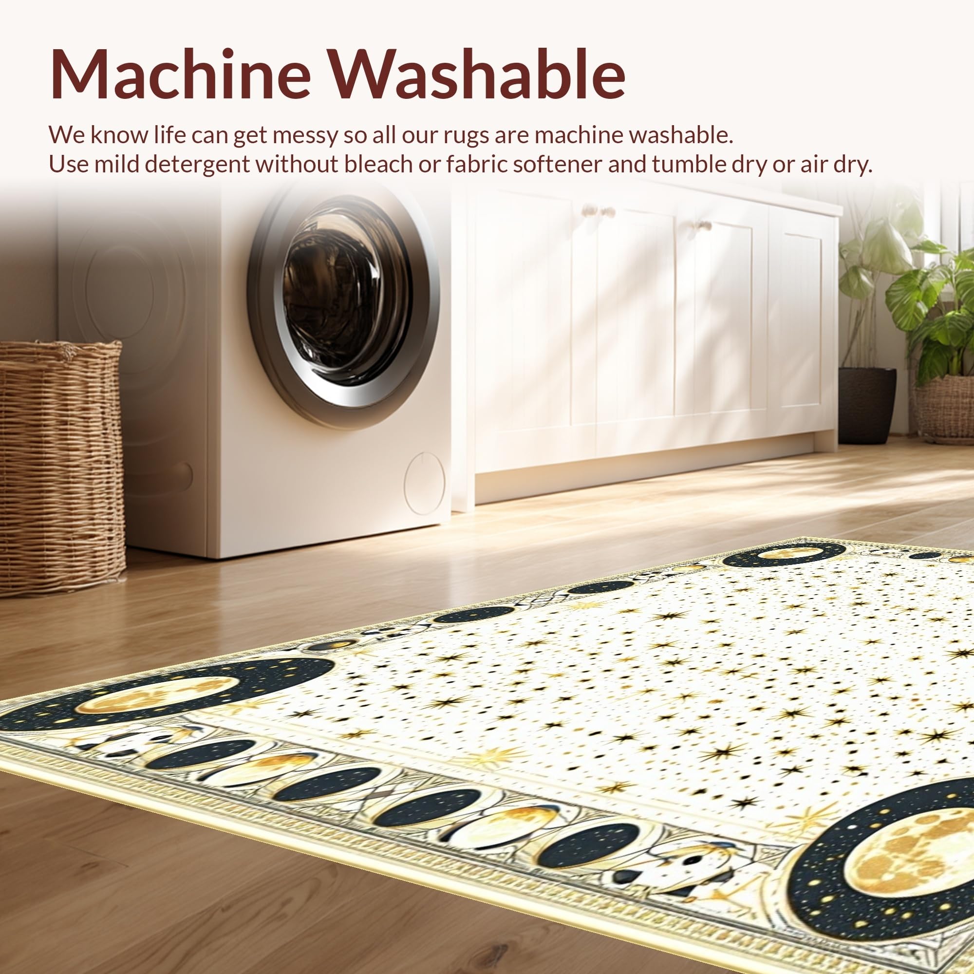 - Machine Washable: Our rugs can be easily thrown in the wash machine.