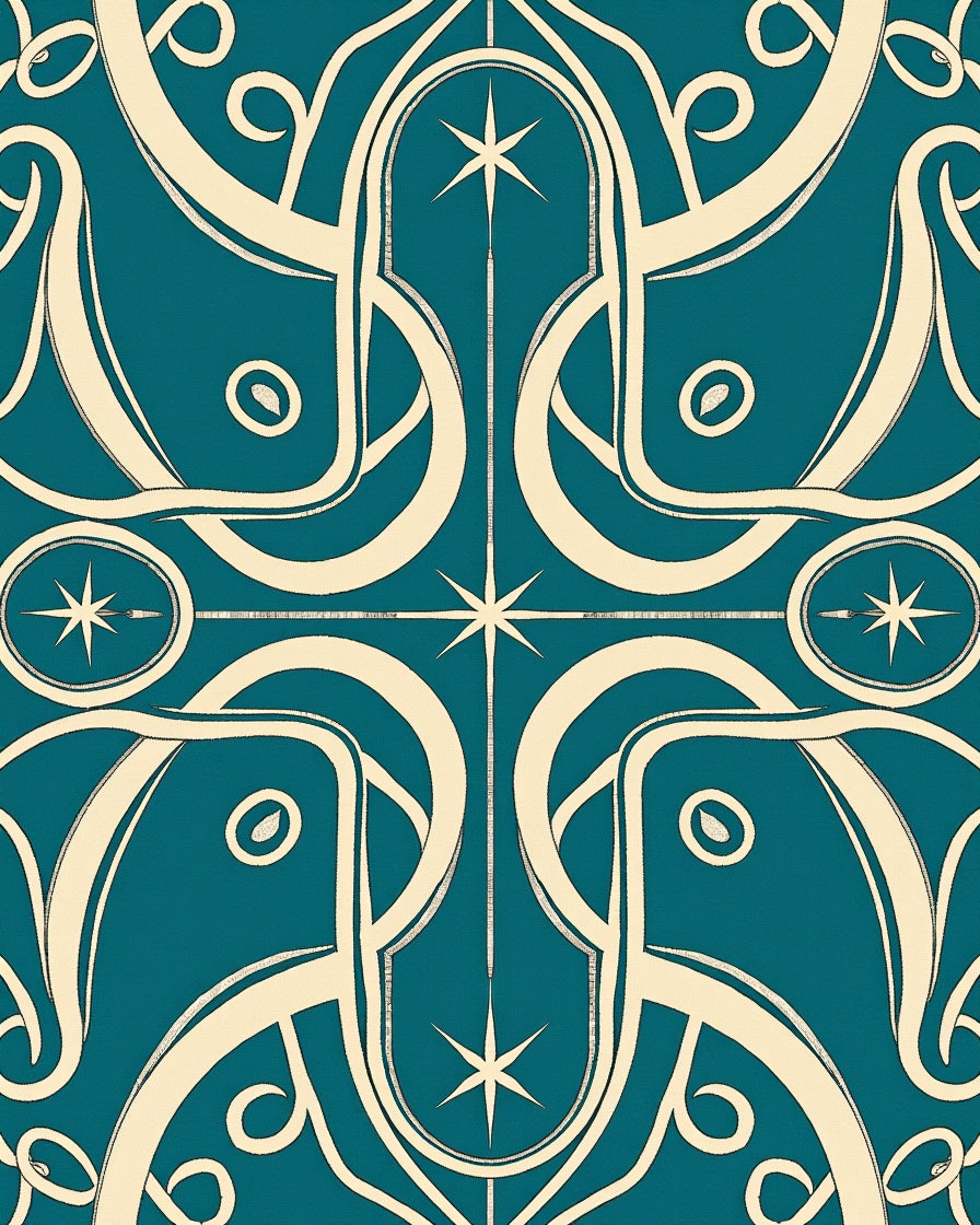 Celestial Swirl with Art Motifs and Modern Abstract Touches(Teal)