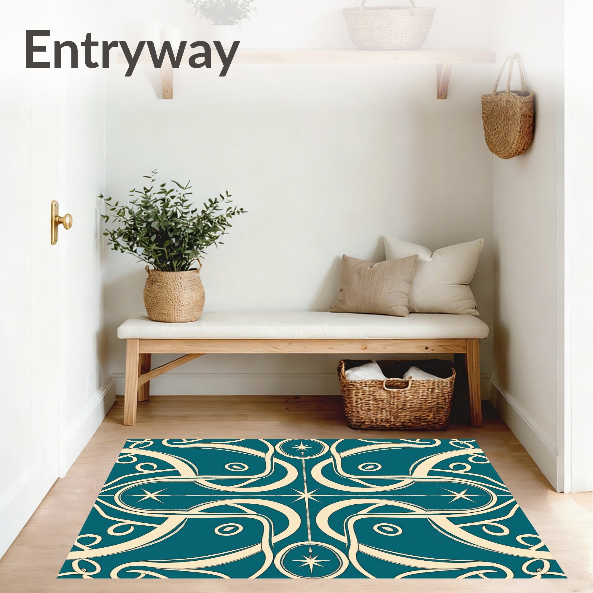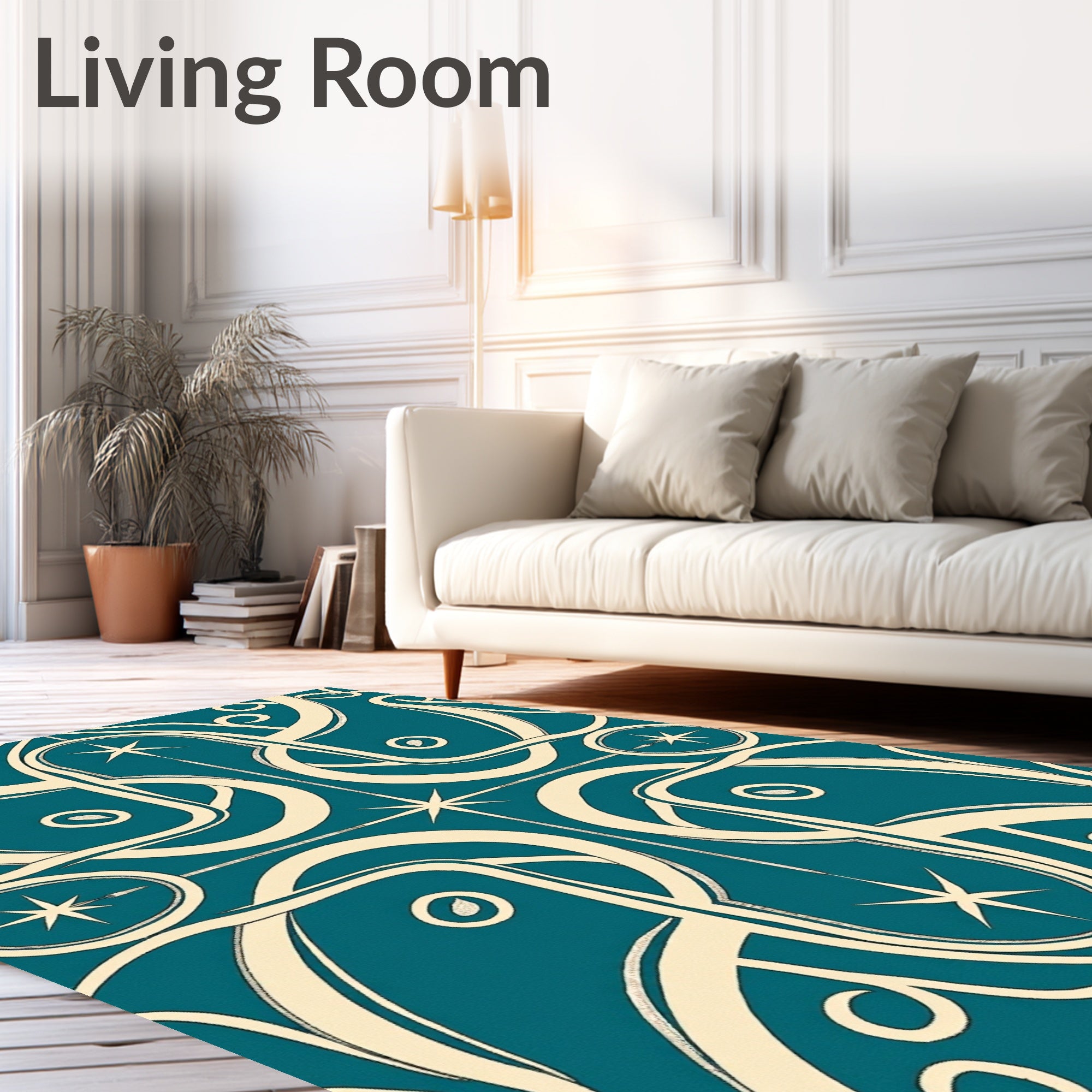 Ultra Soft Area Rug, Non Slip, Stain Resistant, Washable Area Rugs for Living Room, Bedroom, Celestial Swirl with Art Motifs and Modern Abstract Touches(Teal) Overview:
