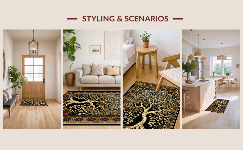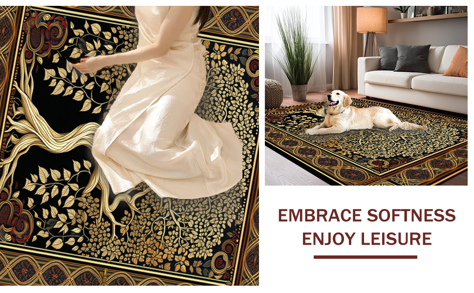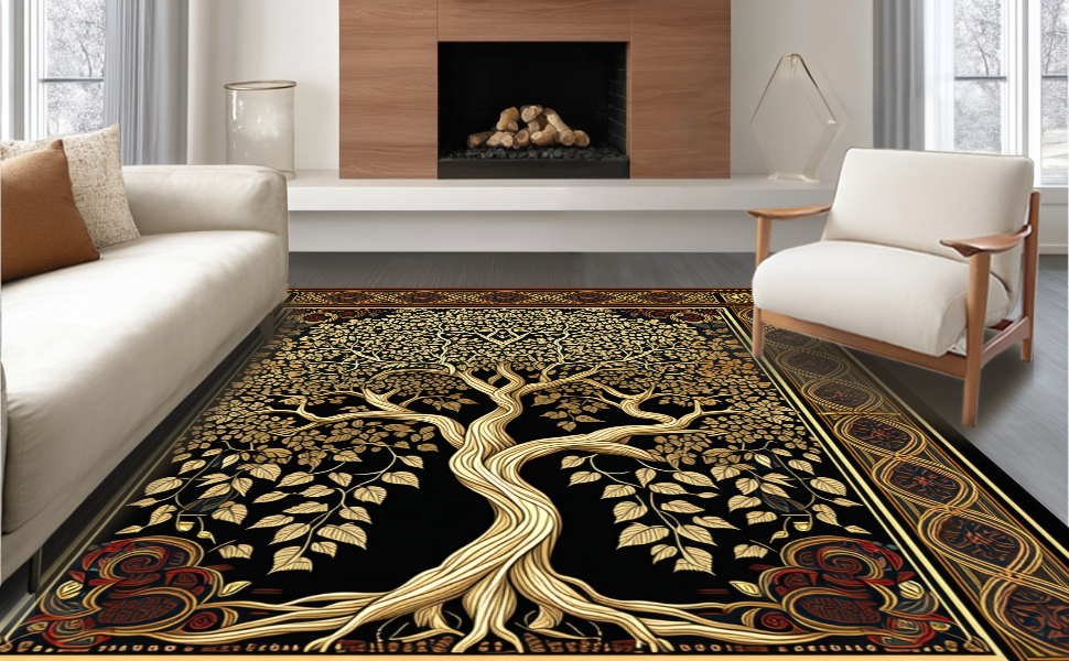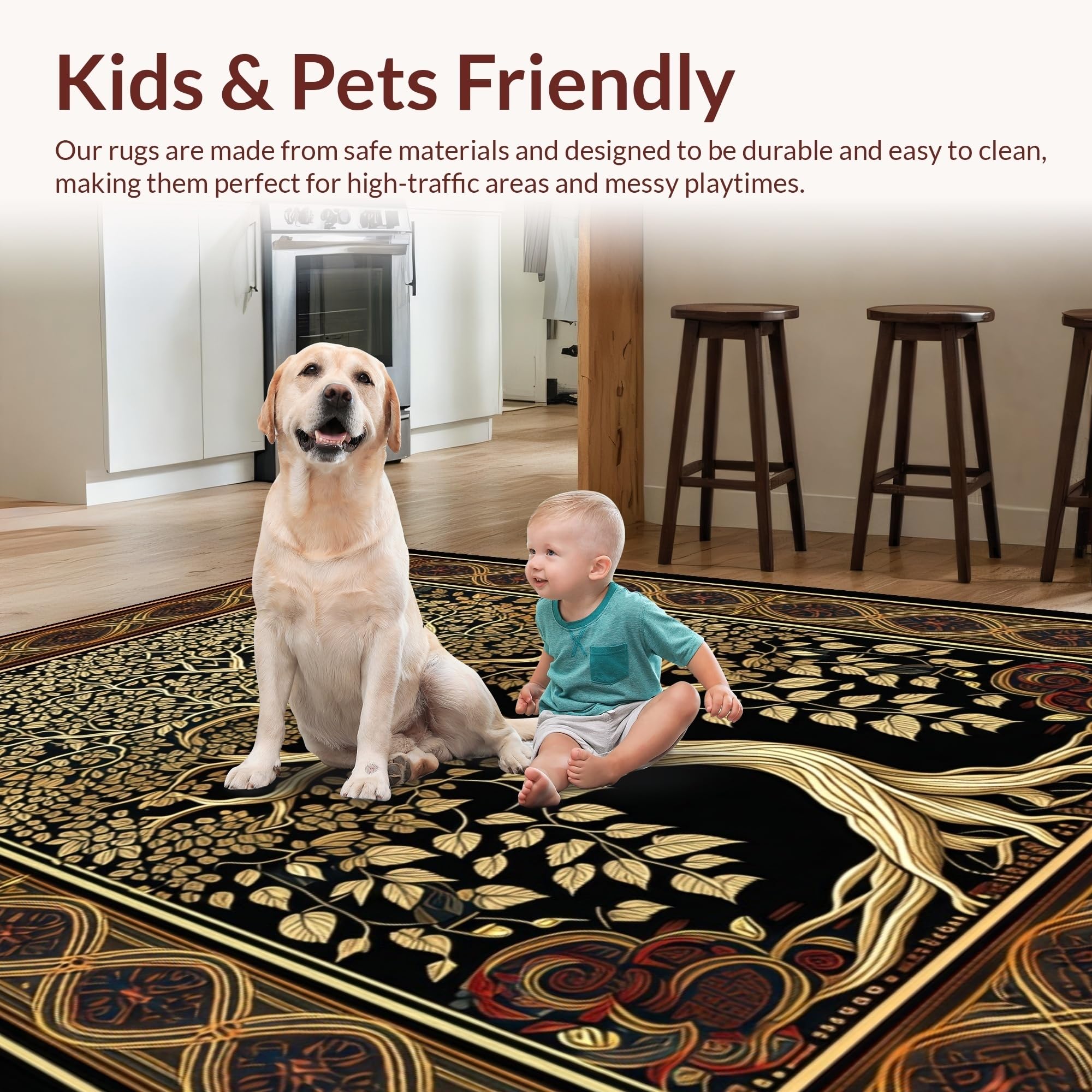 Ultra Soft Area Rug, Non Slip, Stain Resistant, Washable Area Rugs for Living Room, Bedroom, Celtic-Inspired Earthy Tones(Black) Overview: