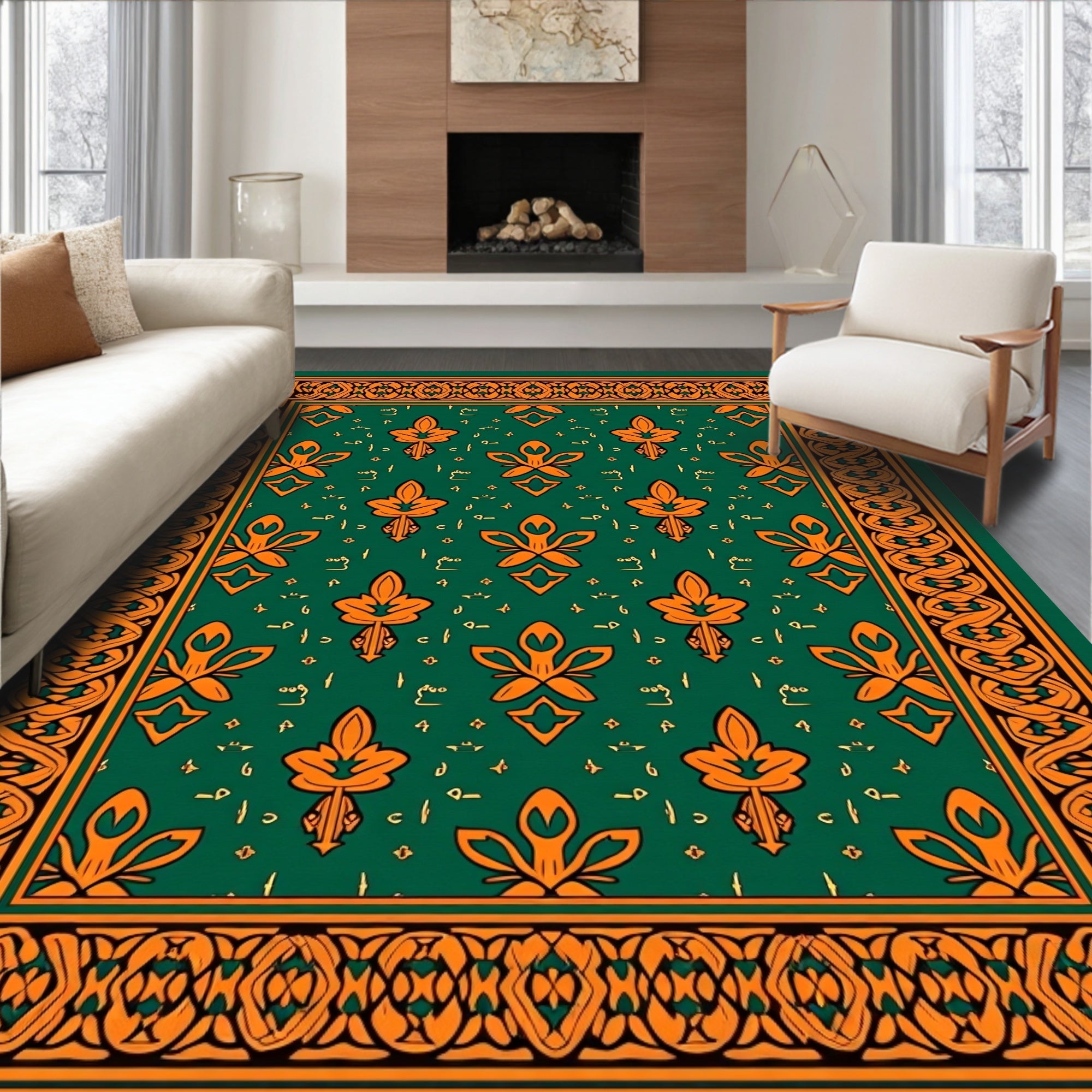 Ultra Soft Area Rug, Non Slip, Stain Resistant, Washable Area Rugs for Living Room, Bedroom, Celtic Knot Shamrock Design Floor Covering with Traditional Weaving(Green) Overview: