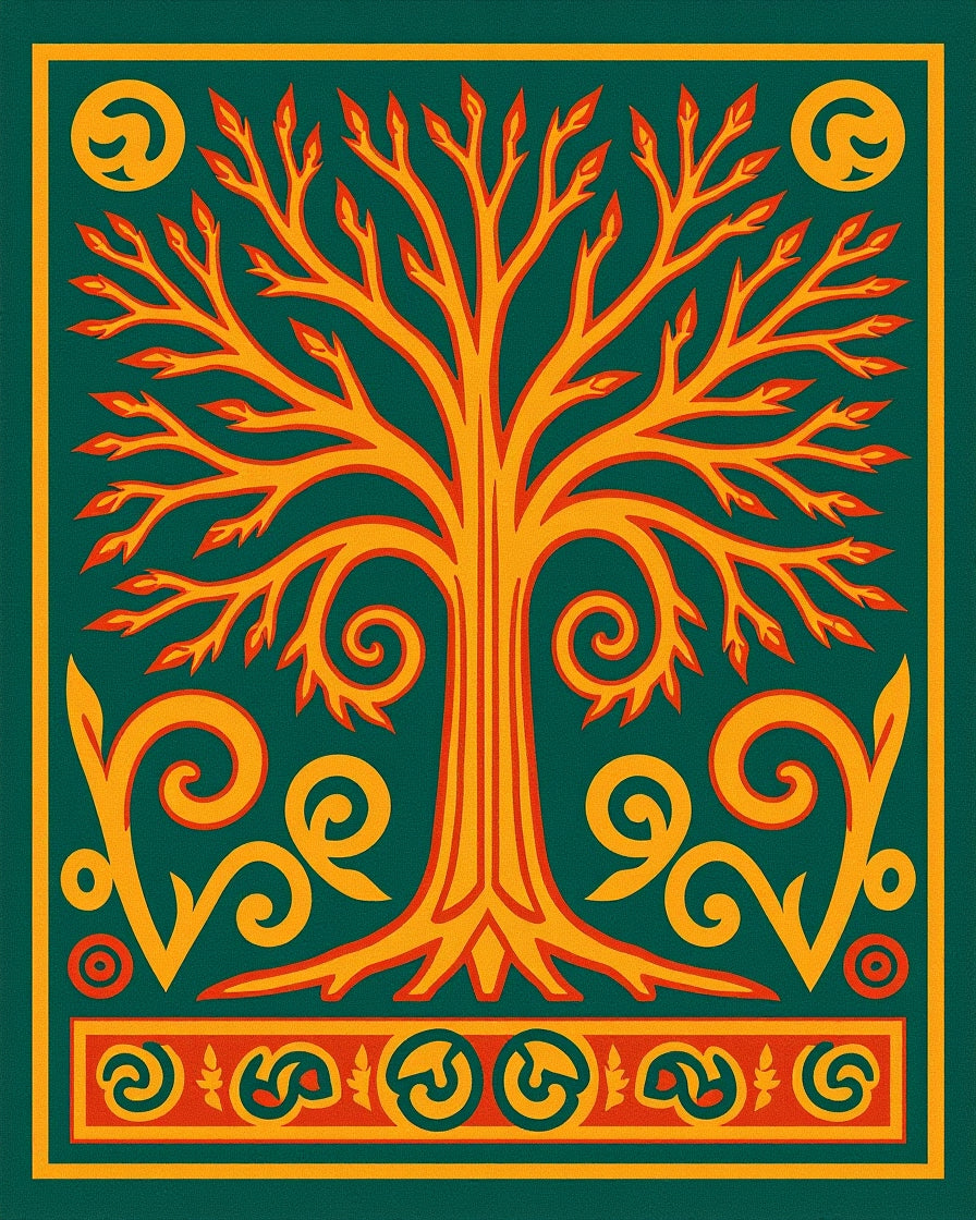 Celtic Tree Spirit Tapestry with Ancient Branch Motifs(Green)