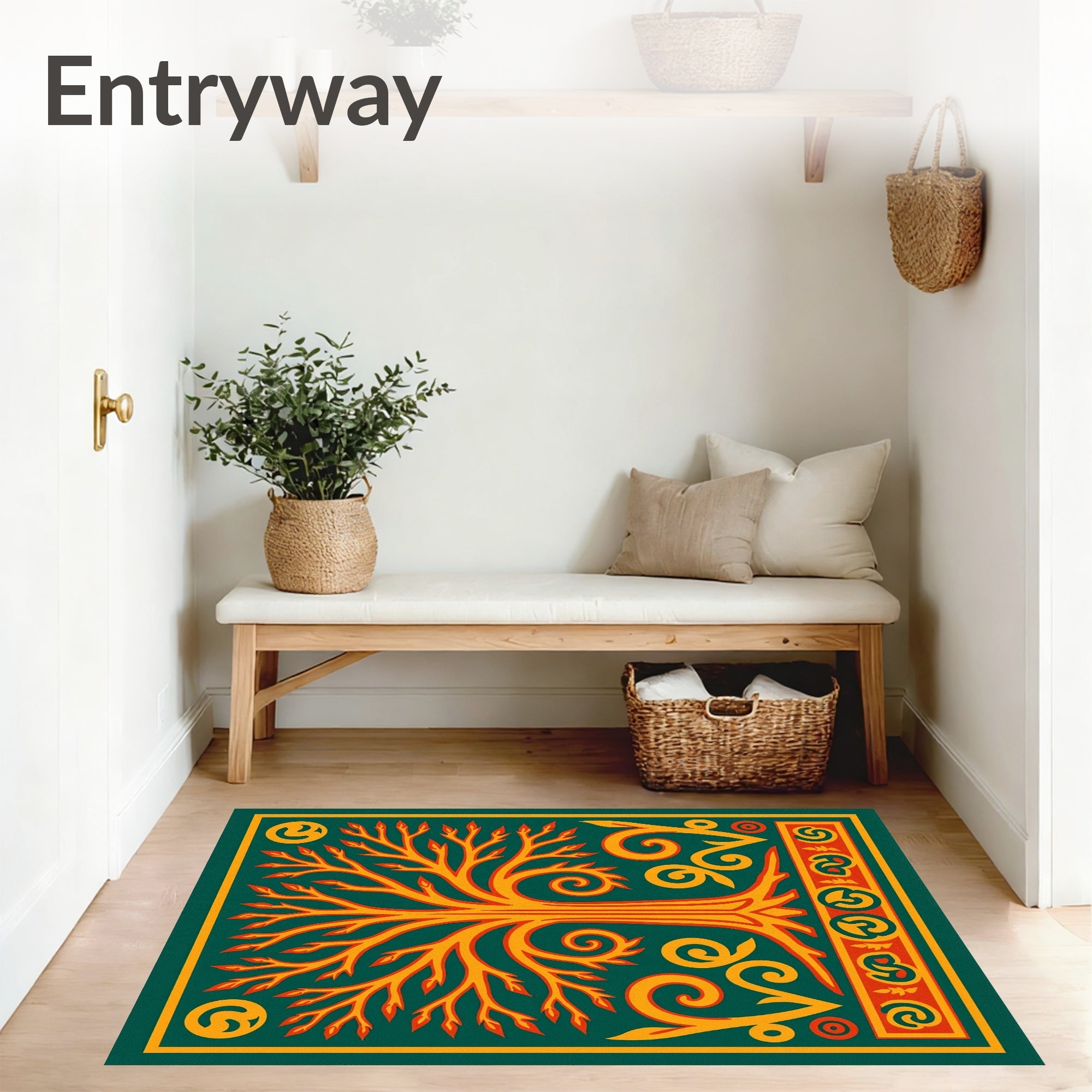 Ultra Soft Area Rug, Non Slip, Stain Resistant, Washable Area Rugs for Living Room, Bedroom, Celtic Tree Spirit Tapestry with Ancient Branch Motifs(Green) Overview: