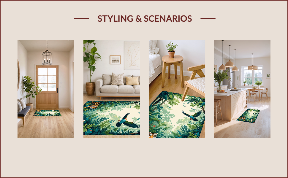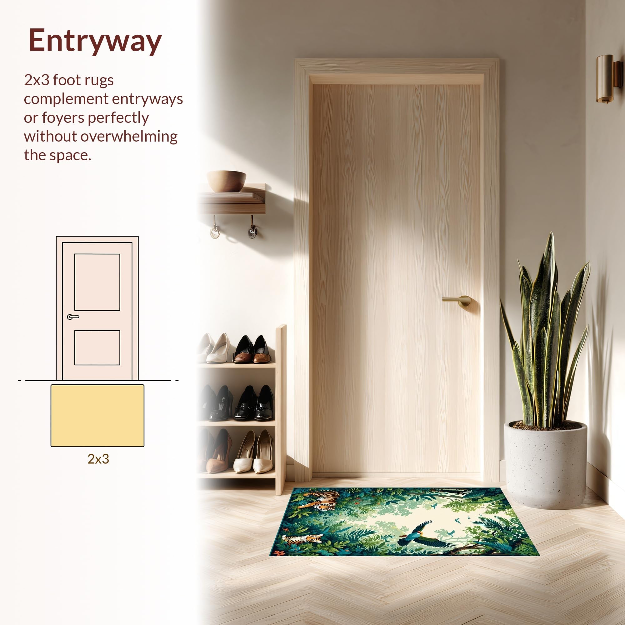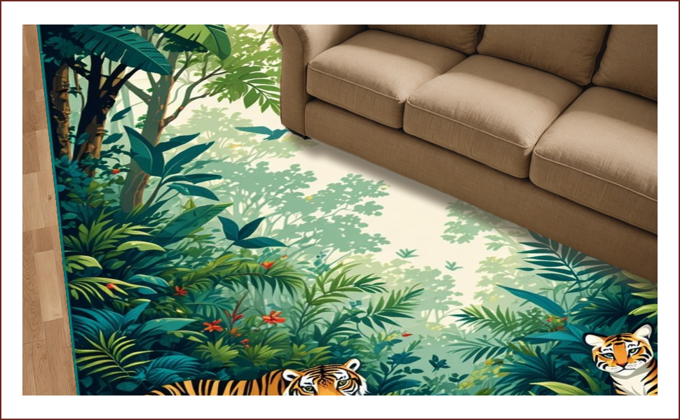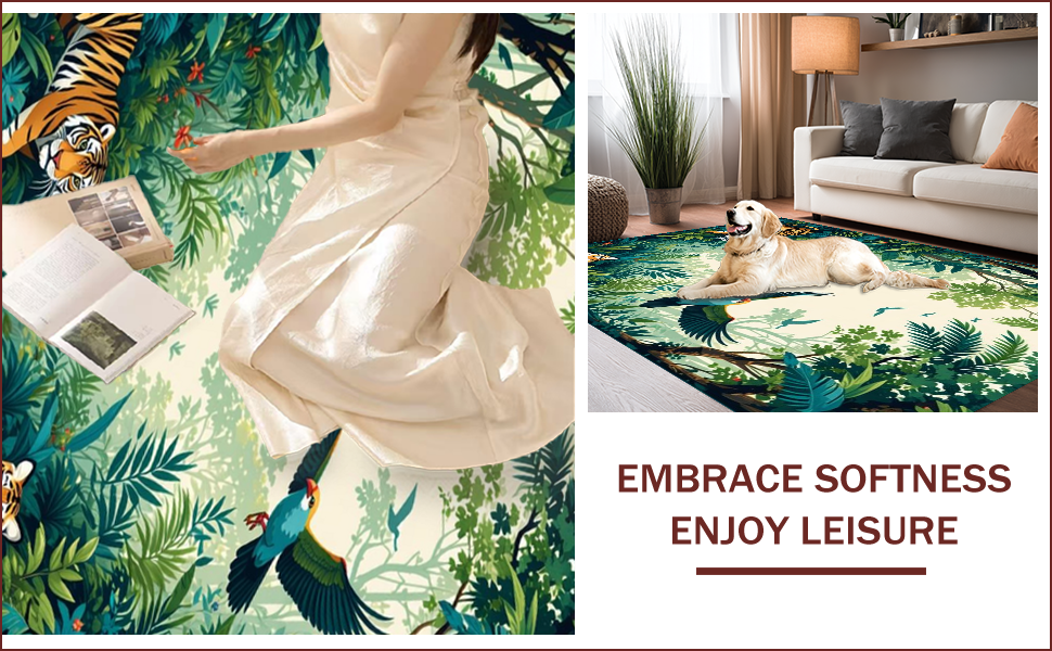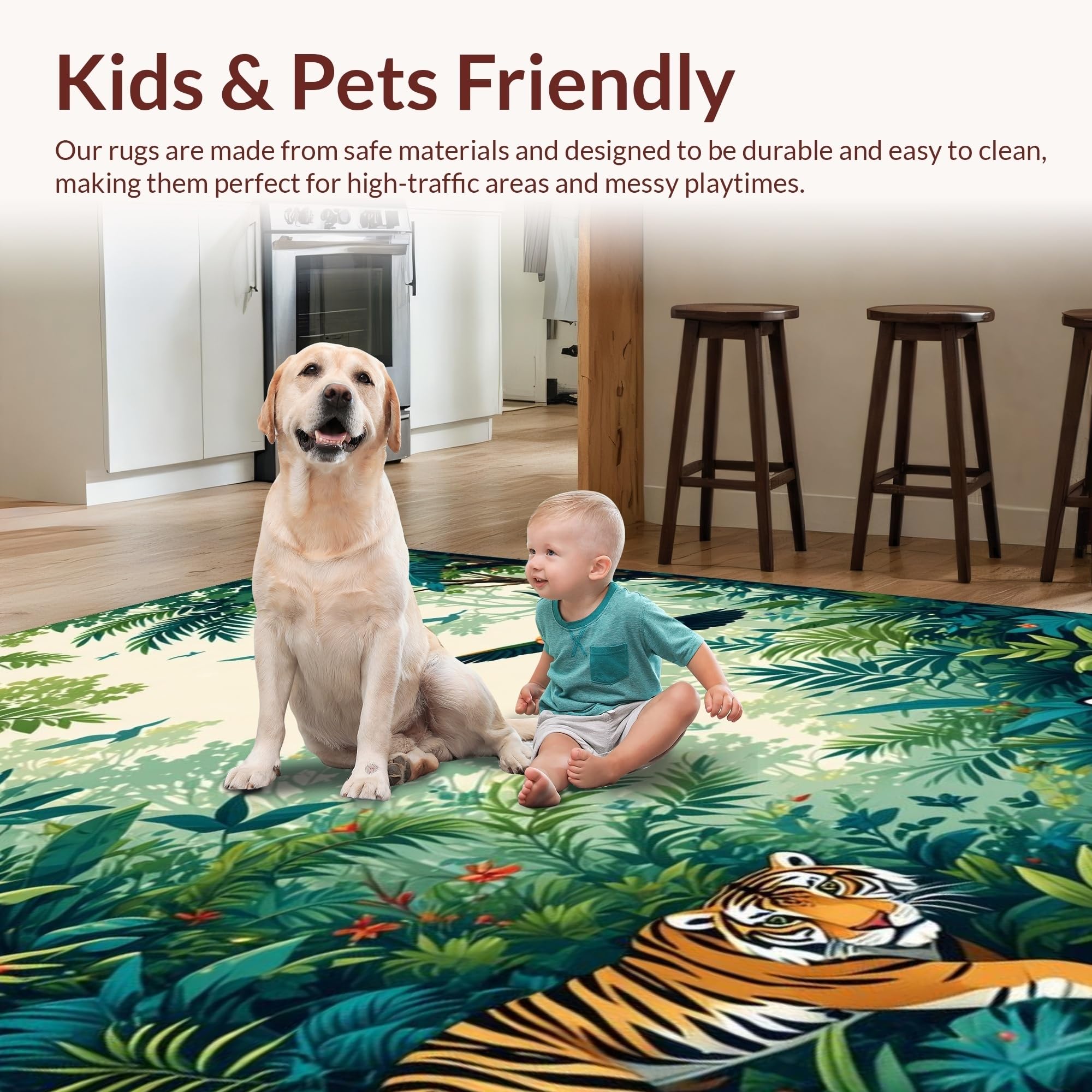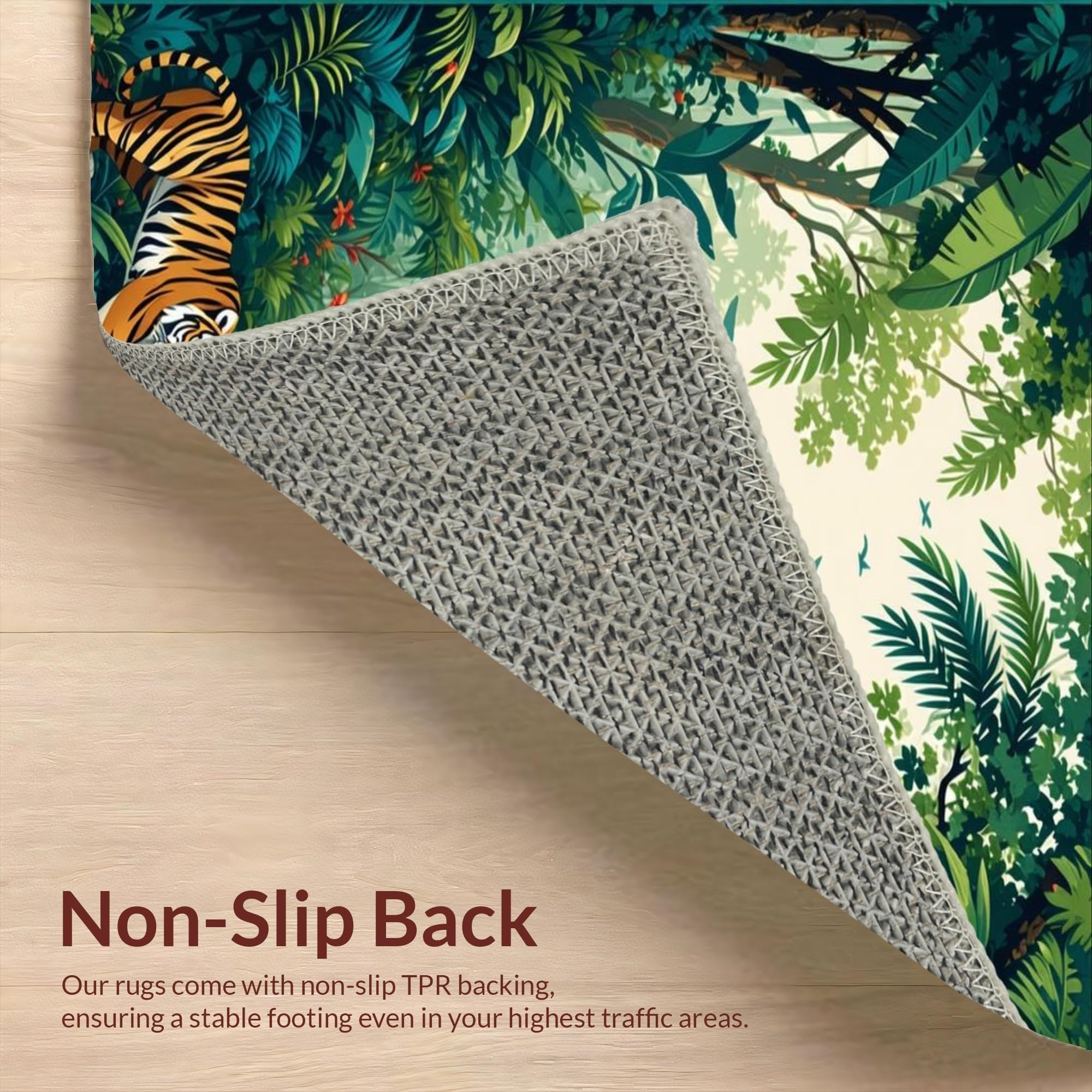 Ultra Soft Area Rug, Non Slip, Stain Resistant, Washable Area Rugs for Living Room, Bedroom, Charming Animal Print Wonderland(Green) Overview: