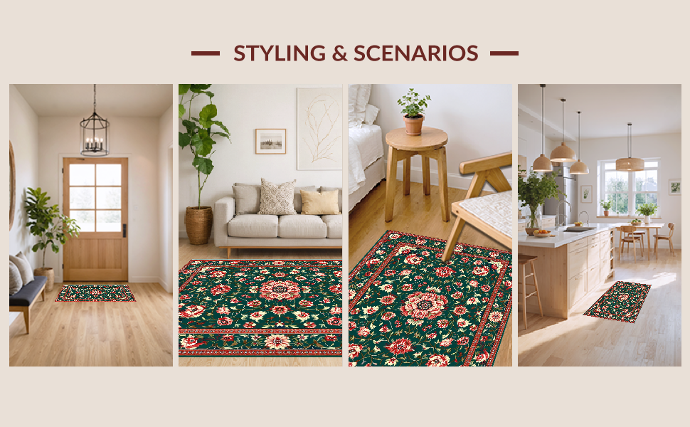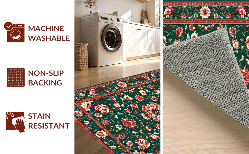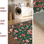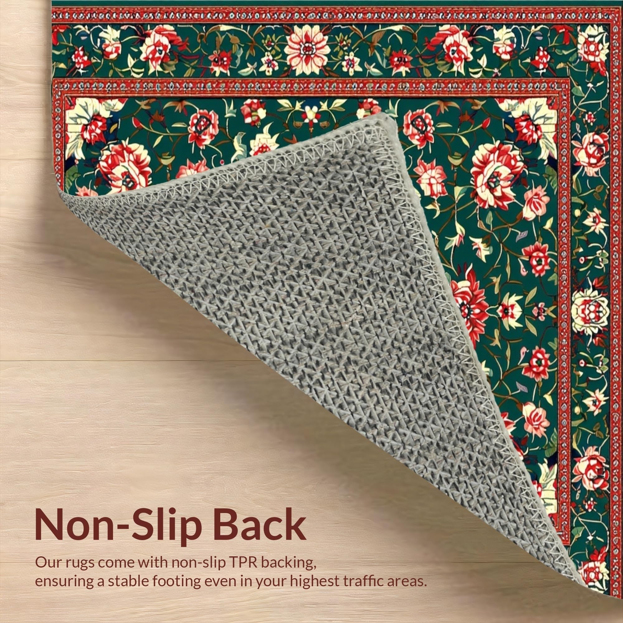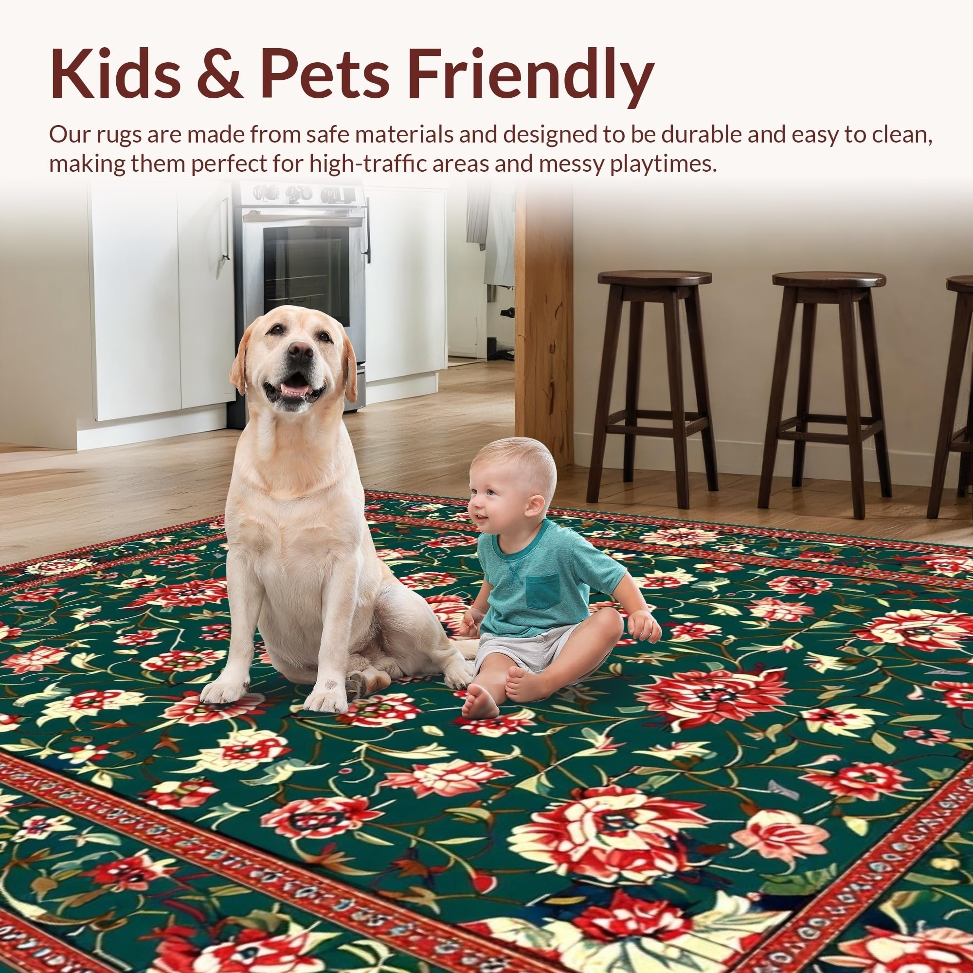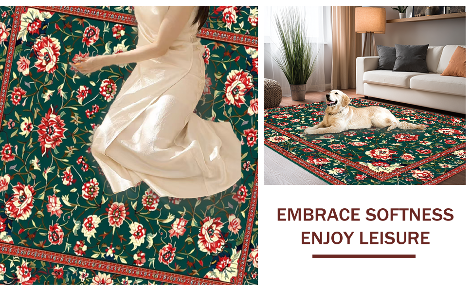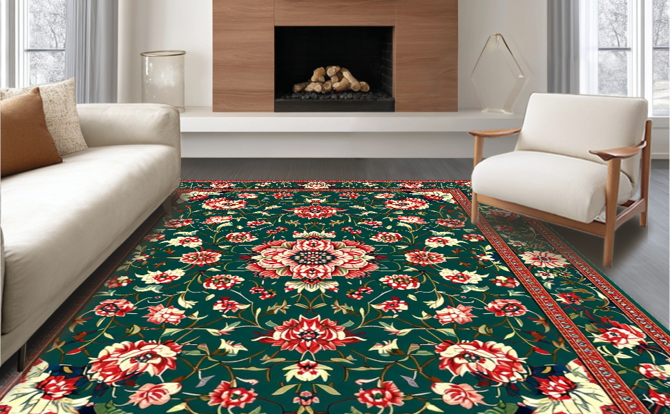 Ultra Soft Area Rug, Non Slip, Stain Resistant, Washable Area Rugs for Living Room, Bedroom, Charming Antique Floral Composition(Green) Overview: