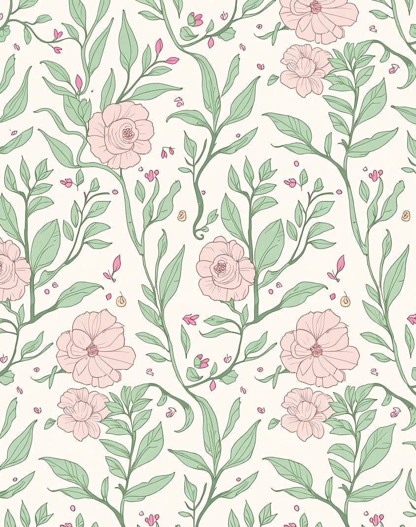 Charming Blossom Aviary Motif with Delicate Petal Vines and Songbird Accents(Pink)