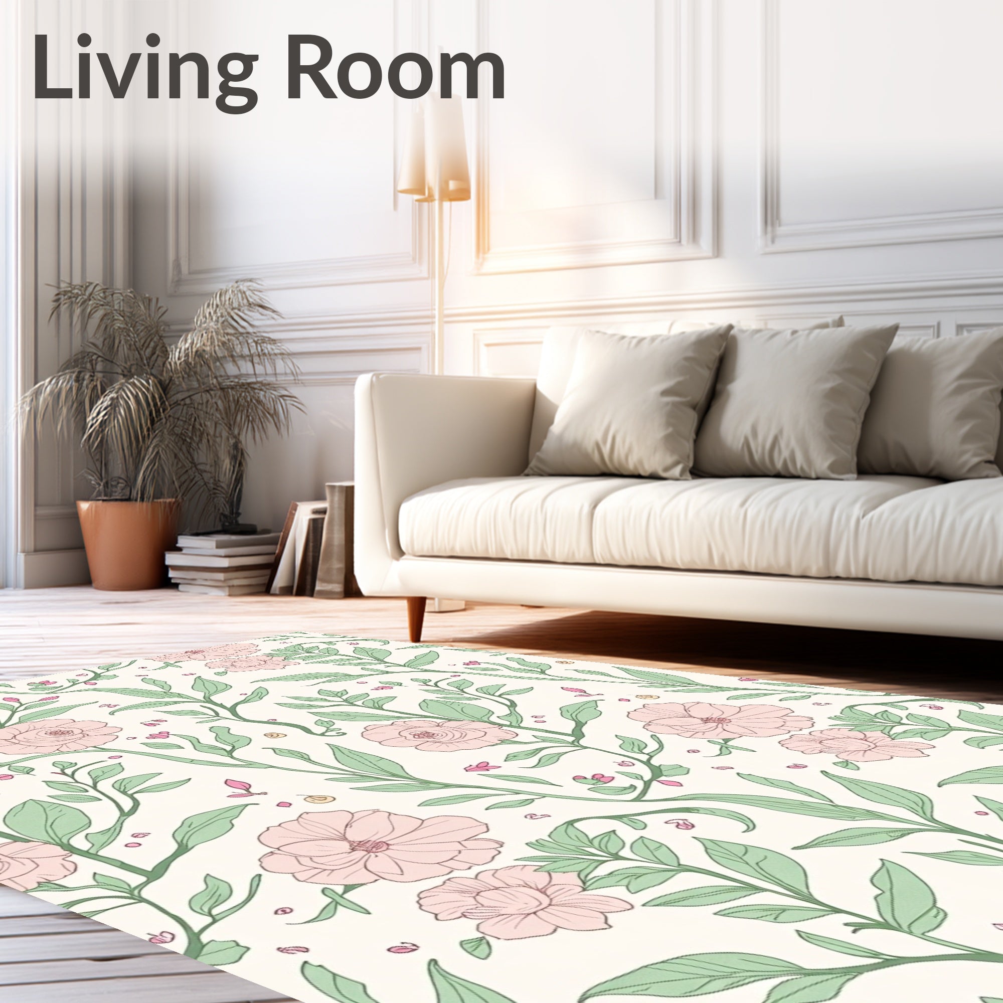 Ultra Soft Area Rug, Non Slip, Stain Resistant, Washable Area Rugs for Living Room, Bedroom, Charming Blossom Aviary Motif with Delicate Petal Vines and Songbird Accents(Pink) Overview: