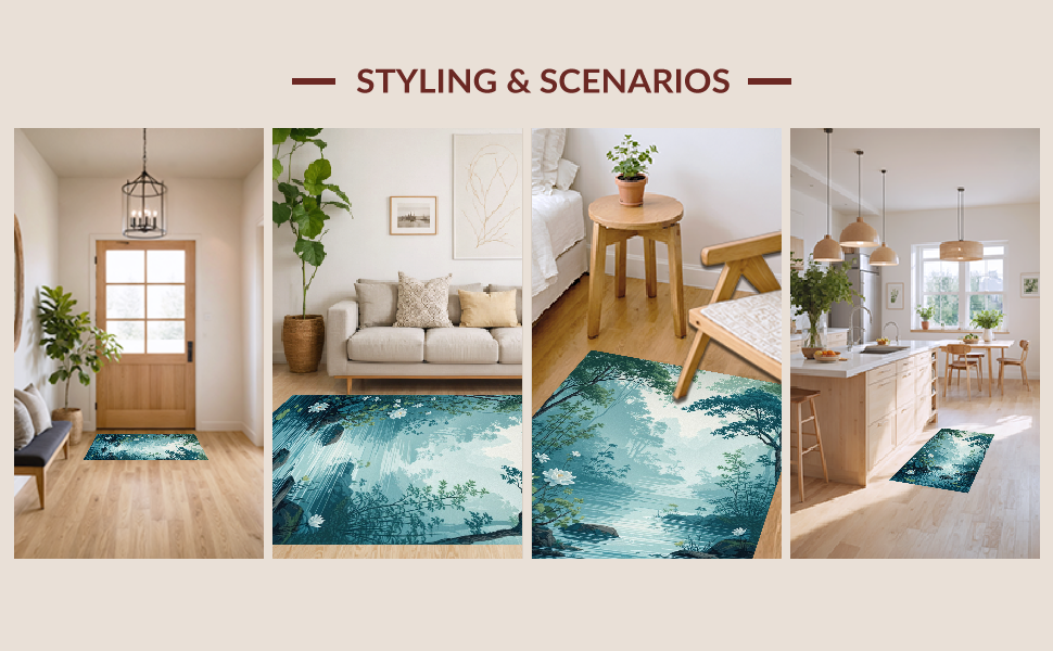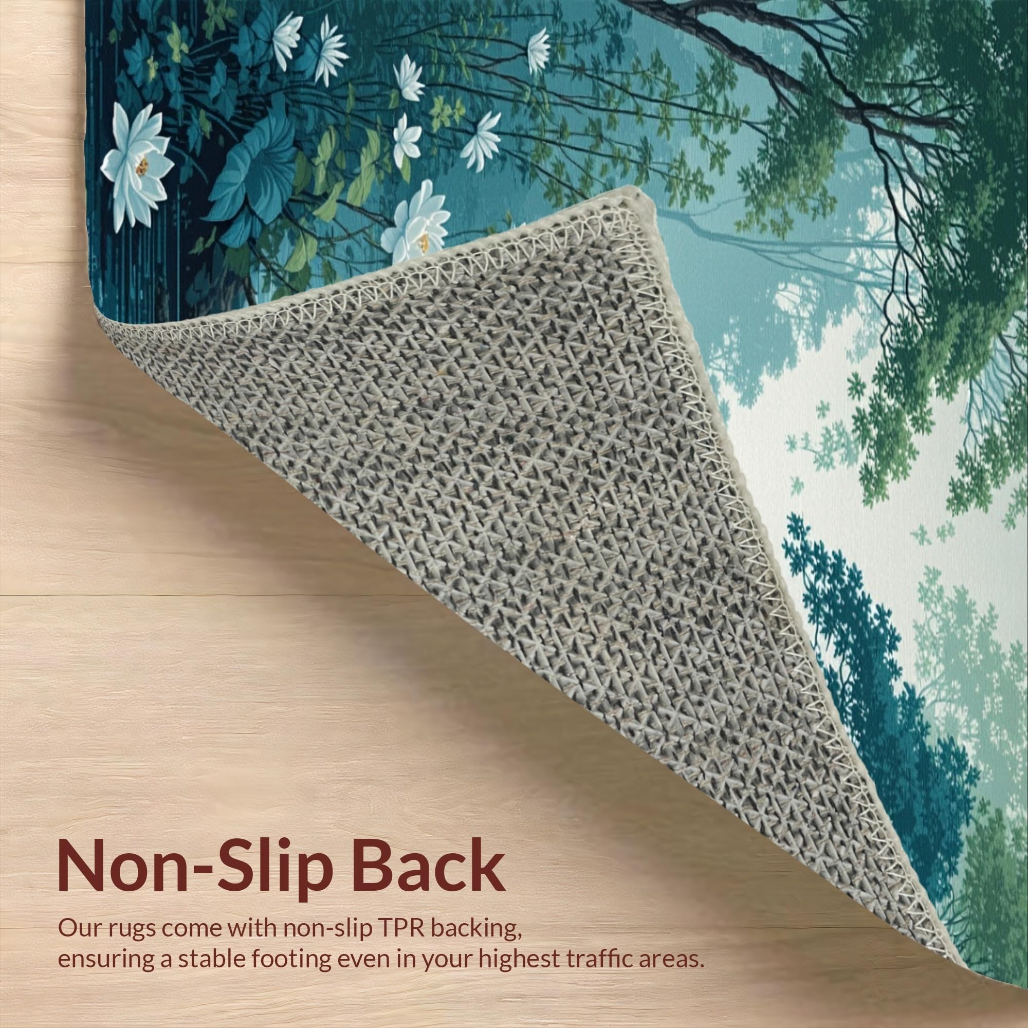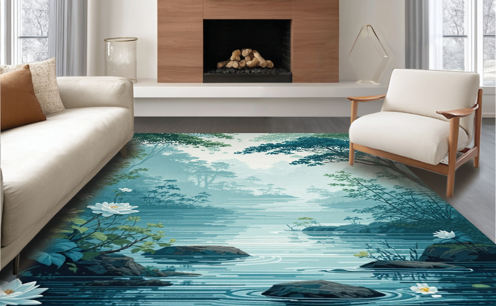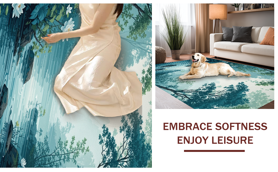 Ultra Soft Area Rug, Non Slip, Stain Resistant, Washable Area Rugs for Living Room, Bedroom, Charming Blue and Green Abstract Scene(Blue) Overview:
