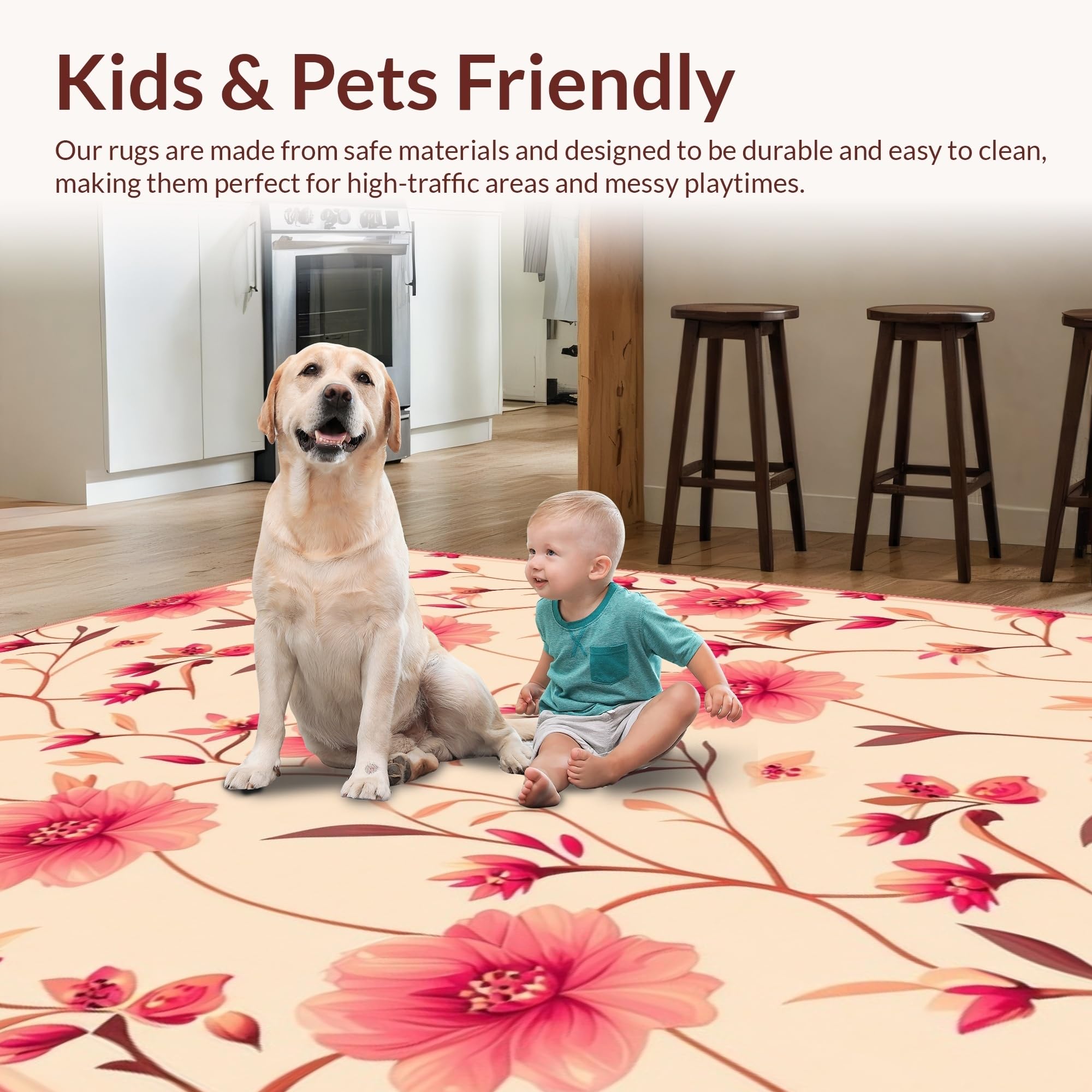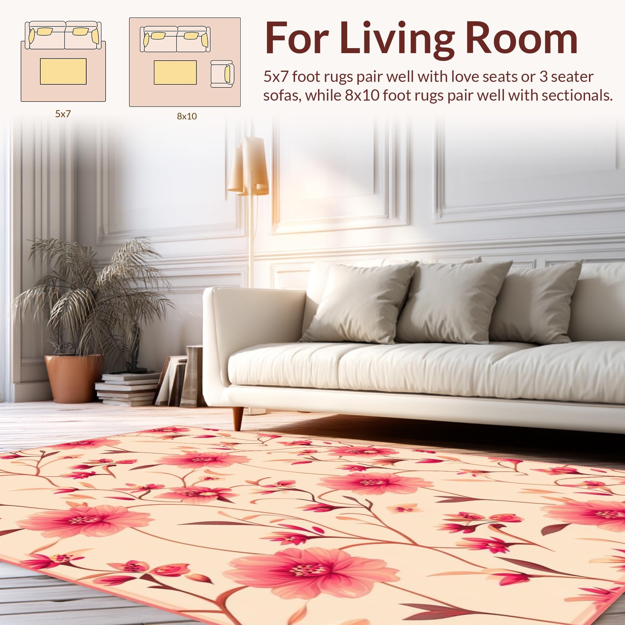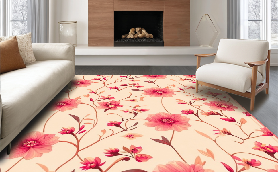 Ultra Soft Area Rug, Non Slip, Stain Resistant, Washable Area Rugs for Living Room, Bedroom, Charming Cartoonish Blossom Style(Pink) Overview: