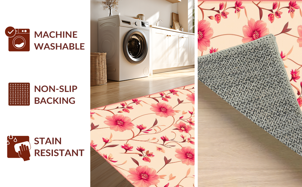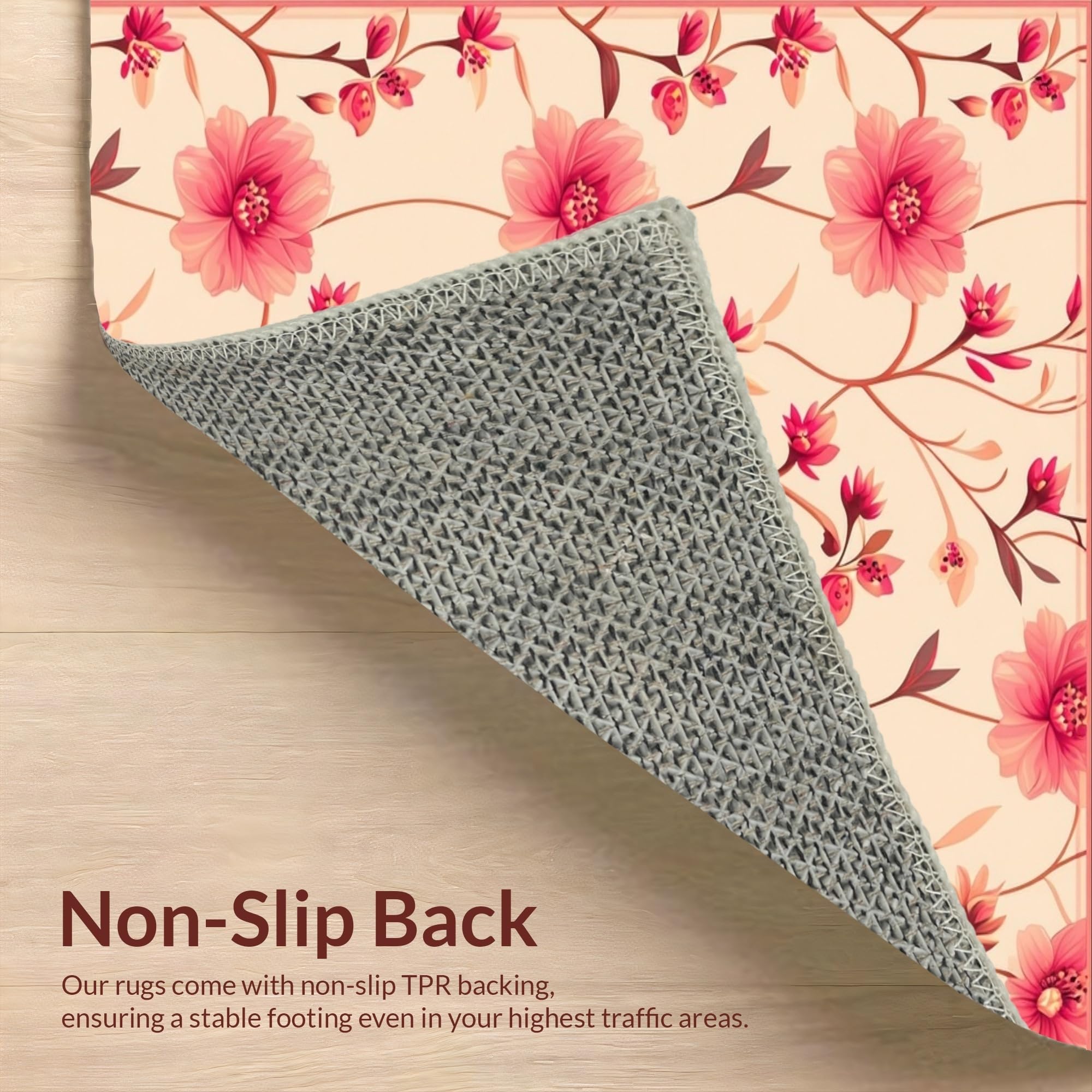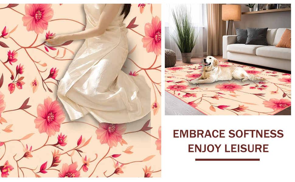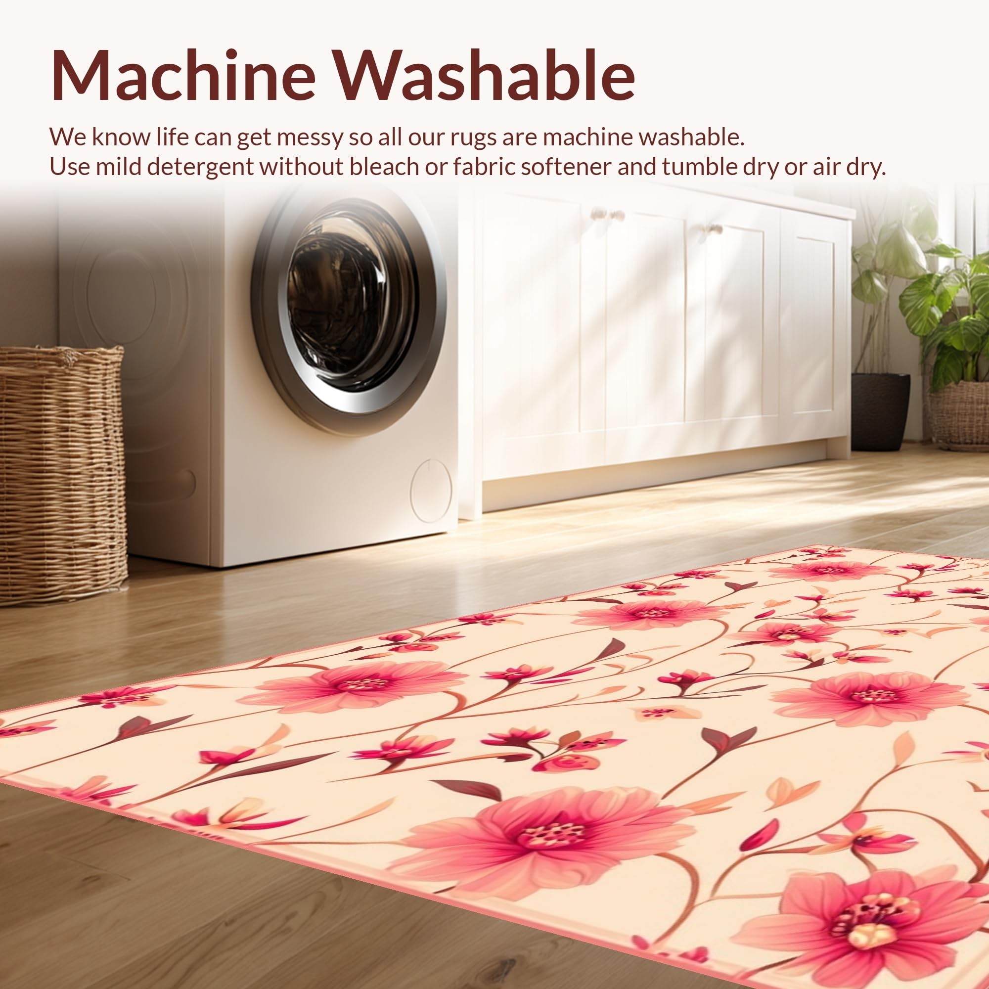 Ultra Soft Area Rug, Non Slip, Stain Resistant, Washable Area Rugs for Living Room, Bedroom, Charming Cartoonish Blossom Style(Pink) Overview: