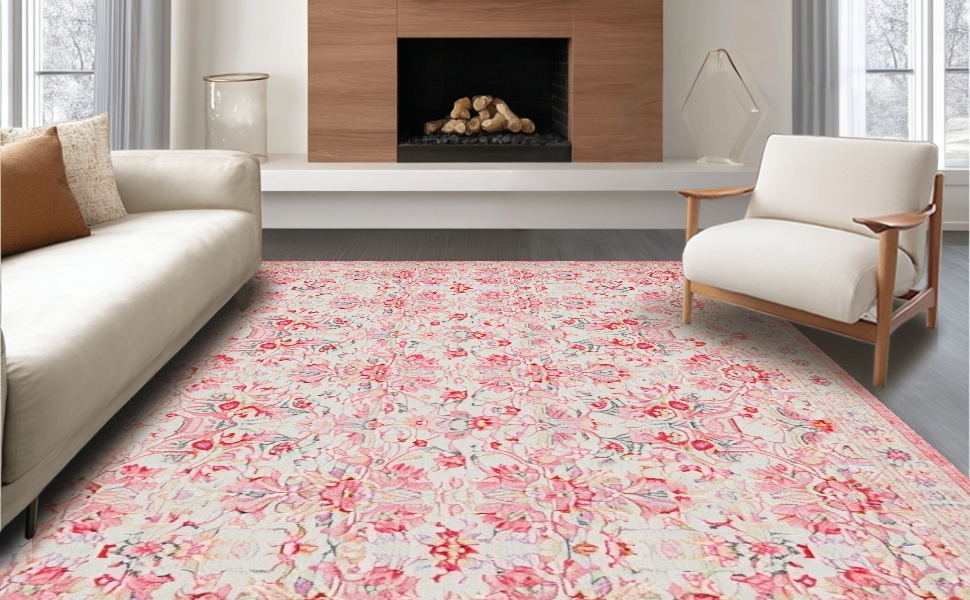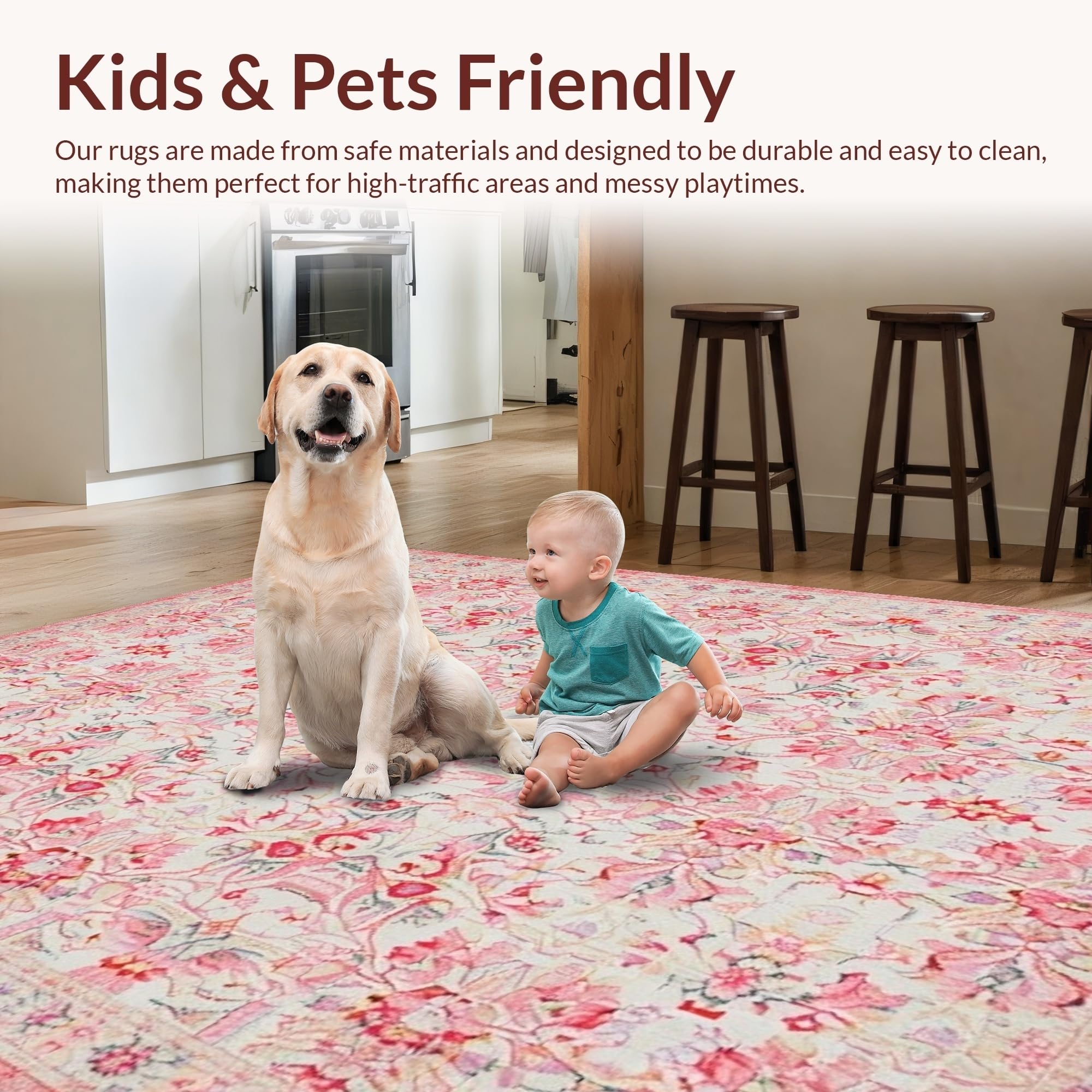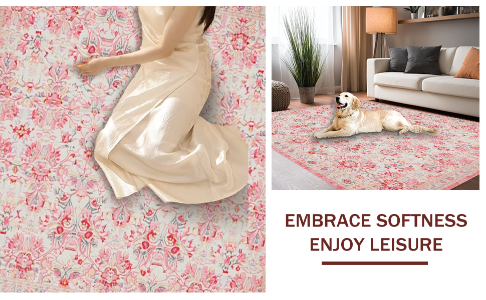 Ultra Soft Area Rug, Non Slip, Stain Resistant, Washable Area Rugs for Living Room, Bedroom, Charming Casual Shag Decor Element(Pink) Overview:
