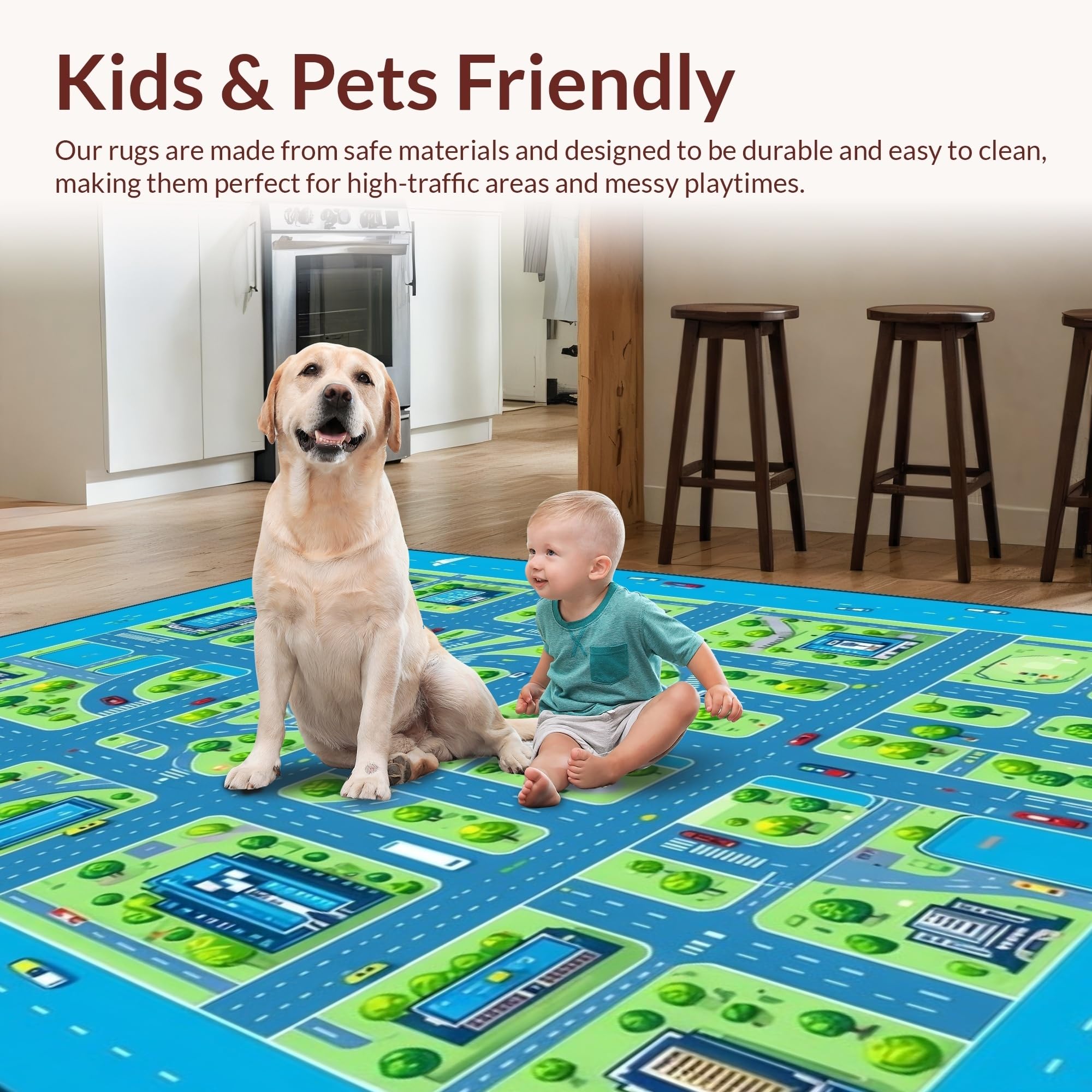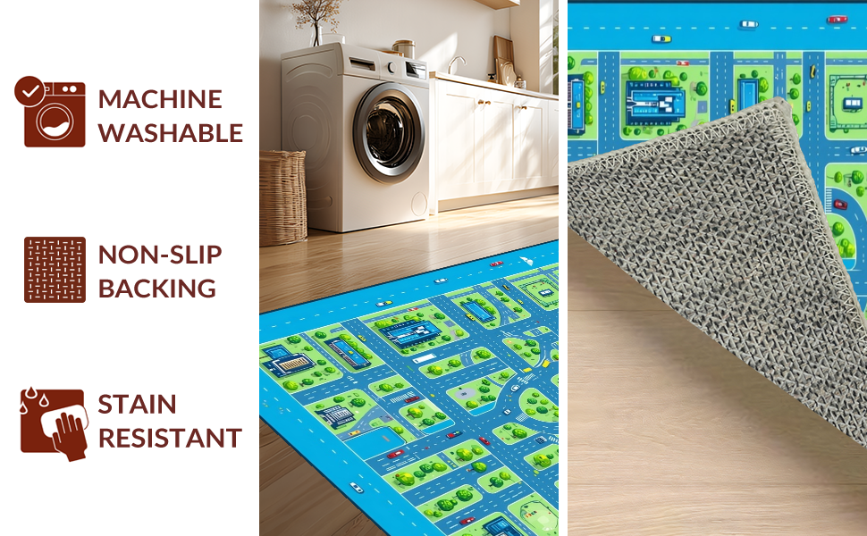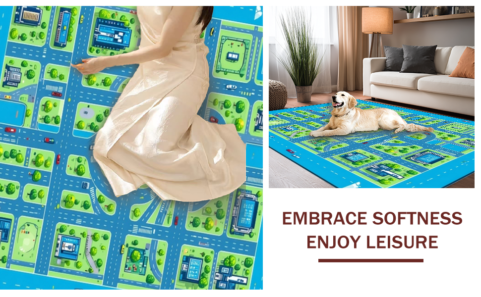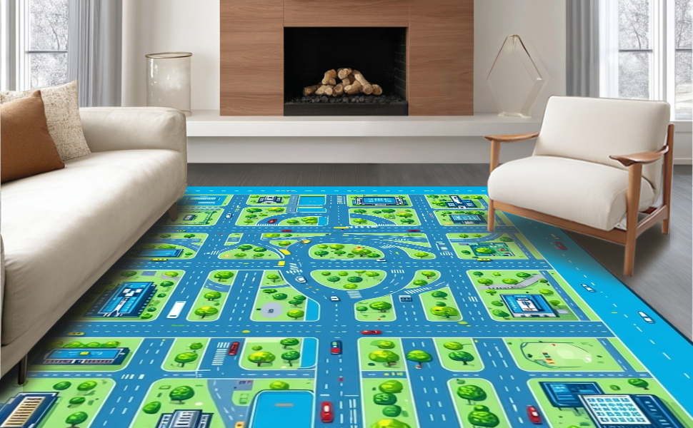 Ultra Soft Area Rug, Non Slip, Stain Resistant, Washable Area Rugs for Living Room, Bedroom, Charming Child-Friendly Urban Map Design(Blue) Overview: