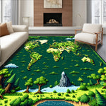 Flatwoven High Traffic Area Rug, Charming Circular World Design Aesthetic, Non Slip, Stain Resistant, Washable Area Rugs for Living Room, Bedroom (Green) Overview: