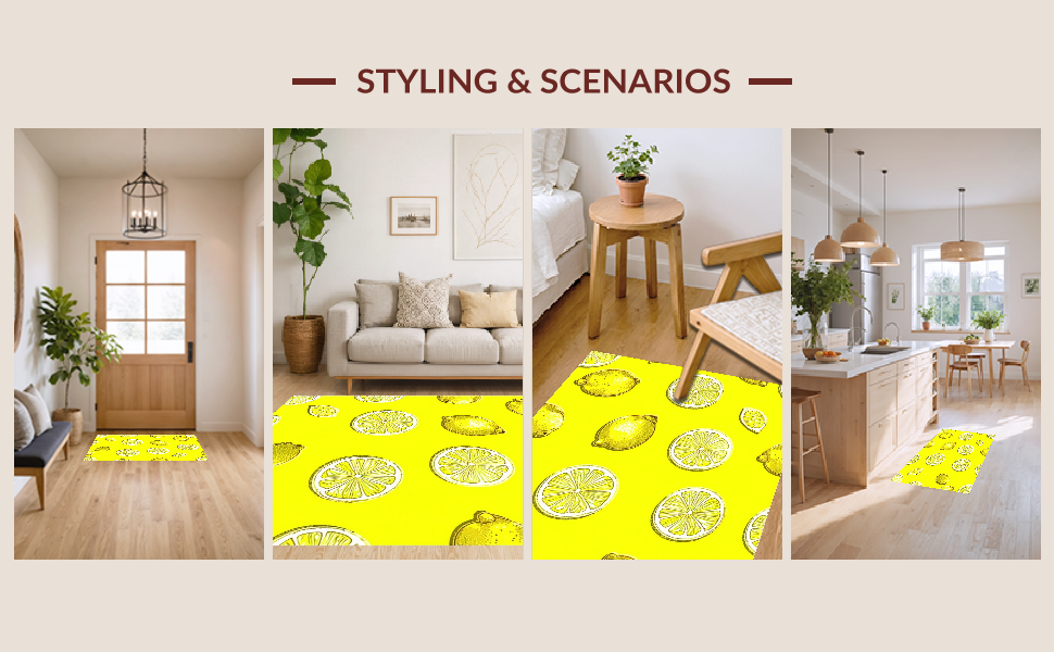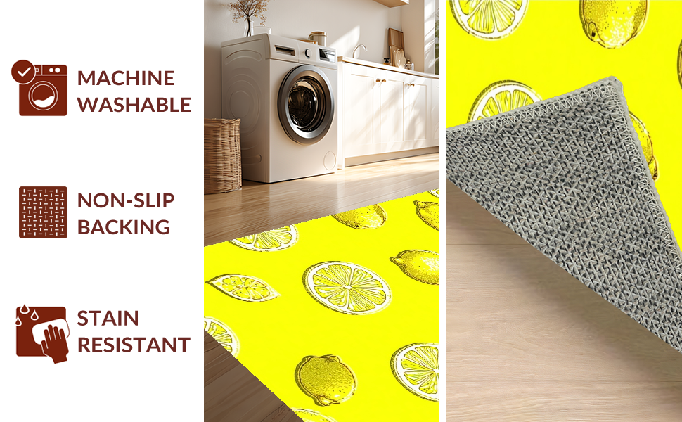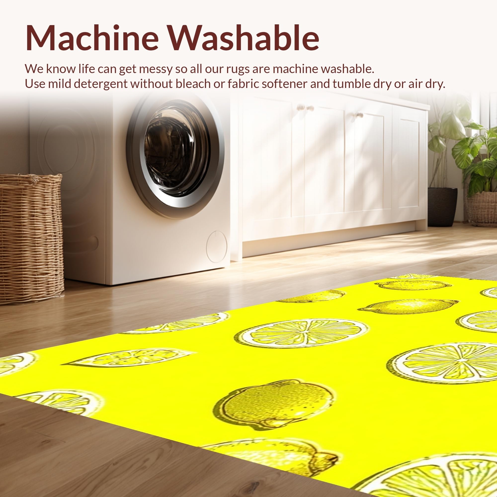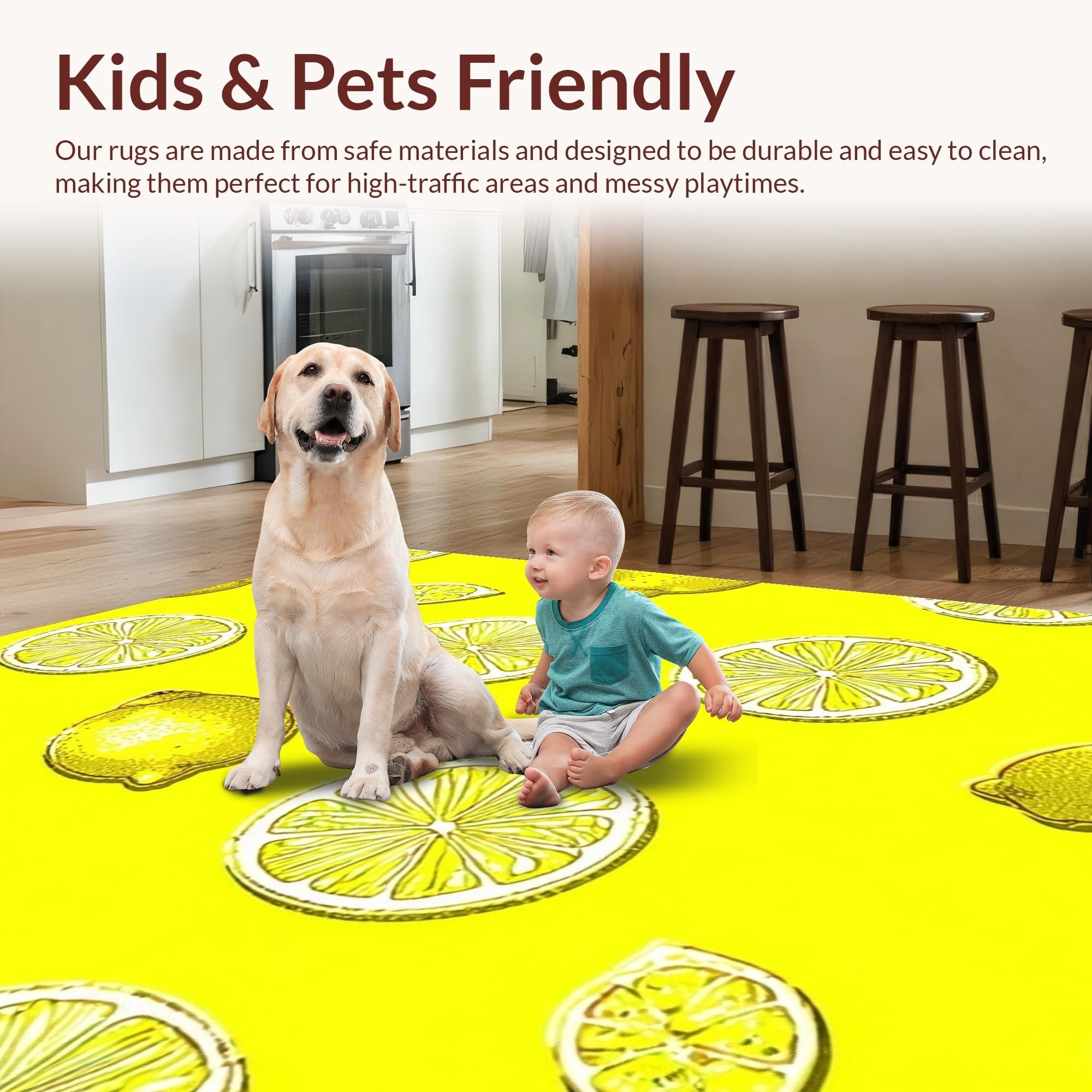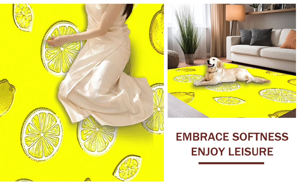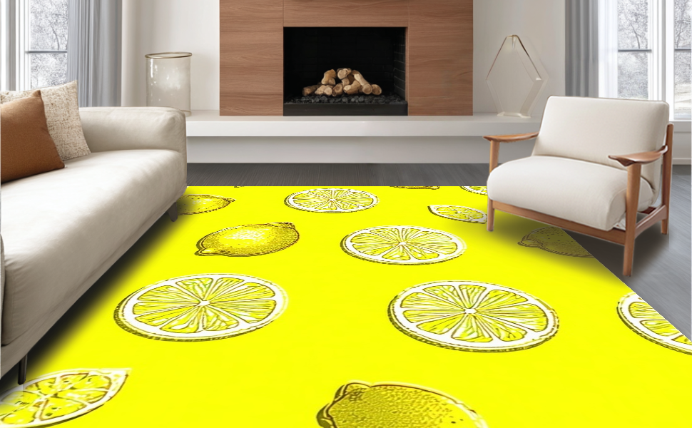 Ultra Soft Area Rug, Non Slip, Stain Resistant, Washable Area Rugs for Living Room, Bedroom, Charming Citrus Slice Aesthetic(Yellow) Overview:
