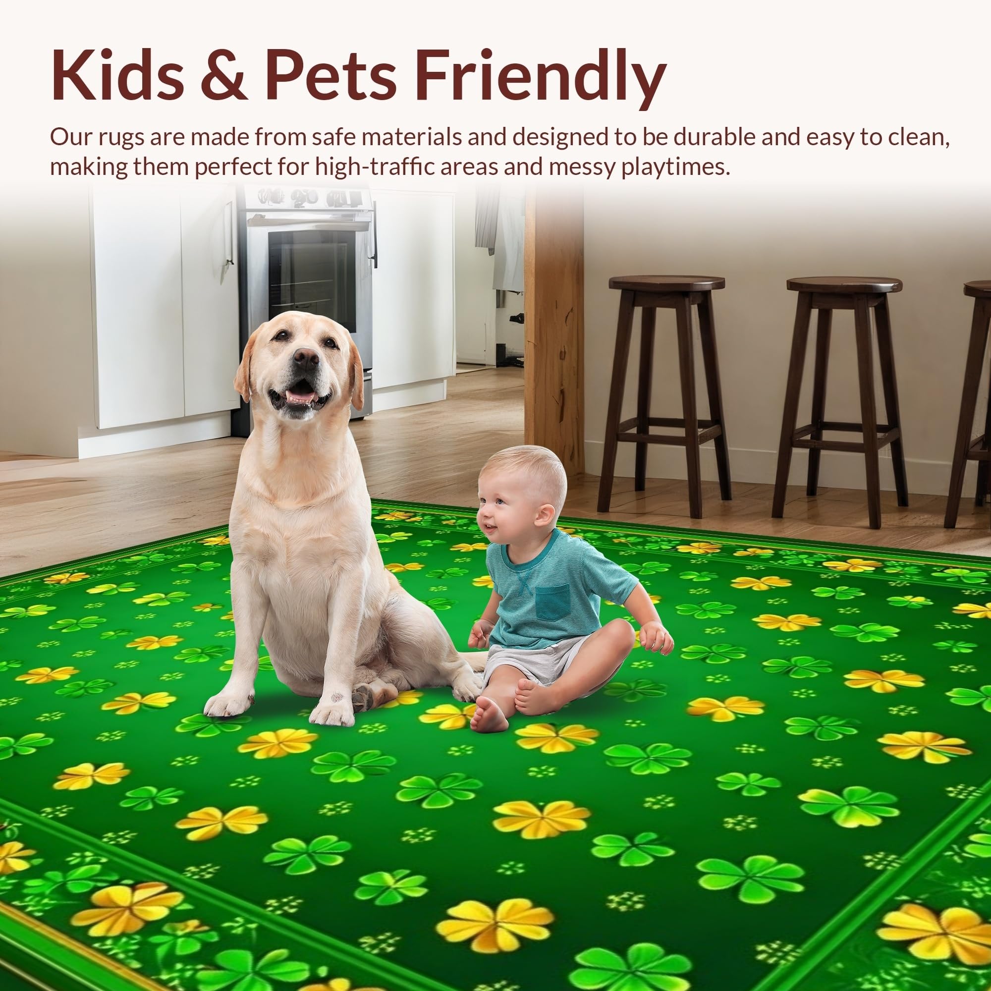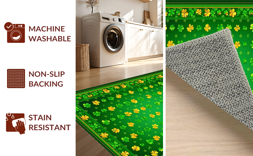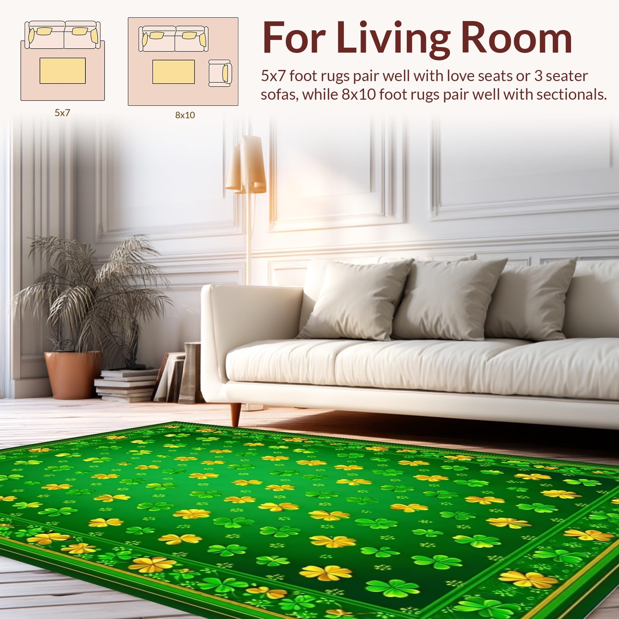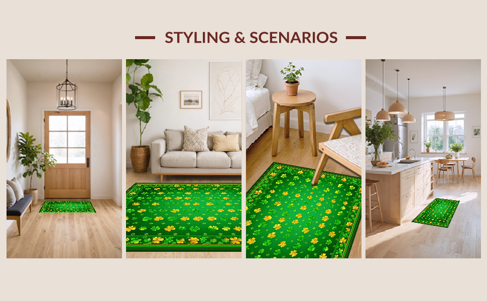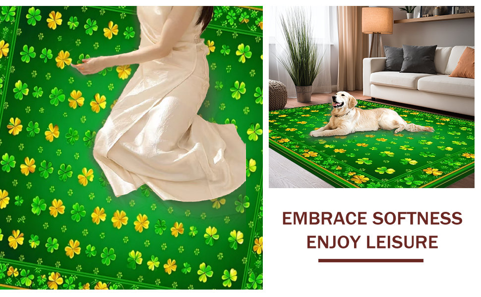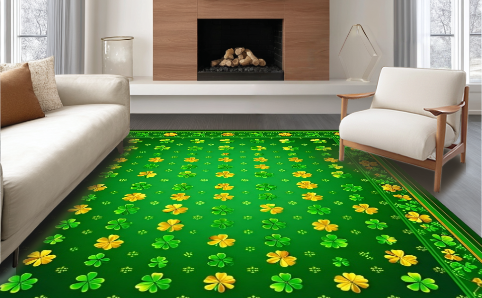 Ultra Soft Area Rug, Non Slip, Stain Resistant, Washable Area Rugs for Living Room, Bedroom, Charming Clover Floral Aesthetic(Green) Overview: