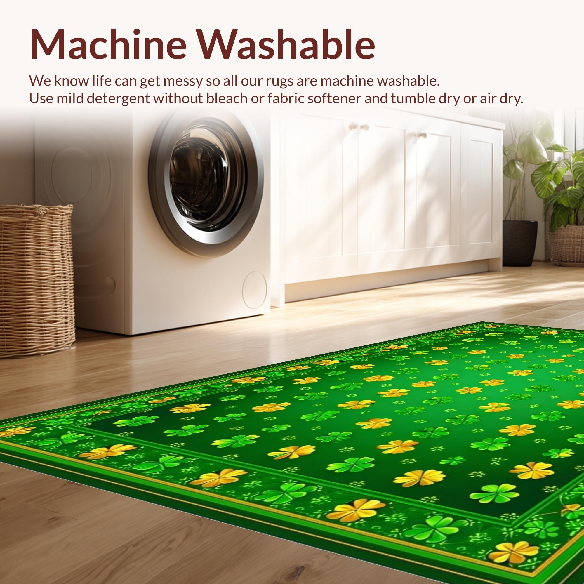 - Machine Washable: Our rugs can be easily thrown in the wash machine.