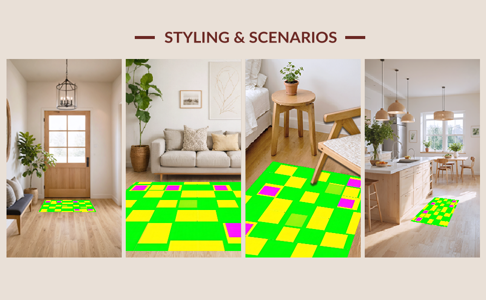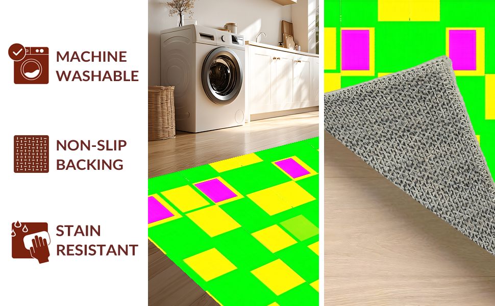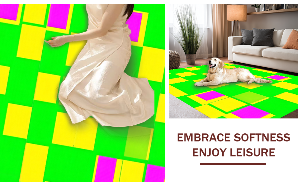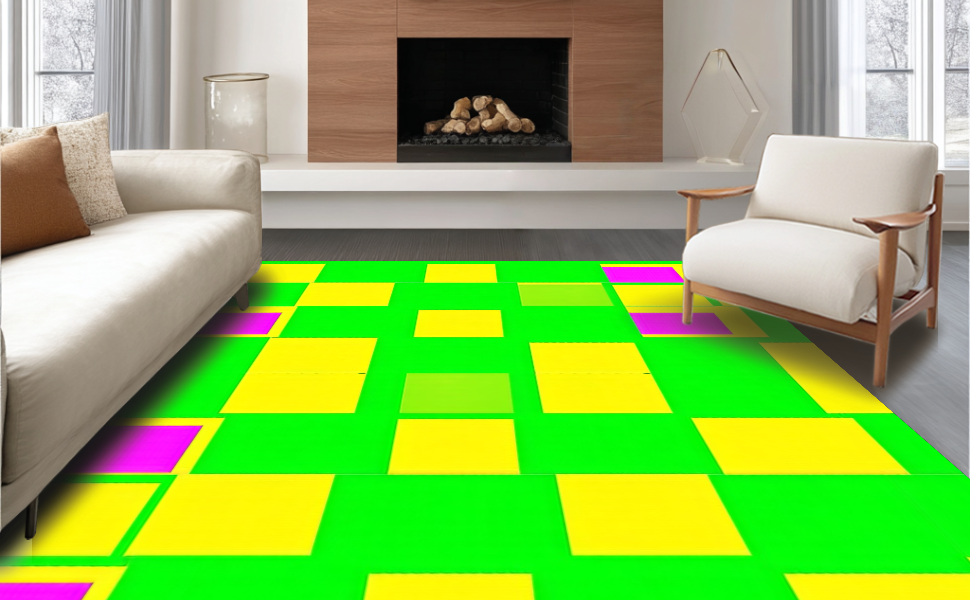 Ultra Soft Area Rug, Non Slip, Stain Resistant, Washable Area Rugs for Living Room, Bedroom, Charming Colorful Checkered Aesthetic(Green) Overview: