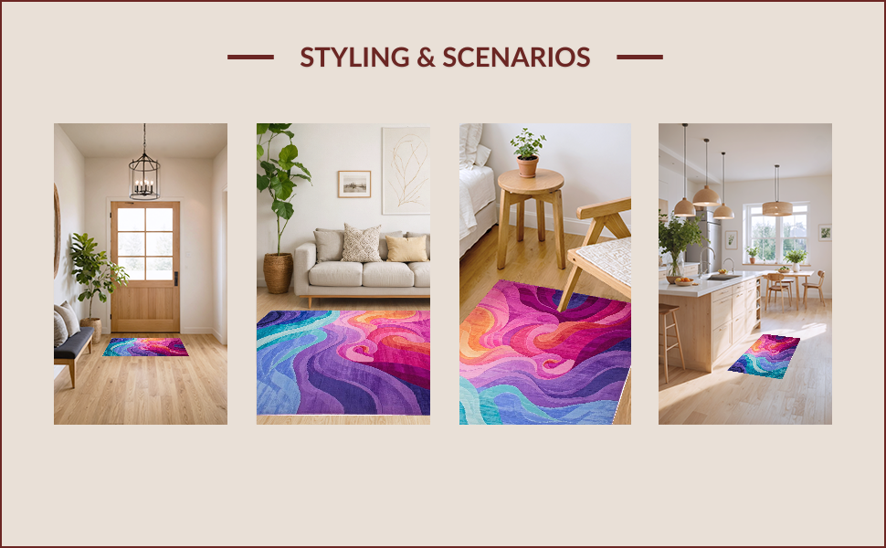 Ultra Soft Area Rug, Non Slip, Stain Resistant, Washable Area Rugs for Living Room, Bedroom, Charming Colorful Shag Texture(Purple) Overview: