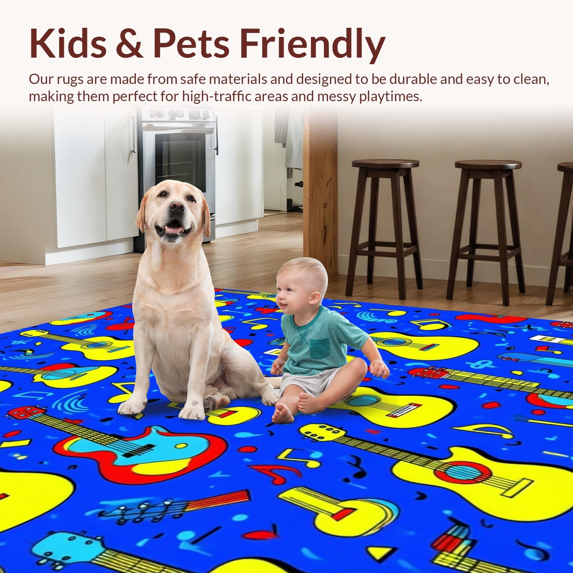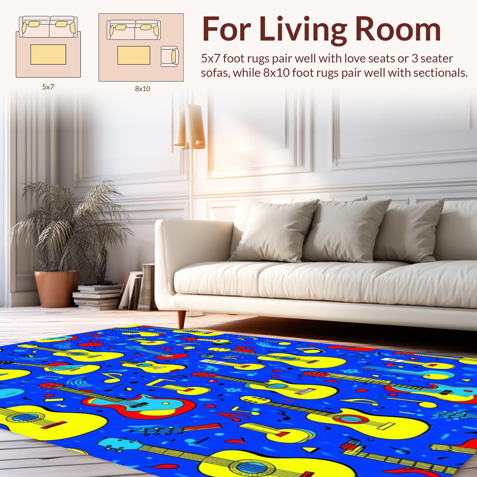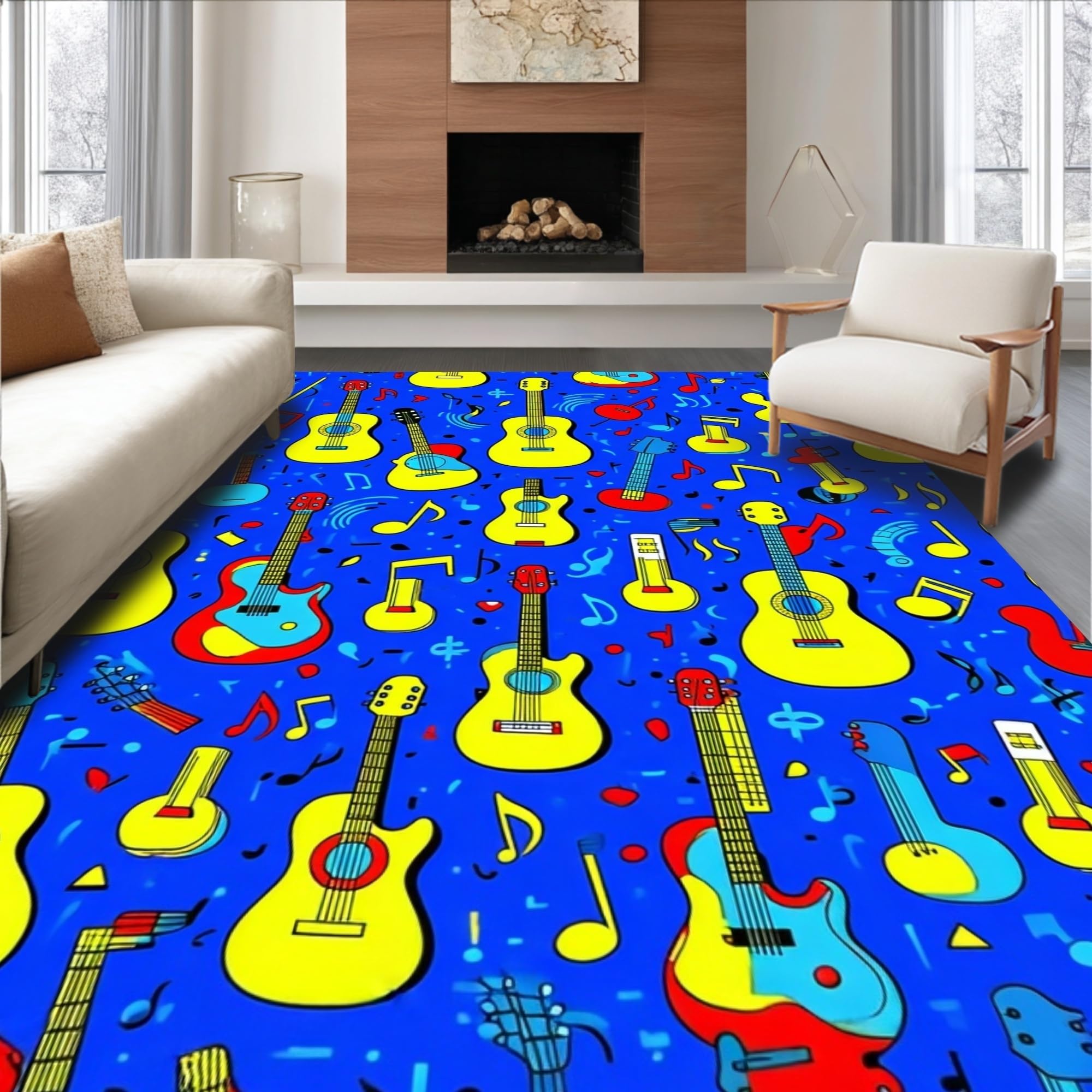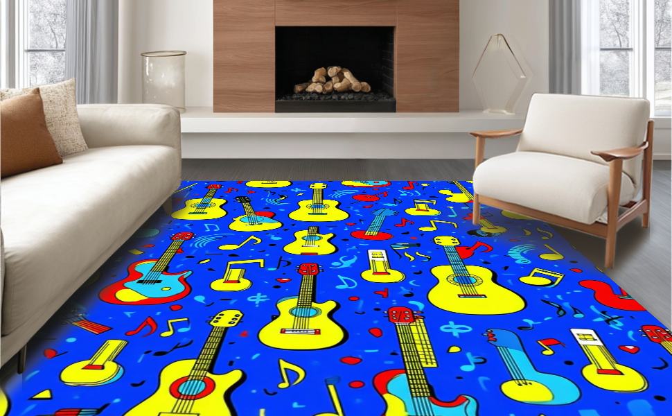 Ultra Soft Area Rug, Non Slip, Stain Resistant, Washable Area Rugs for Living Room, Bedroom, Charming Colorful Soundwave Theme(Blue) Overview: