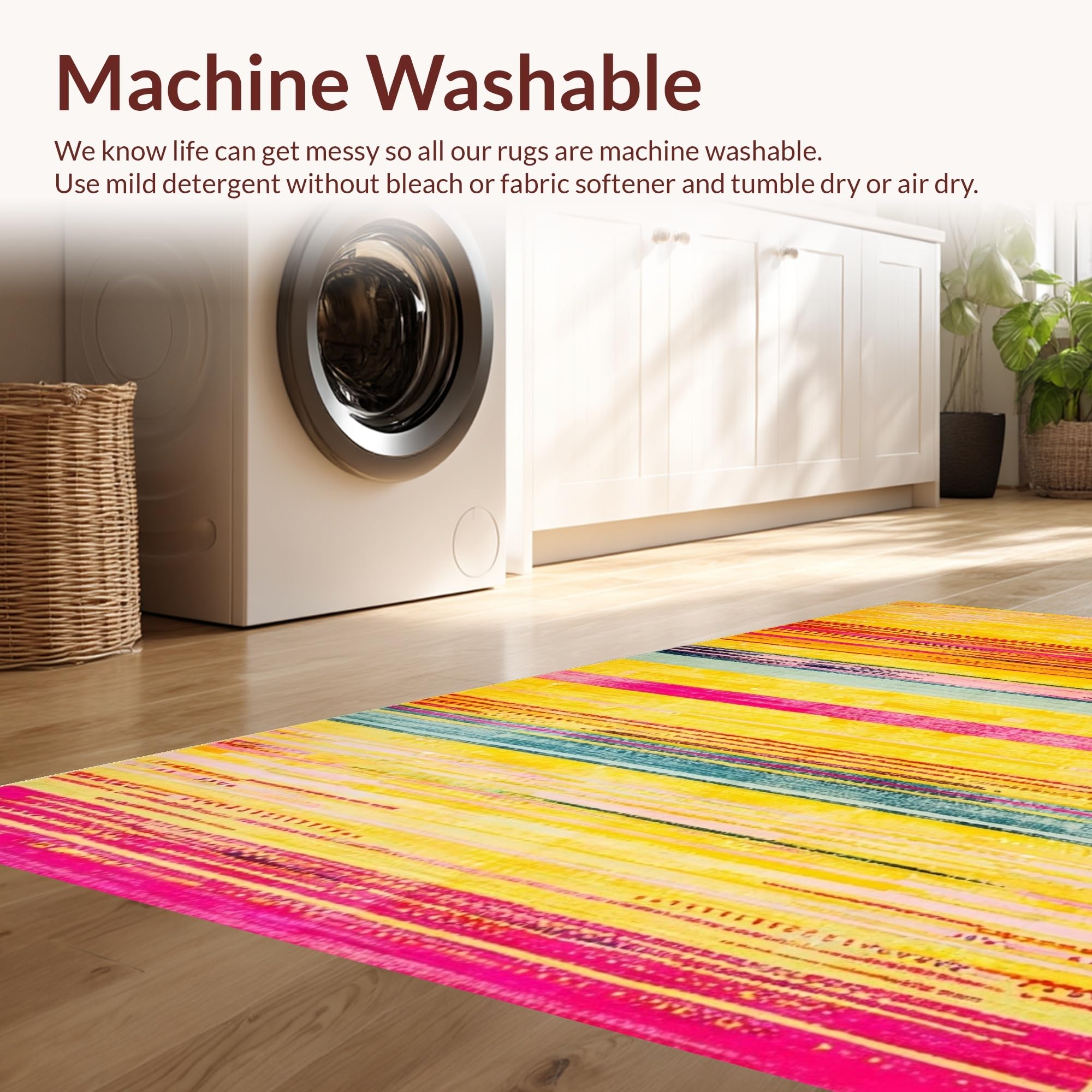 - Machine Washable: Our rugs can be easily thrown in the wash machine.