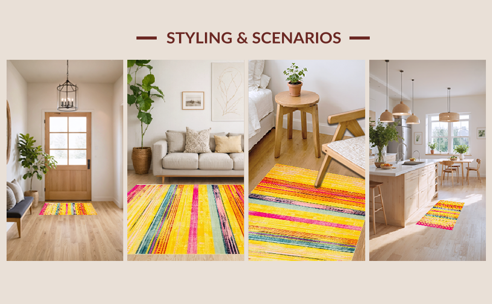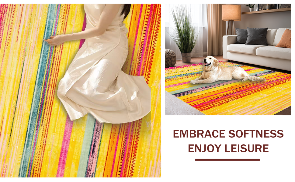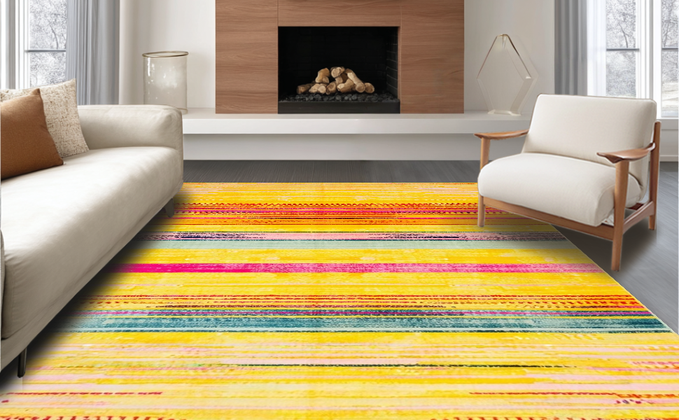 Ultra Soft Area Rug, Non Slip, Stain Resistant, Washable Area Rugs for Living Room, Bedroom, Charming Colorful Sunbeam Theme(Yellow) Overview:
