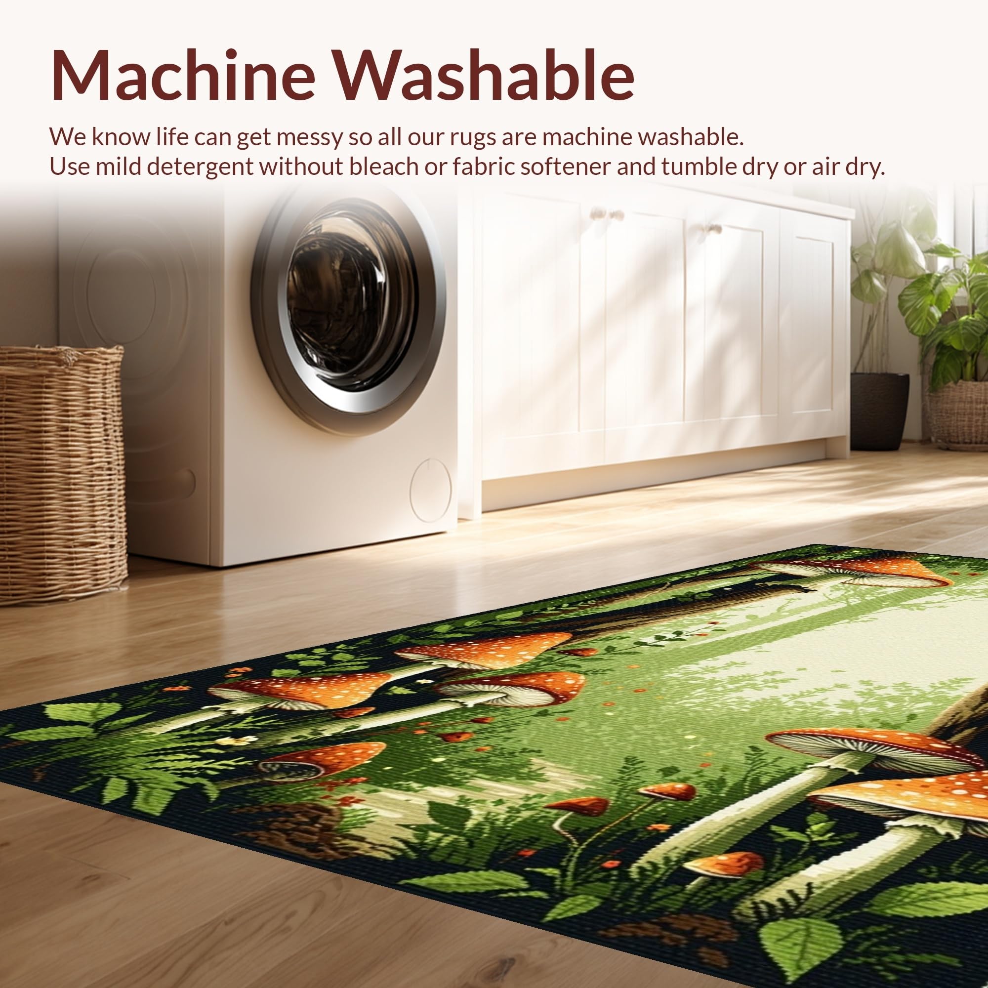 - Machine Washable: Our rugs can be easily thrown in the wash machine.