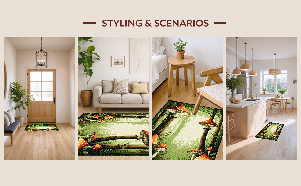 Ultra Soft Area Rug, Non Slip, Stain Resistant, Washable Area Rugs for Living Room, Bedroom, Charming Cottage-Style Kitchen Accent(Green) Overview: