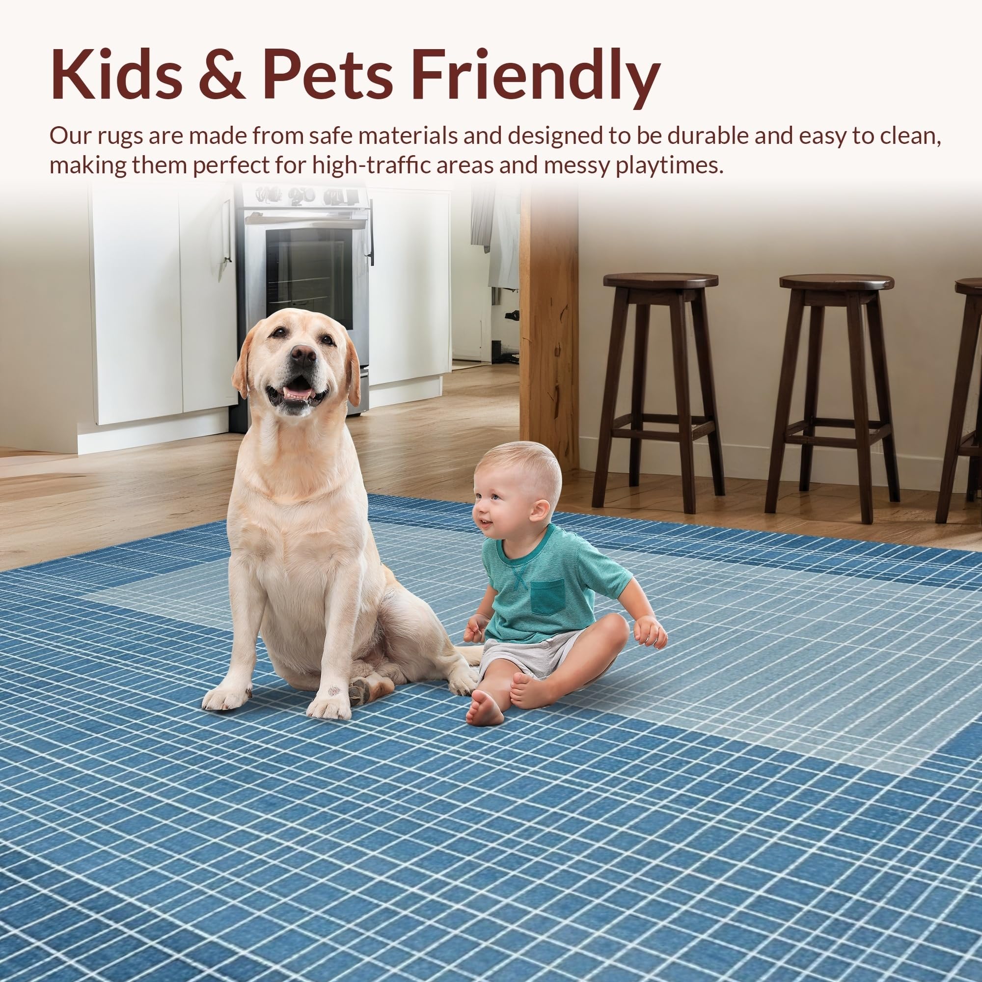 Ultra Soft Area Rug, Non Slip, Stain Resistant, Washable Area Rugs for Living Room, Bedroom, Charming Cozy Round Arrangement(Blue) Overview: