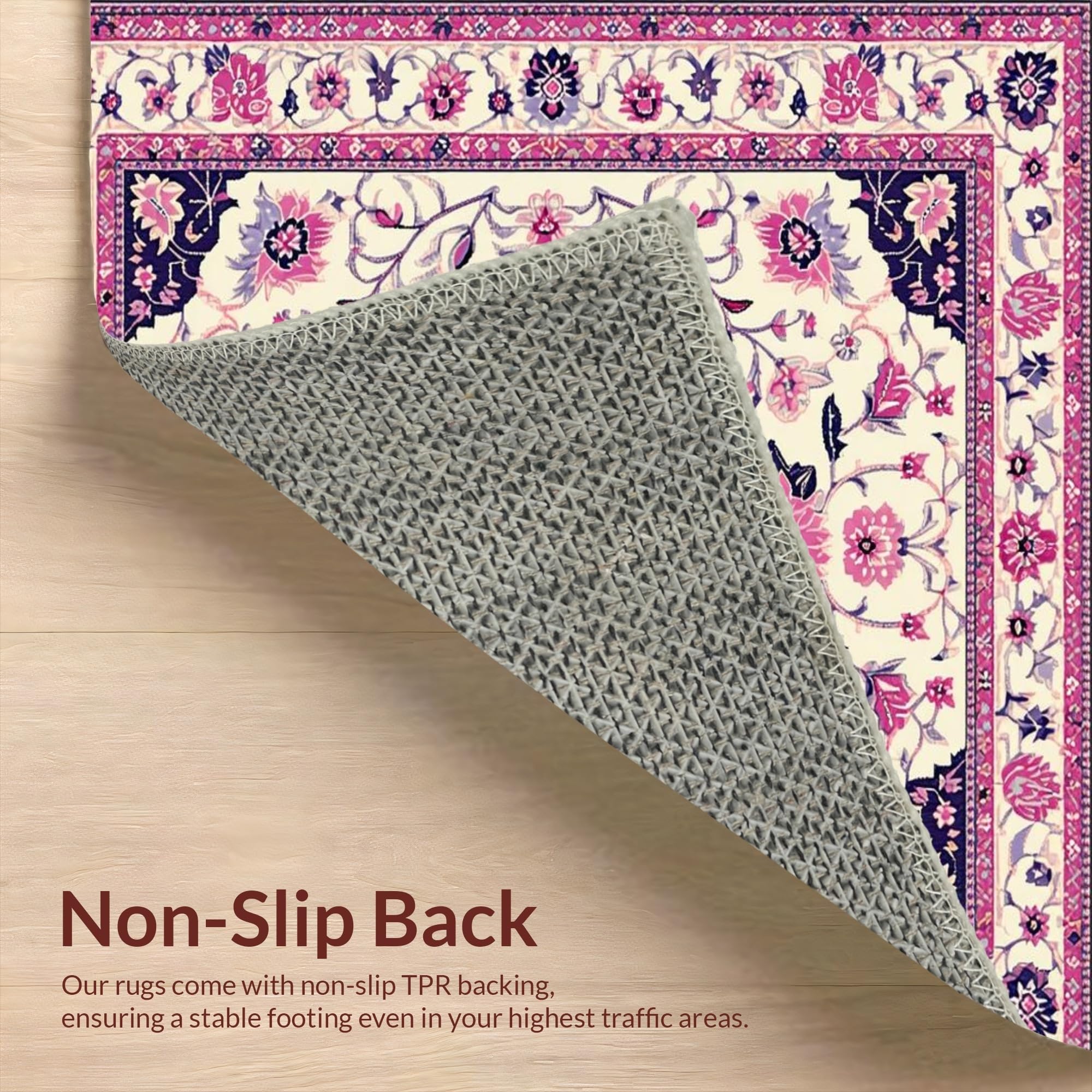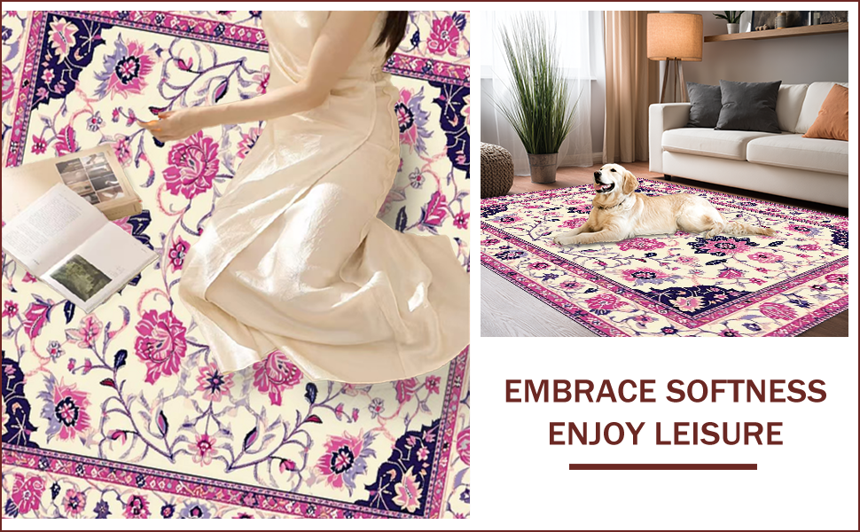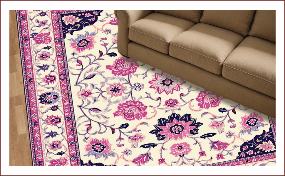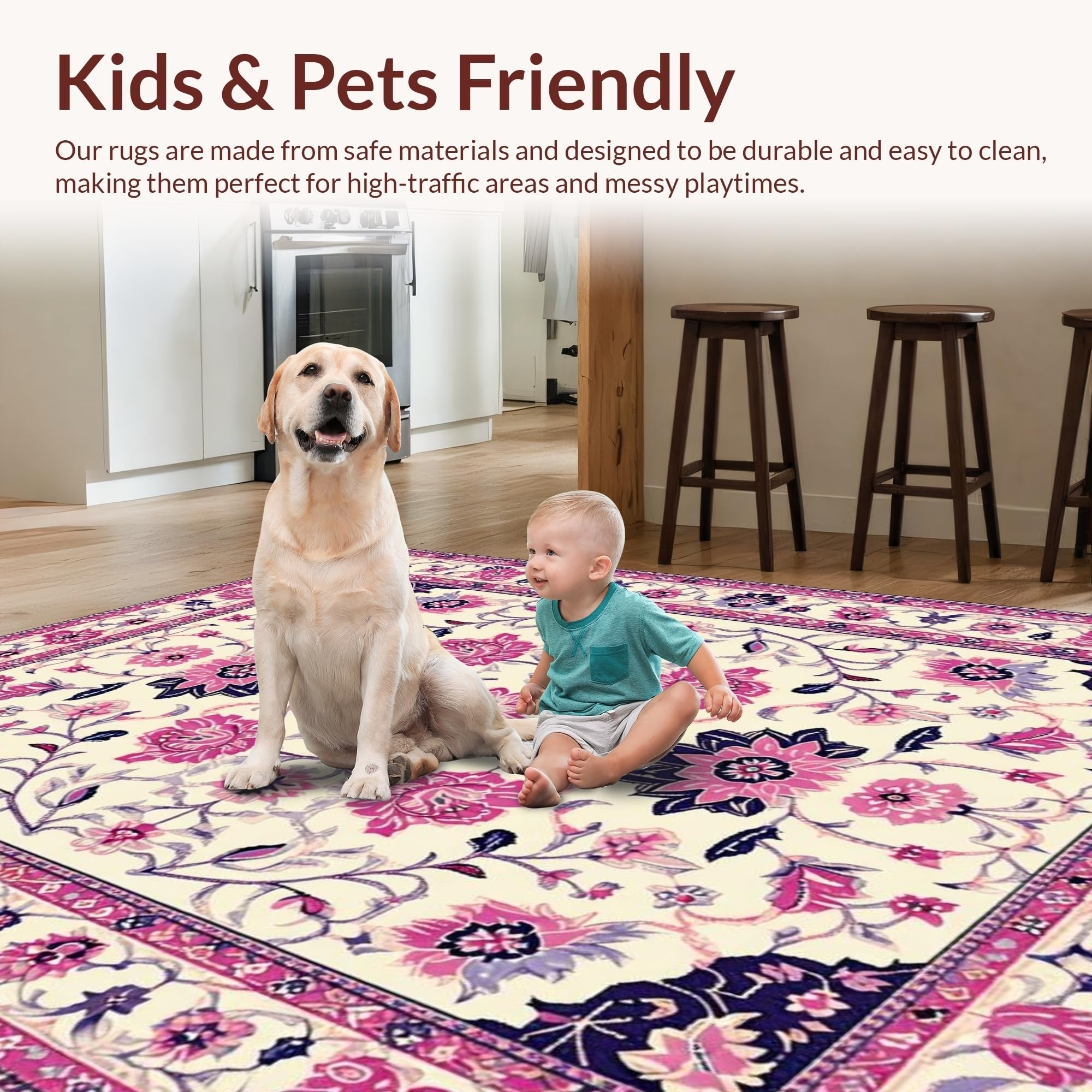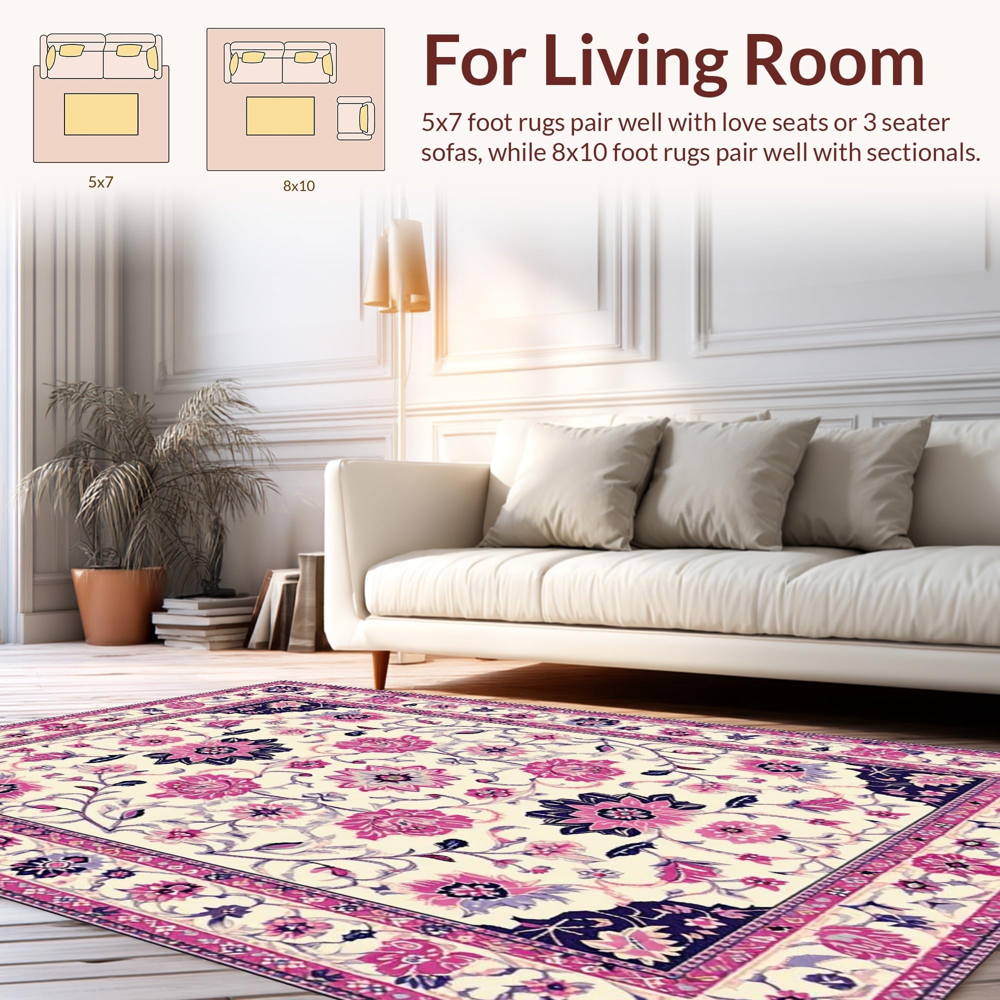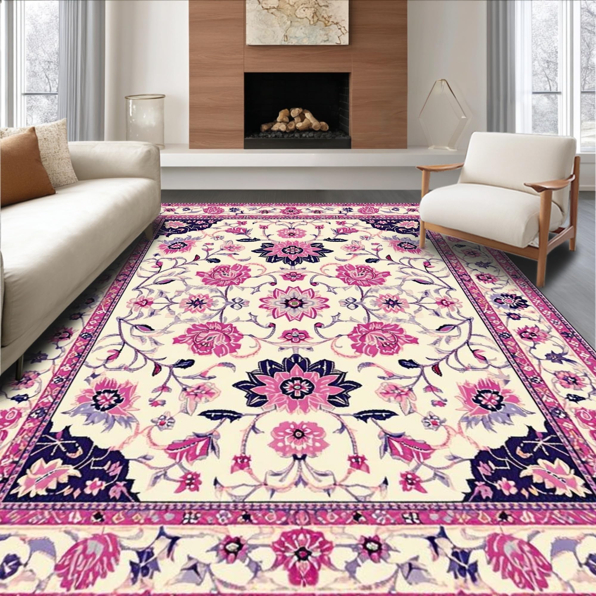 Ultra Soft Area Rug, Non Slip, Stain Resistant, Washable Area Rugs for Living Room, Bedroom, Charming Creamy Floral Whimsy(Ivory) Overview: