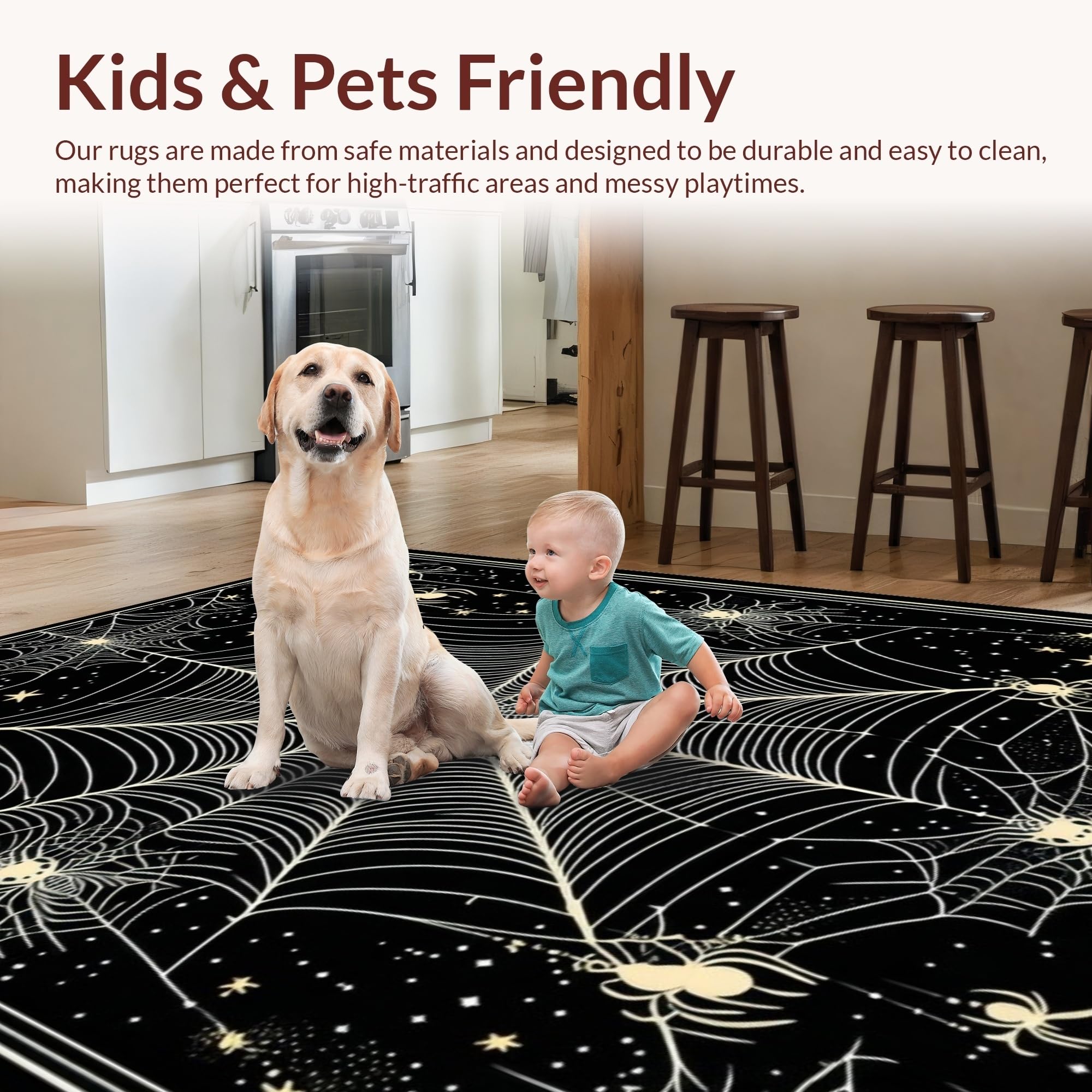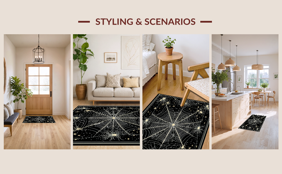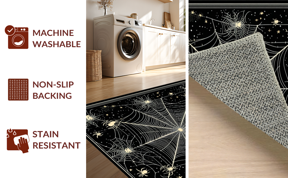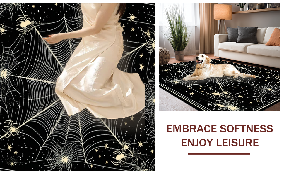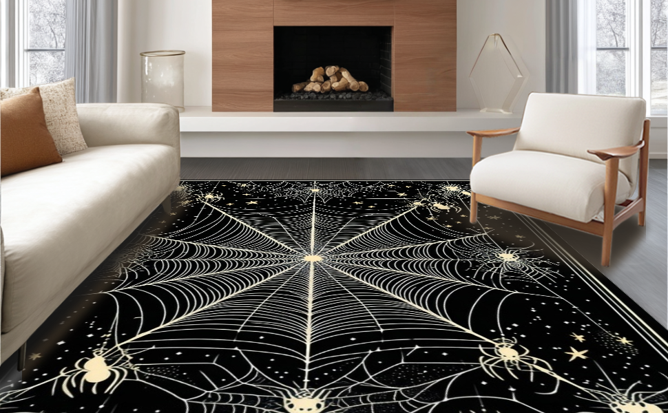 Ultra Soft Area Rug, Non Slip, Stain Resistant, Washable Area Rugs for Living Room, Bedroom, Charming Dark-Hued Creepy Design(Black) Overview: