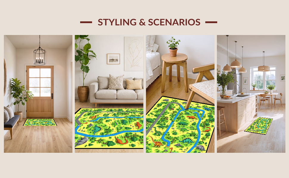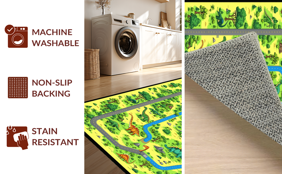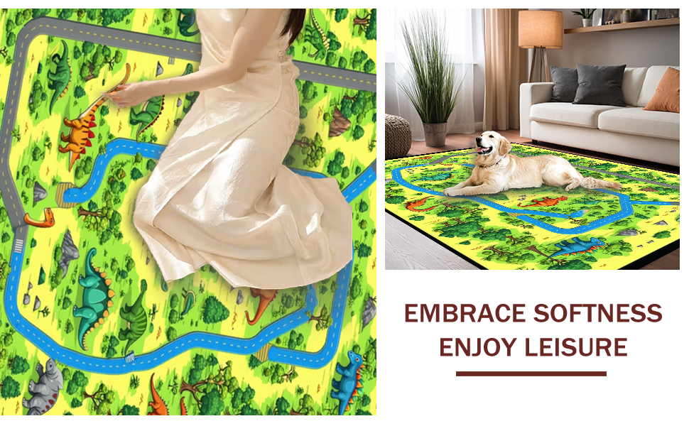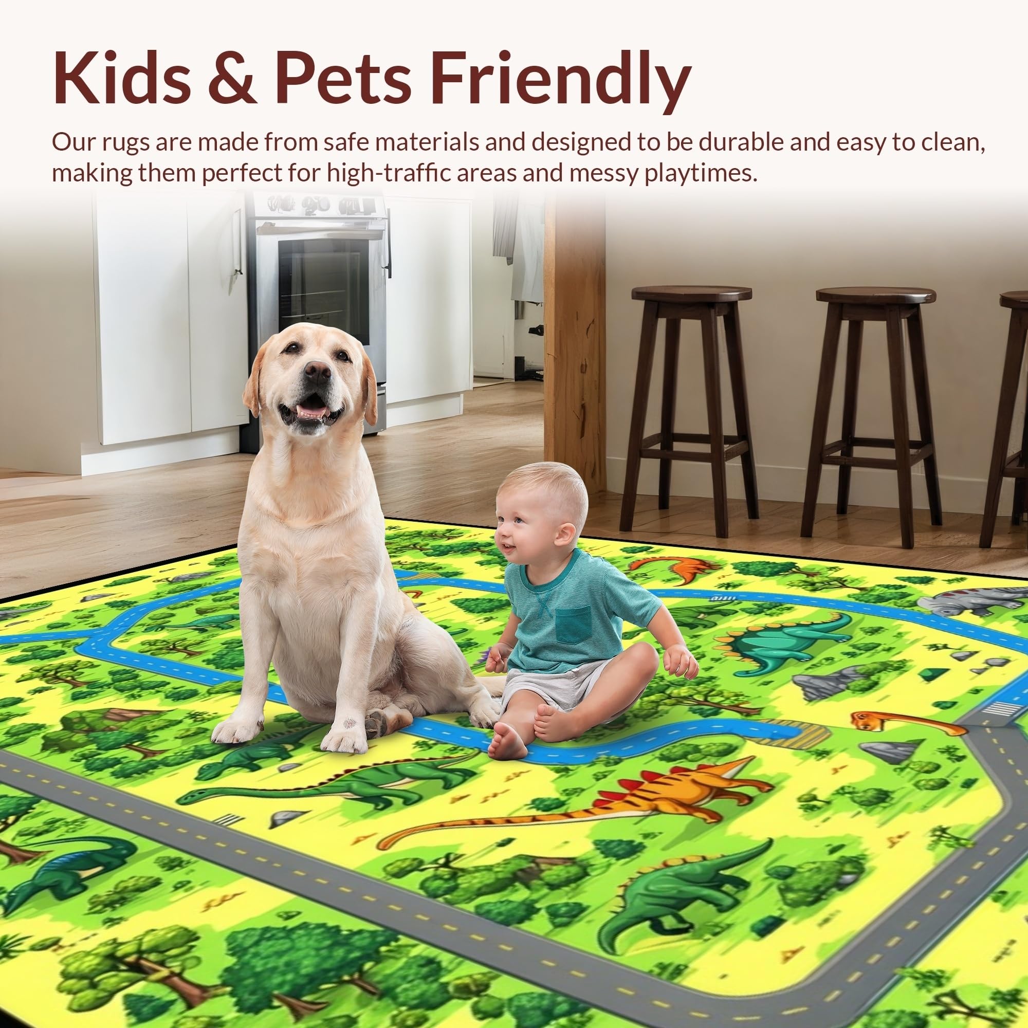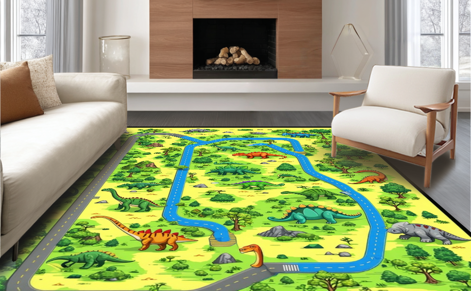 Ultra Soft Area Rug, Non Slip, Stain Resistant, Washable Area Rugs for Living Room, Bedroom, Charming Dino-Themed Learning Environment(Green) Overview: