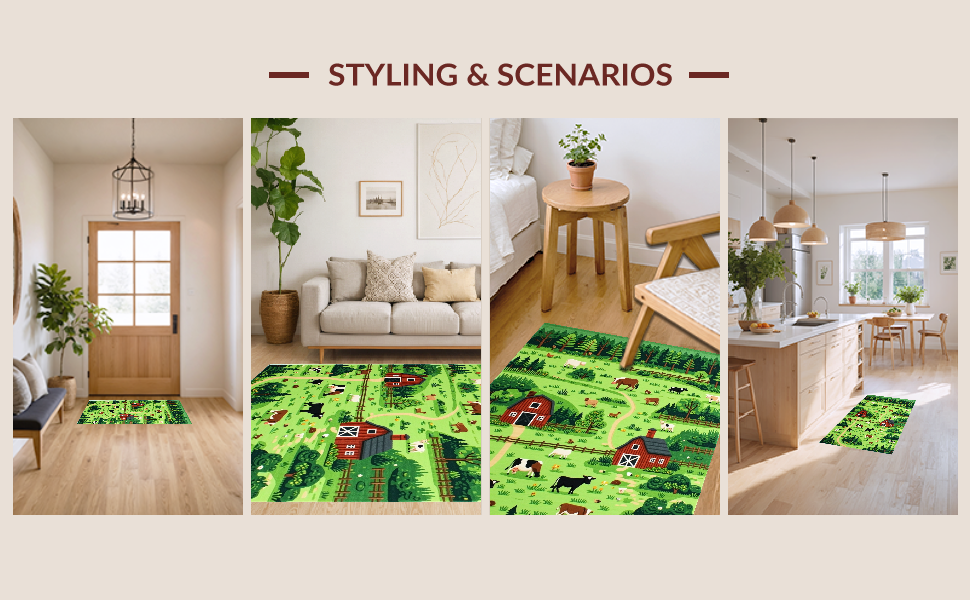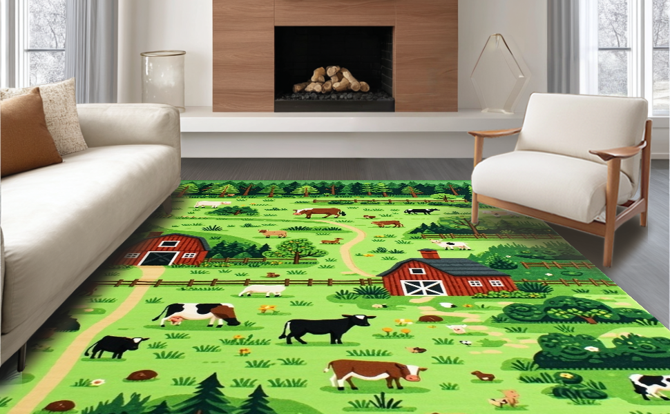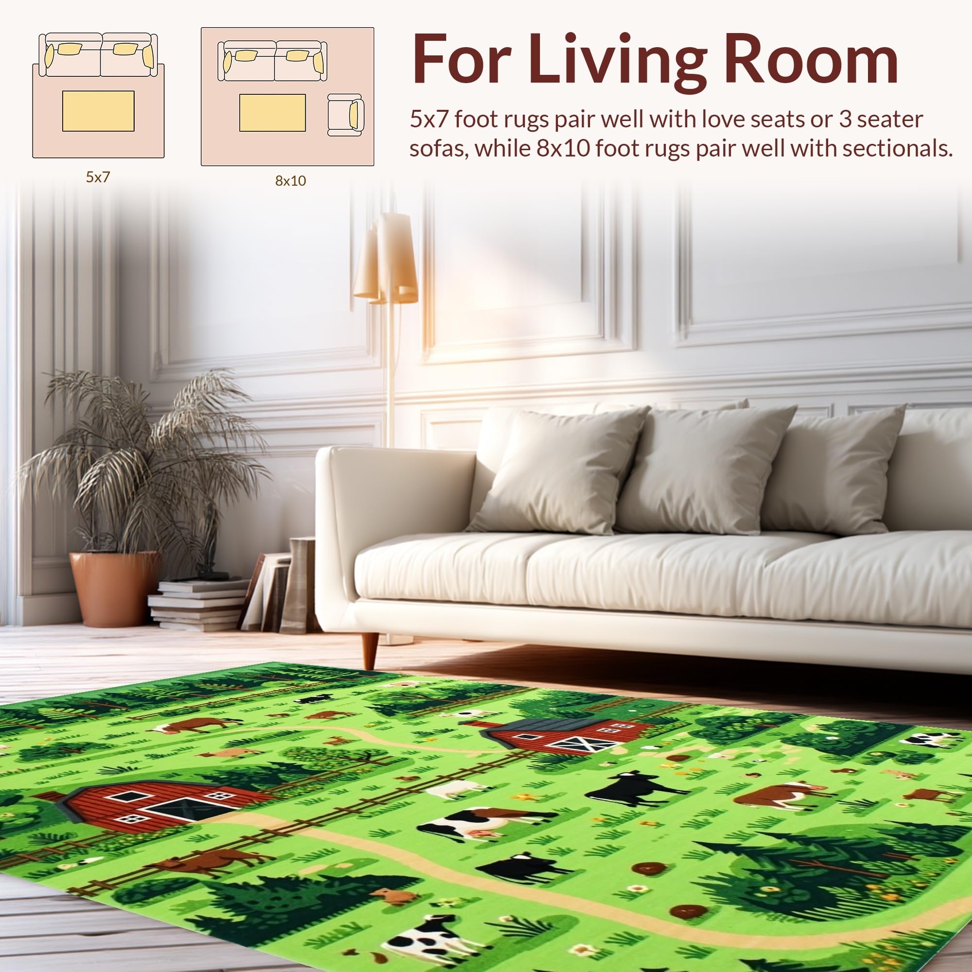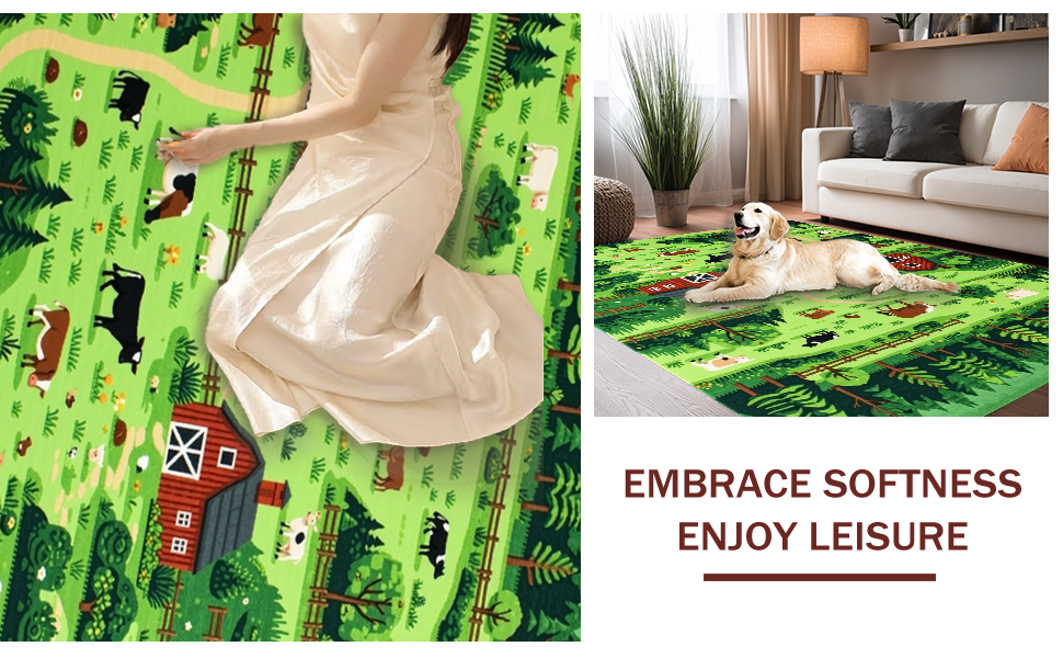 Ultra Soft Area Rug, Non Slip, Stain Resistant, Washable Area Rugs for Living Room, Bedroom, Charming Earthy Rustic Aesthetic(Green) Overview: