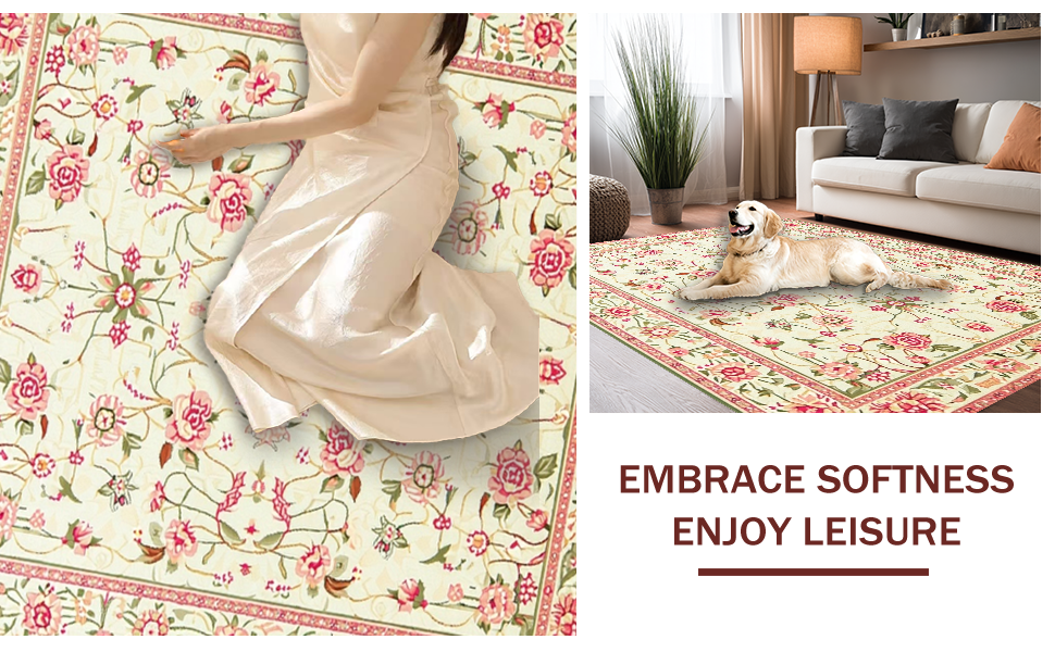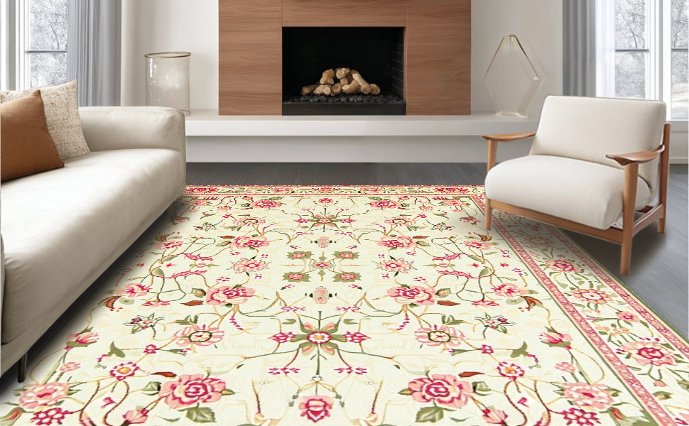 Ultra Soft Area Rug, Non Slip, Stain Resistant, Washable Area Rugs for Living Room, Bedroom, Charming Eclectic Floral Composition(Ivory) Overview: