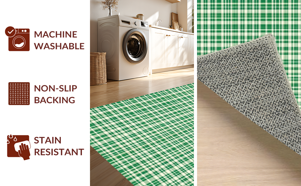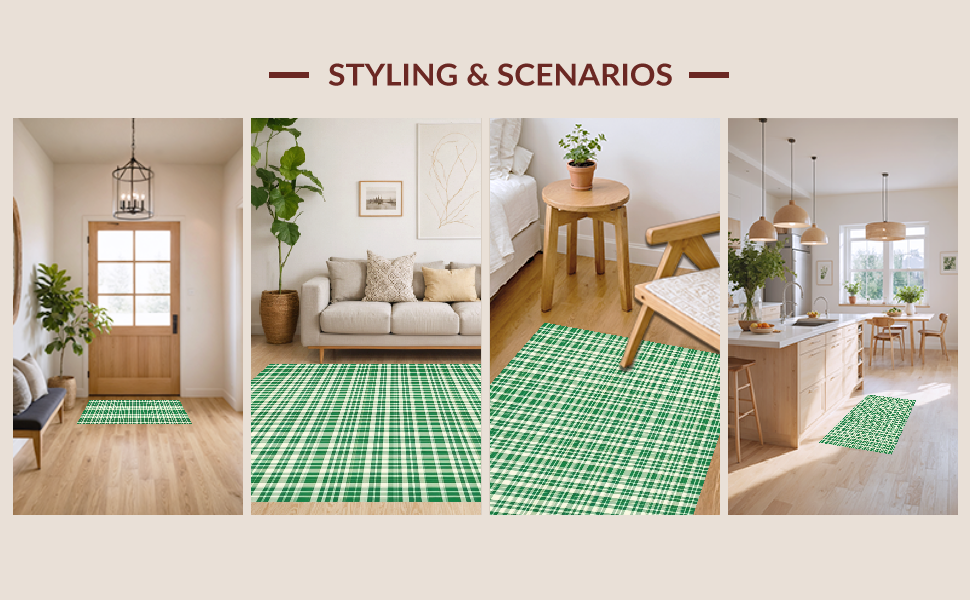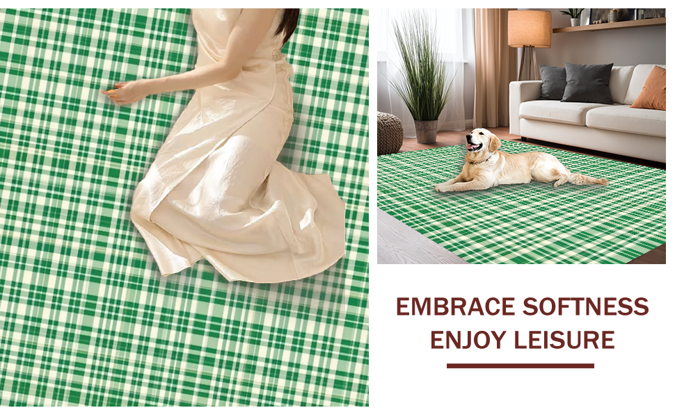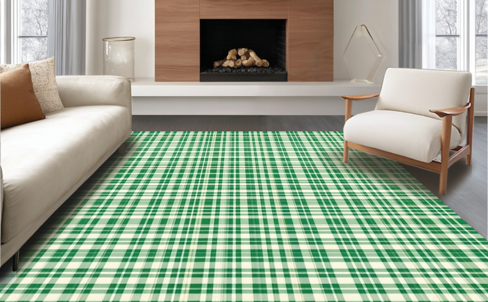 Ultra Soft Area Rug, Non Slip, Stain Resistant, Washable Area Rugs for Living Room, Bedroom, Charming Farmhouse Tartan Aesthetic(Green) Overview: