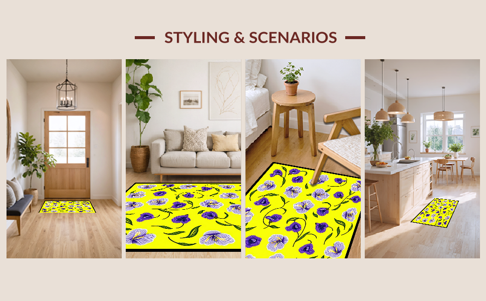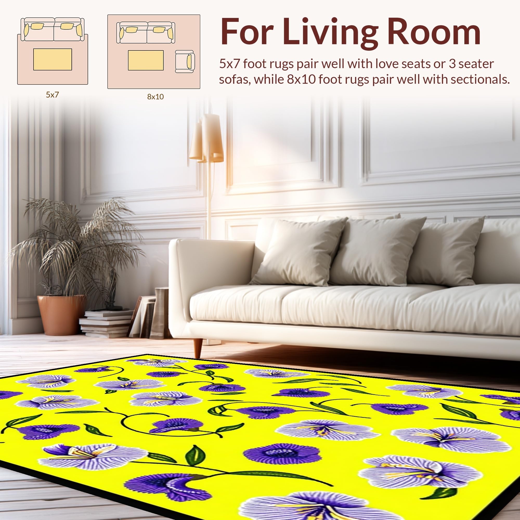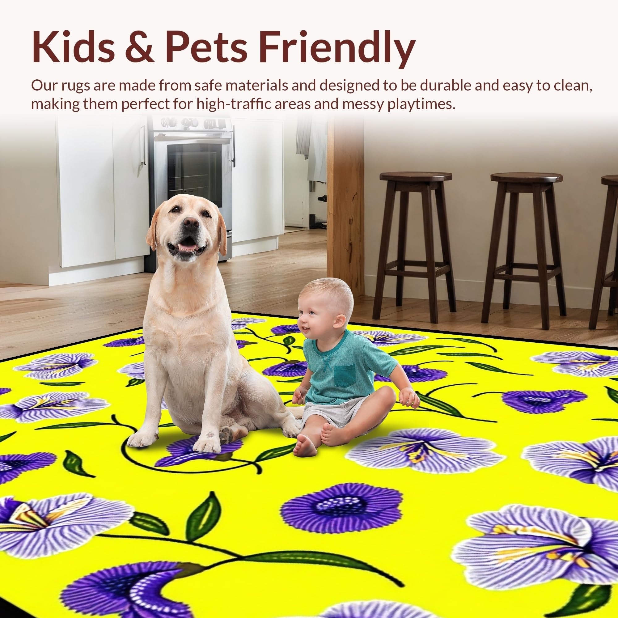 Ultra Soft Area Rug, Non Slip, Stain Resistant, Washable Area Rugs for Living Room, Bedroom, Charming Floral Accent Piece(Yellow) Overview: