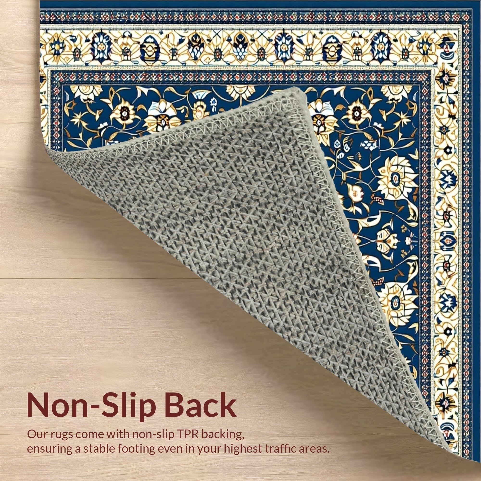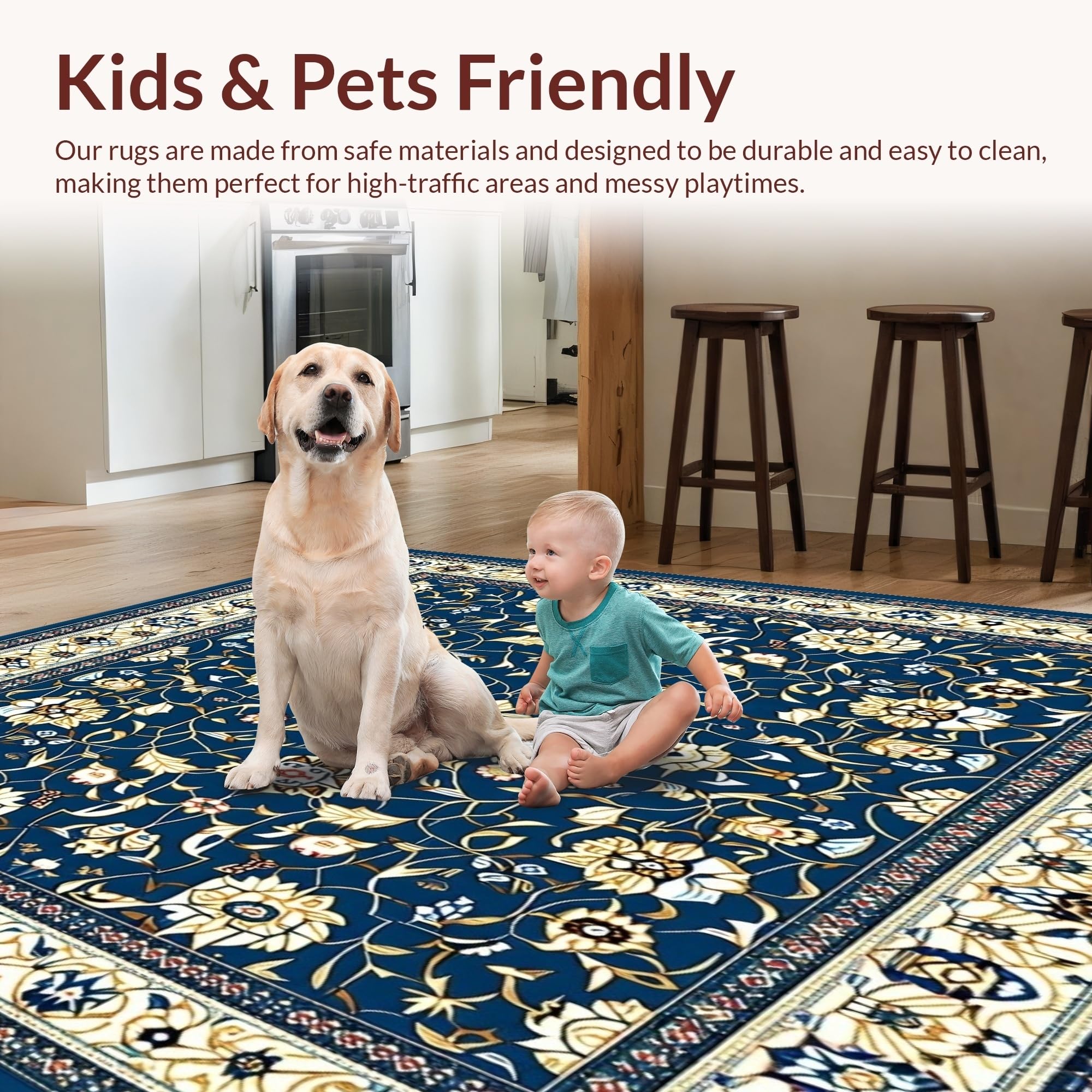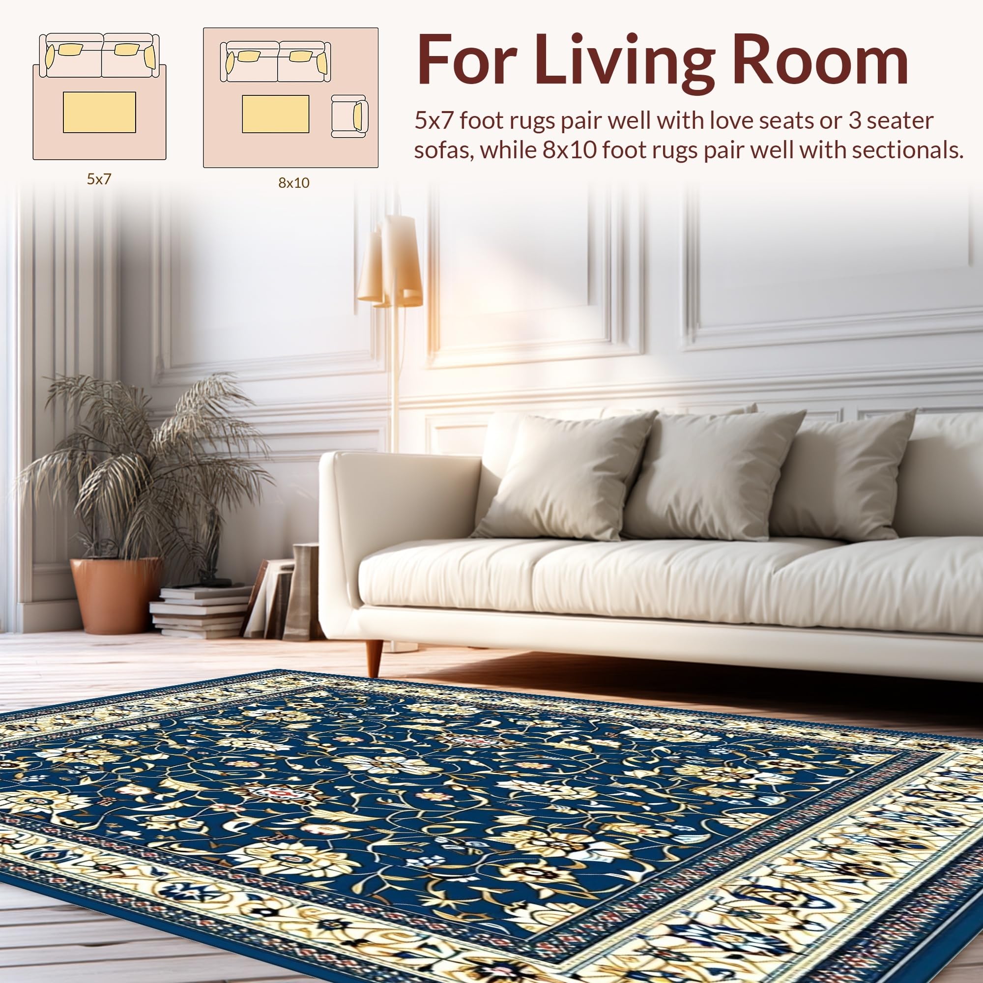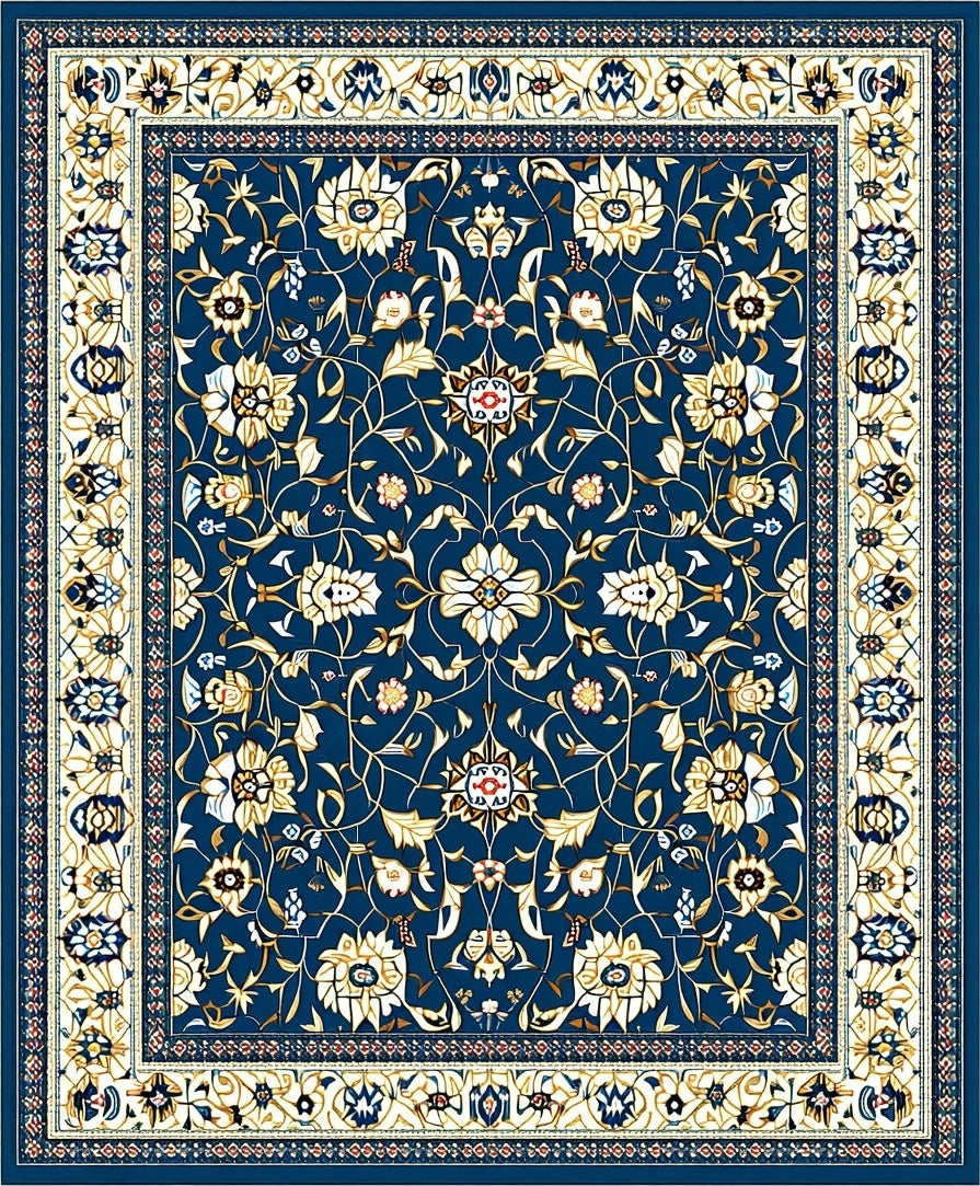 Ultra Soft Area Rug, Non Slip, Stain Resistant, Washable Area Rugs for Living Room, Bedroom, Charming Floral Area with Deep Blue and Beige Motifs(Blue) Overview: