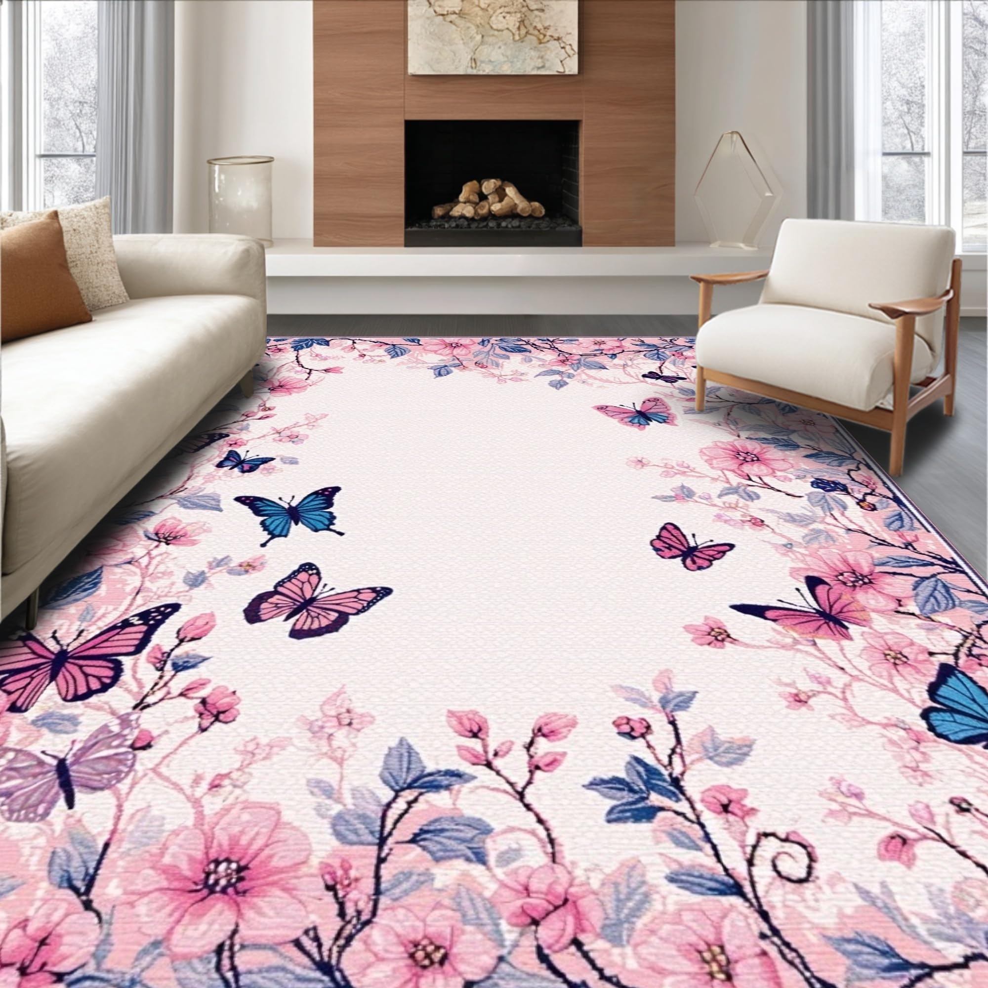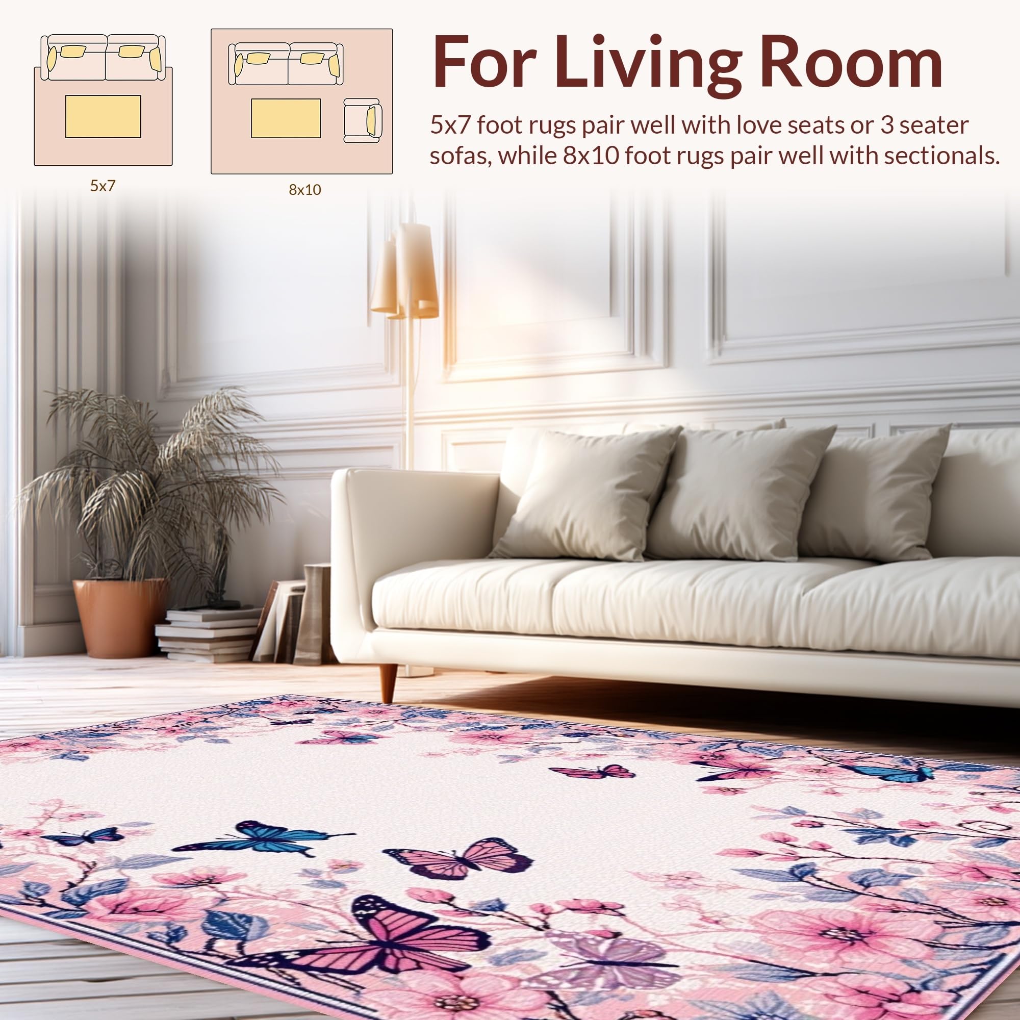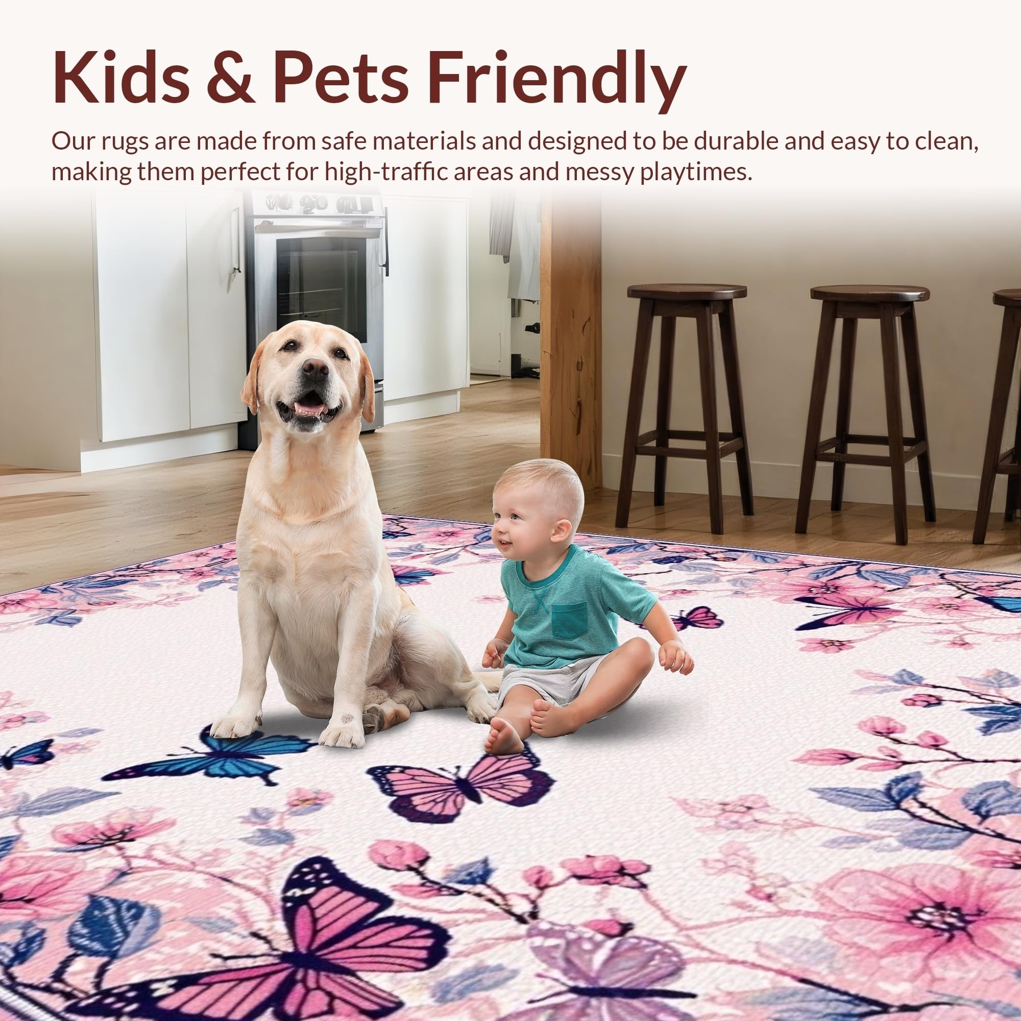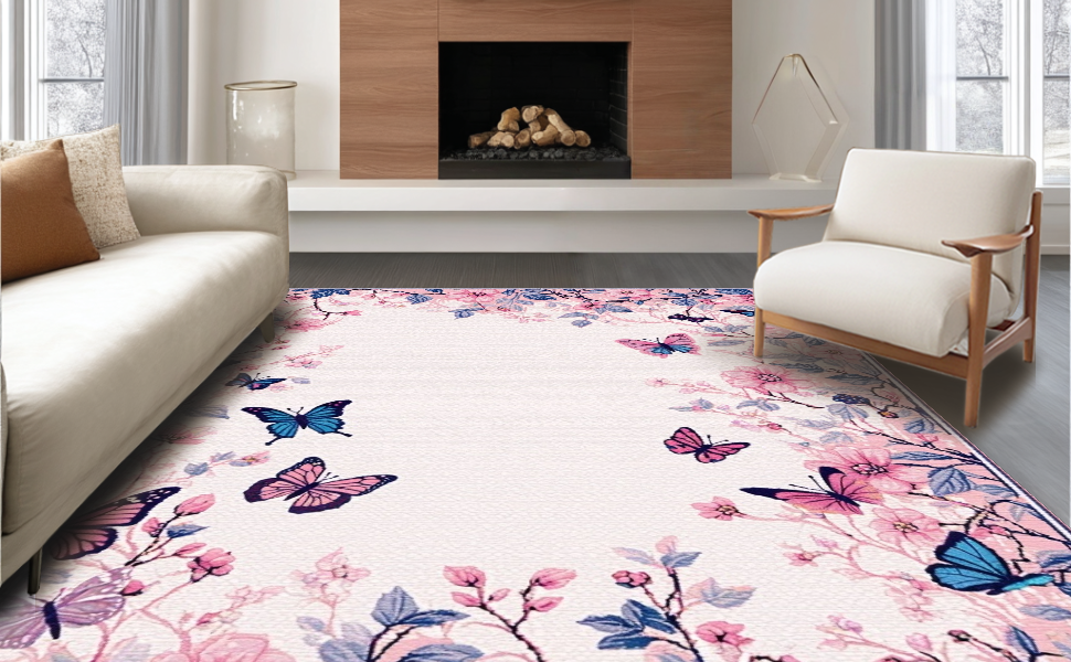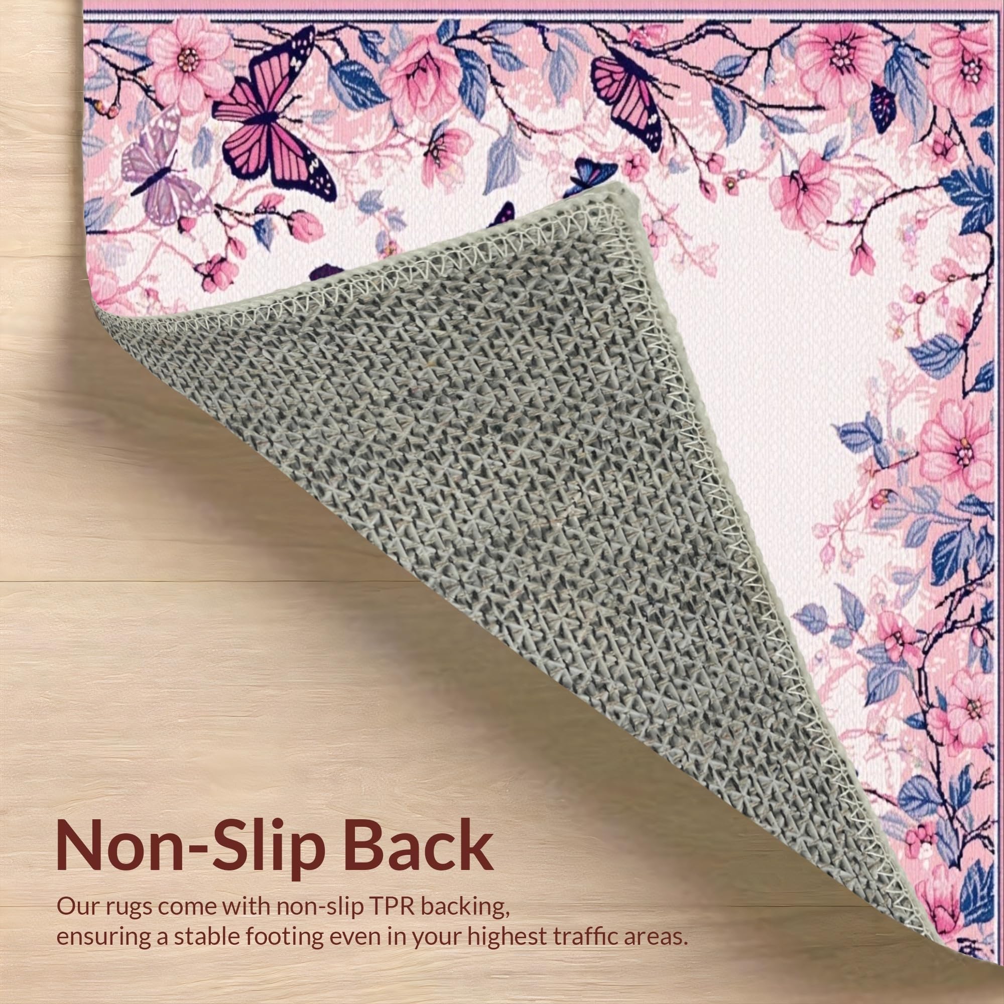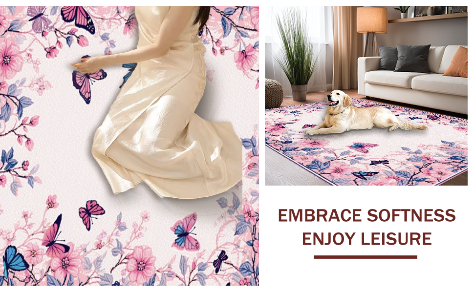 Ultra Soft Area Rug, Non Slip, Stain Resistant, Washable Area Rugs for Living Room, Bedroom, Charming Floral Scalloped Design(Pink) Overview: