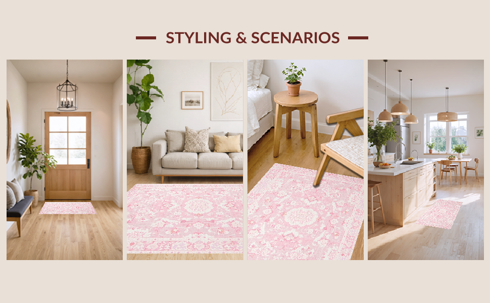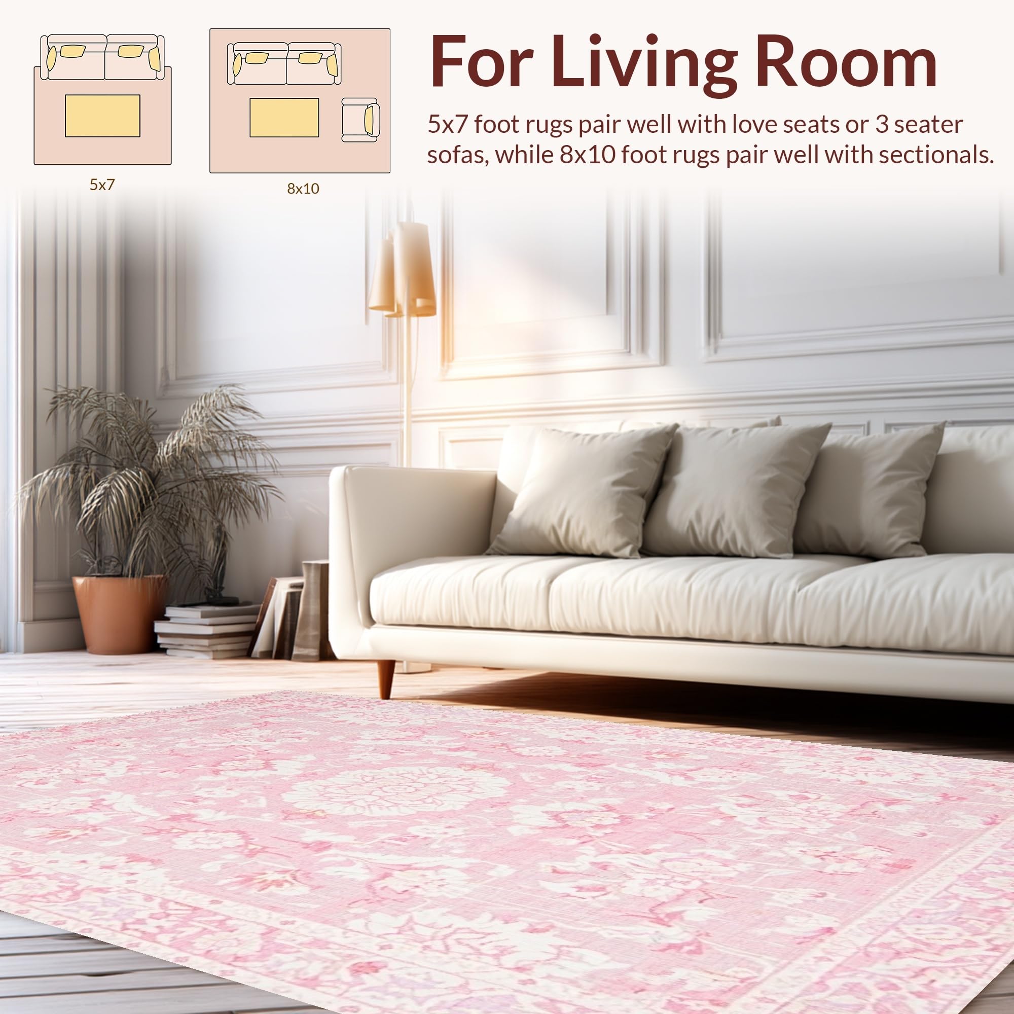 Ultra Soft Area Rug, Non Slip, Stain Resistant, Washable Area Rugs for Living Room, Bedroom, Charming Fluffy Pastel Aesthetic(Pink) Overview: