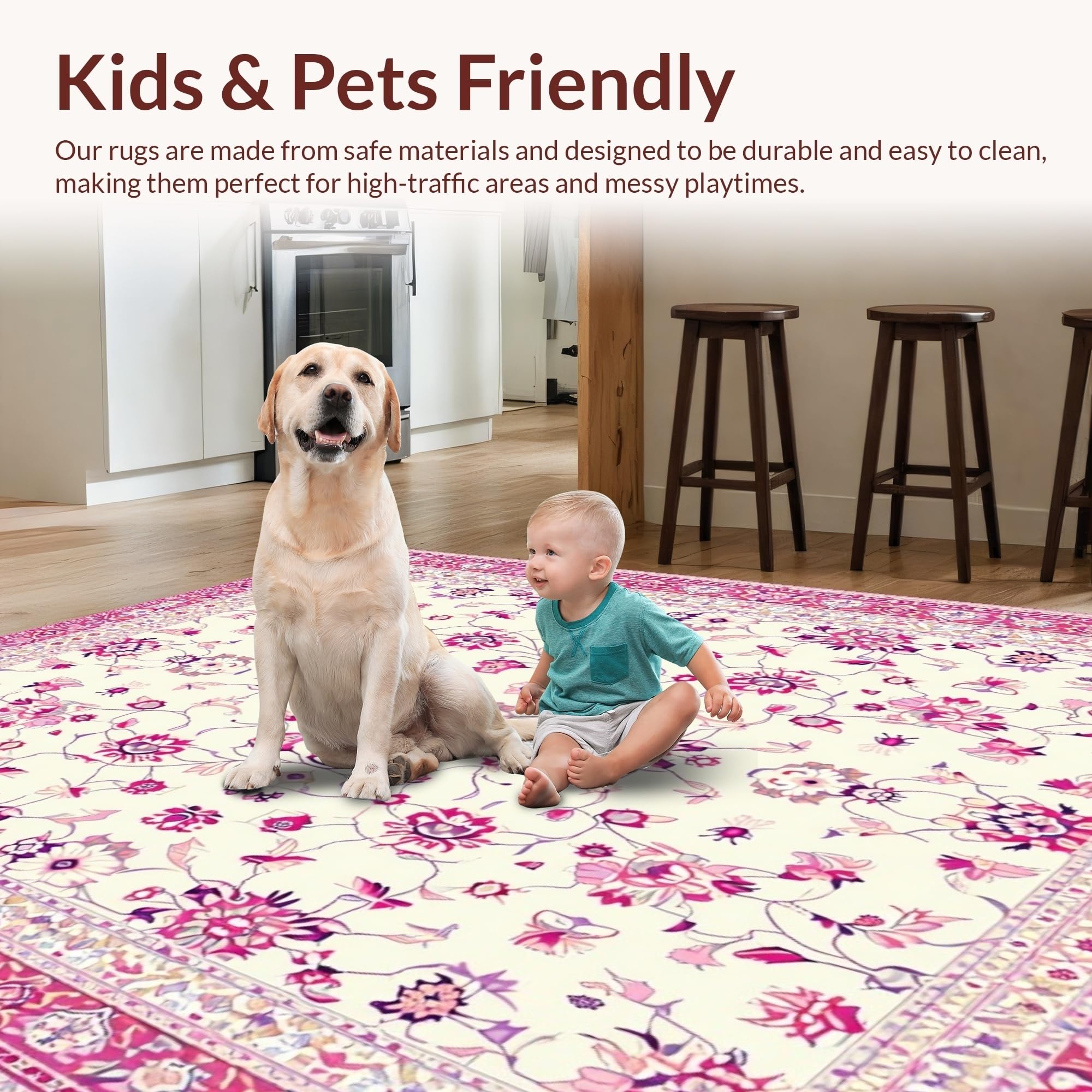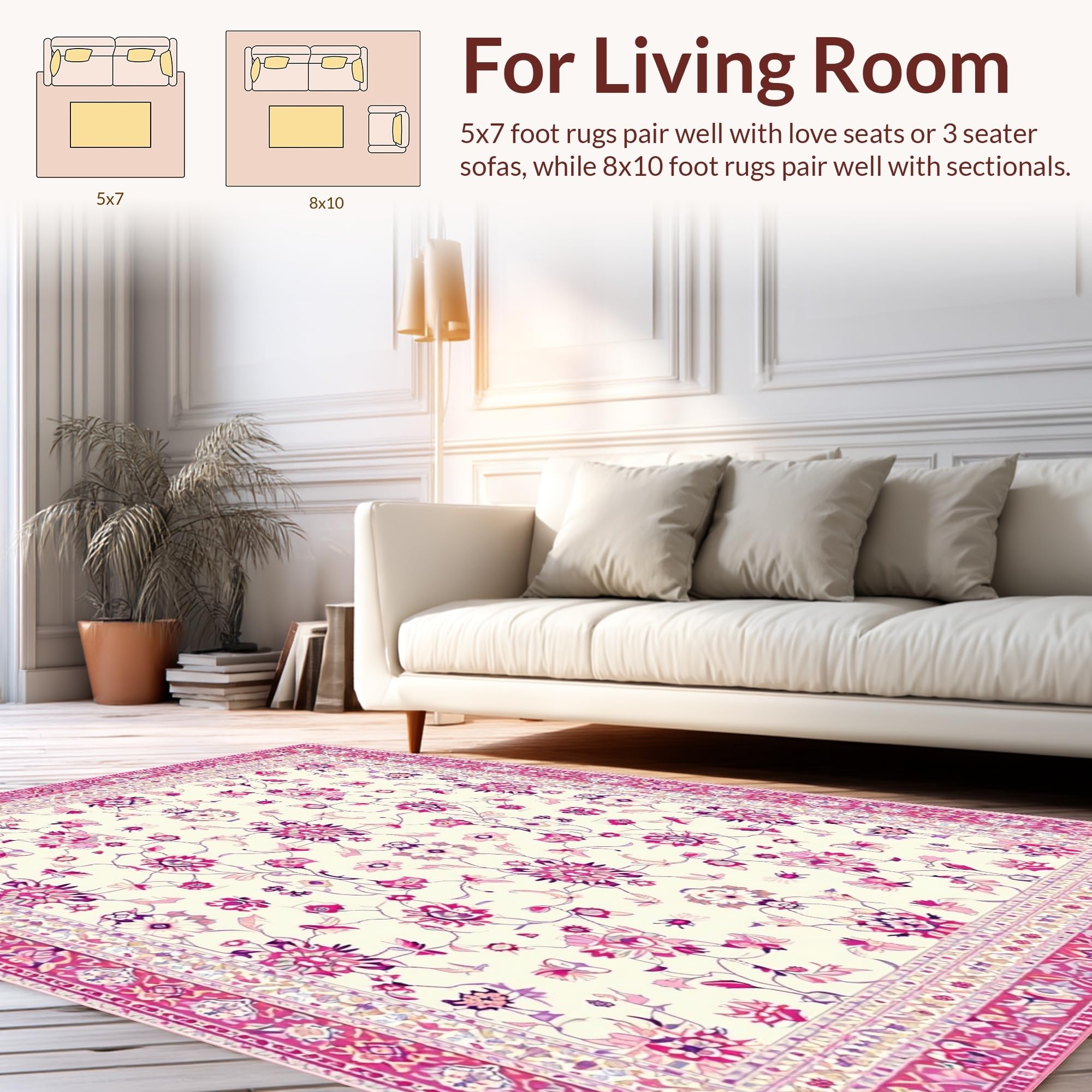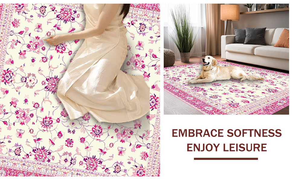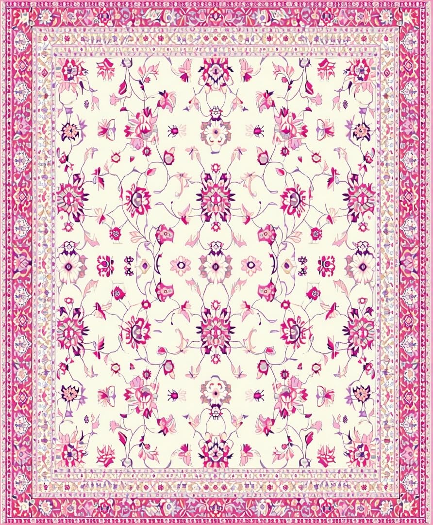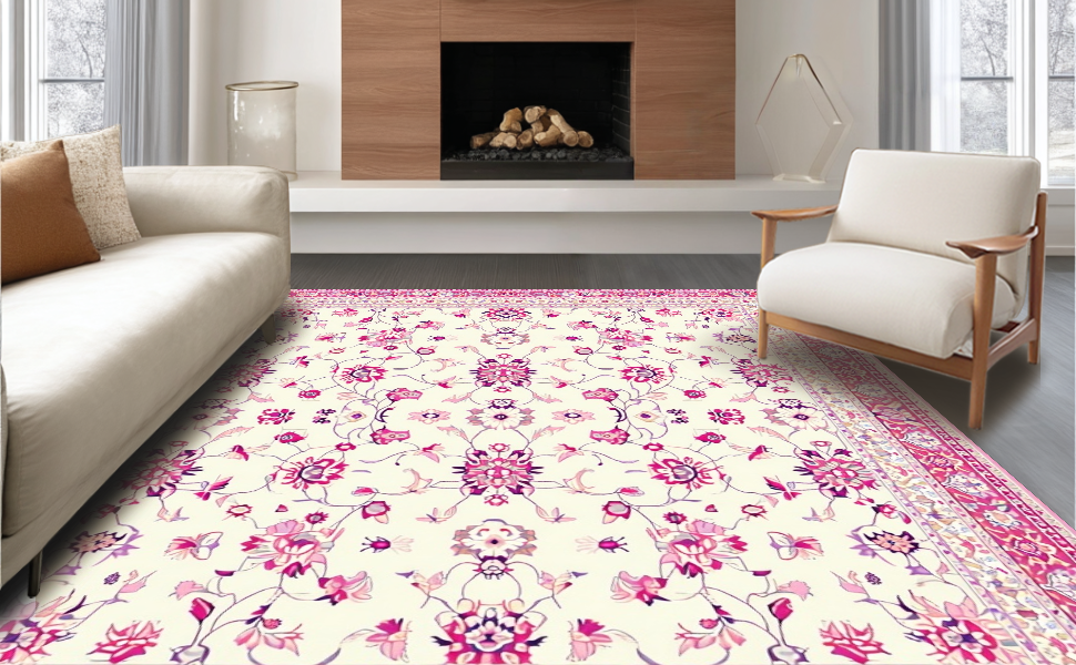 Ultra Soft Area Rug, Non Slip, Stain Resistant, Washable Area Rugs for Living Room, Bedroom, Charming Folk Art Floral Inspiration(Ivory) Overview: