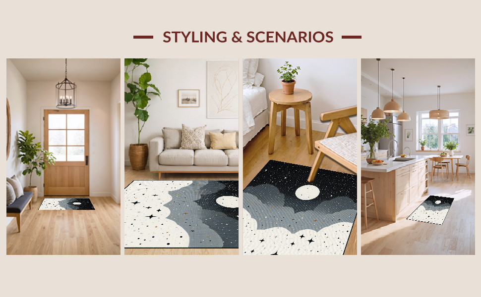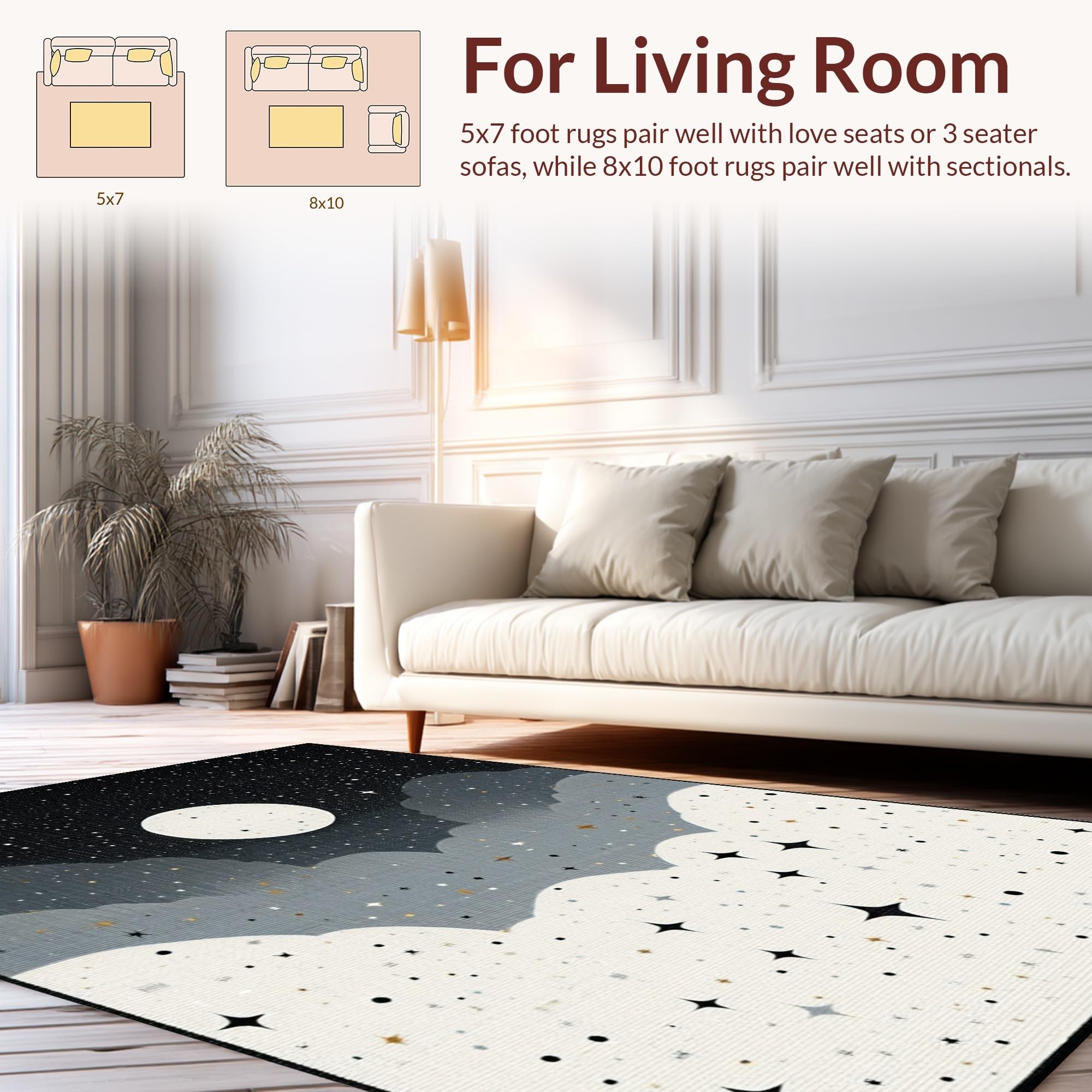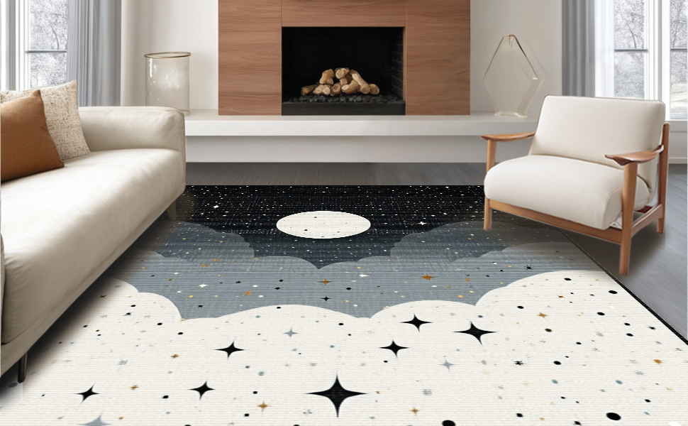 Ultra Soft Area Rug, Non Slip, Stain Resistant, Washable Area Rugs for Living Room, Bedroom, Charming Grey Cosmic Elements(Gray) Overview: