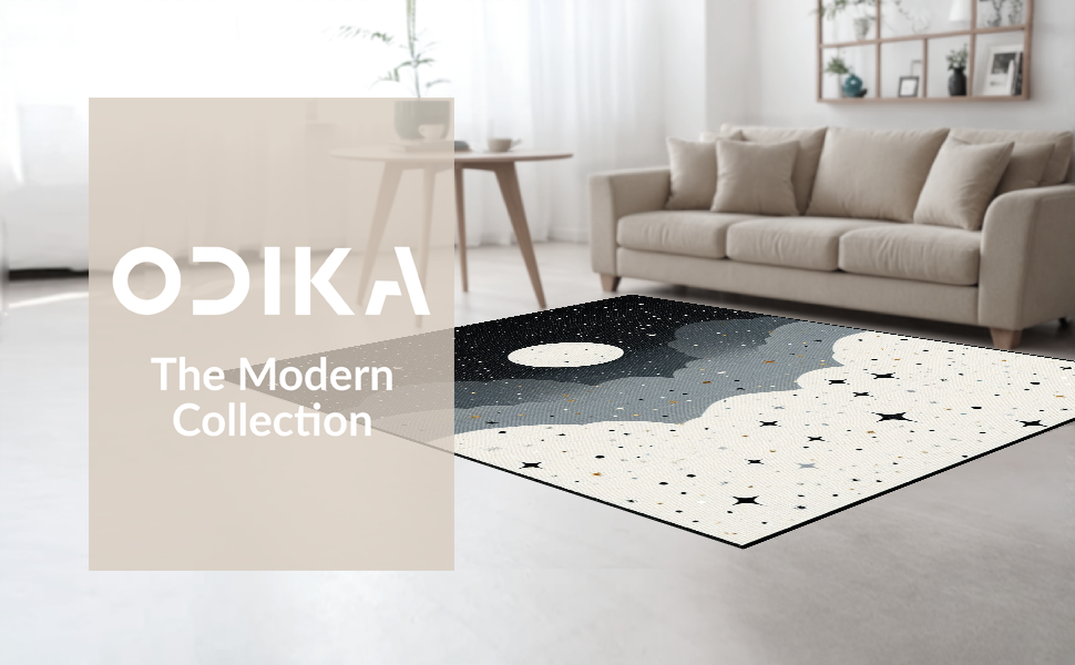 - Modern, artistic: Add a piece of modern charm from ODIKA to your bedroom collection. Designed with the art of minimalism, this rug is sure to provide your bedroom with coziness.