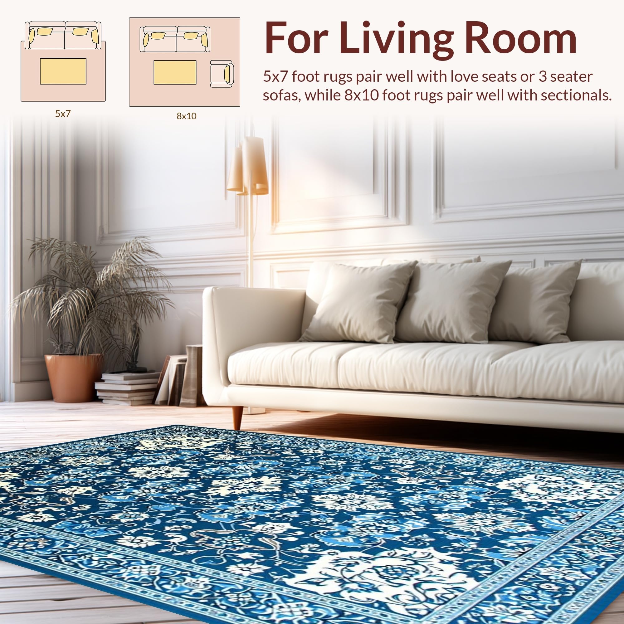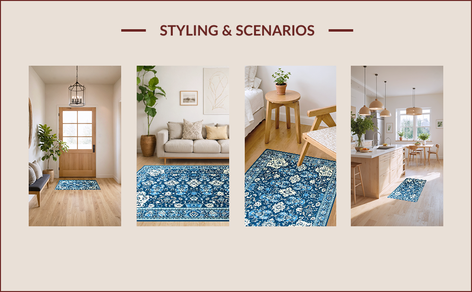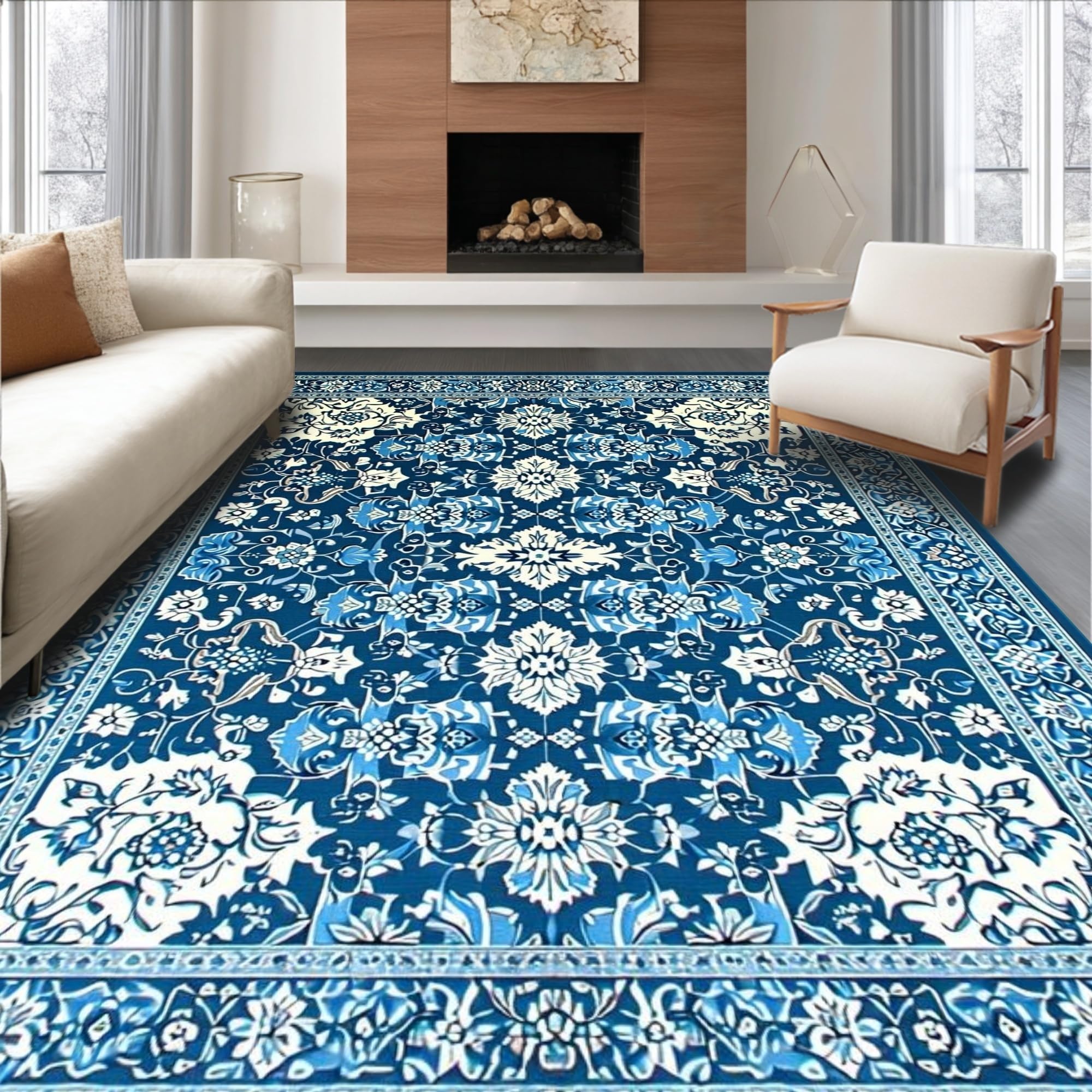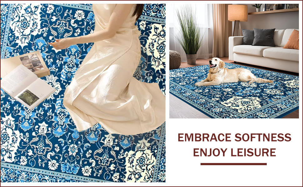Ultra Soft Area Rug, Non Slip, Stain Resistant, Washable Area Rugs for Living Room, Bedroom, Charming High-Low Floral Arrangement(Blue) Overview: