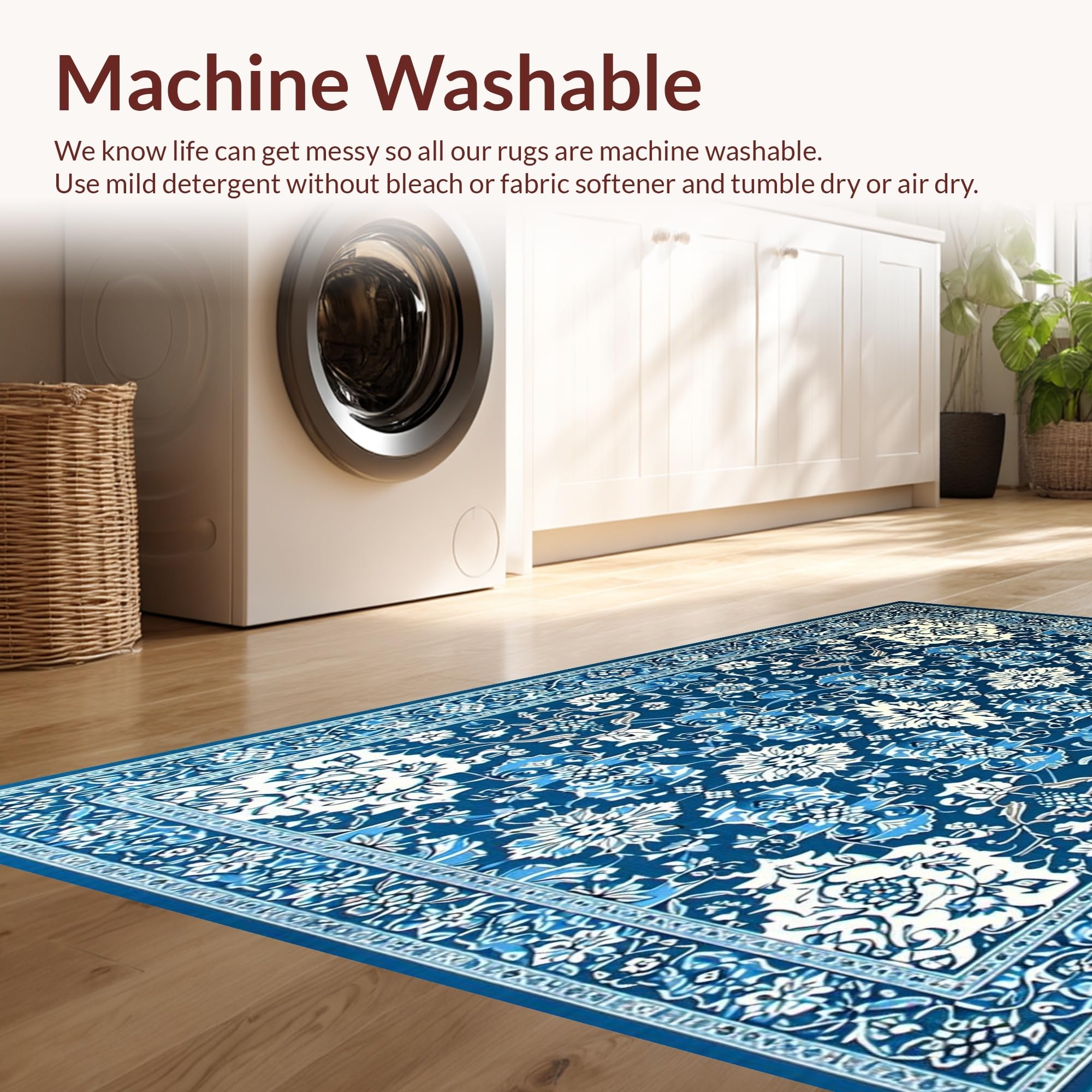 - Machine Washable: Our rugs can be easily thrown in the wash machine.