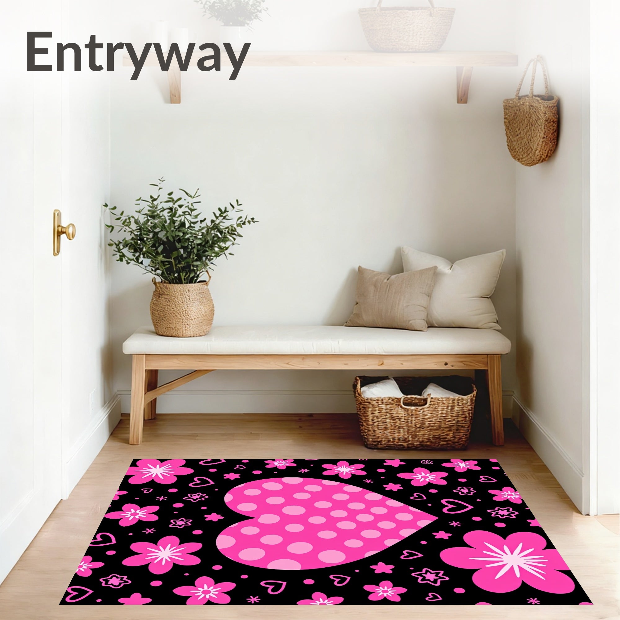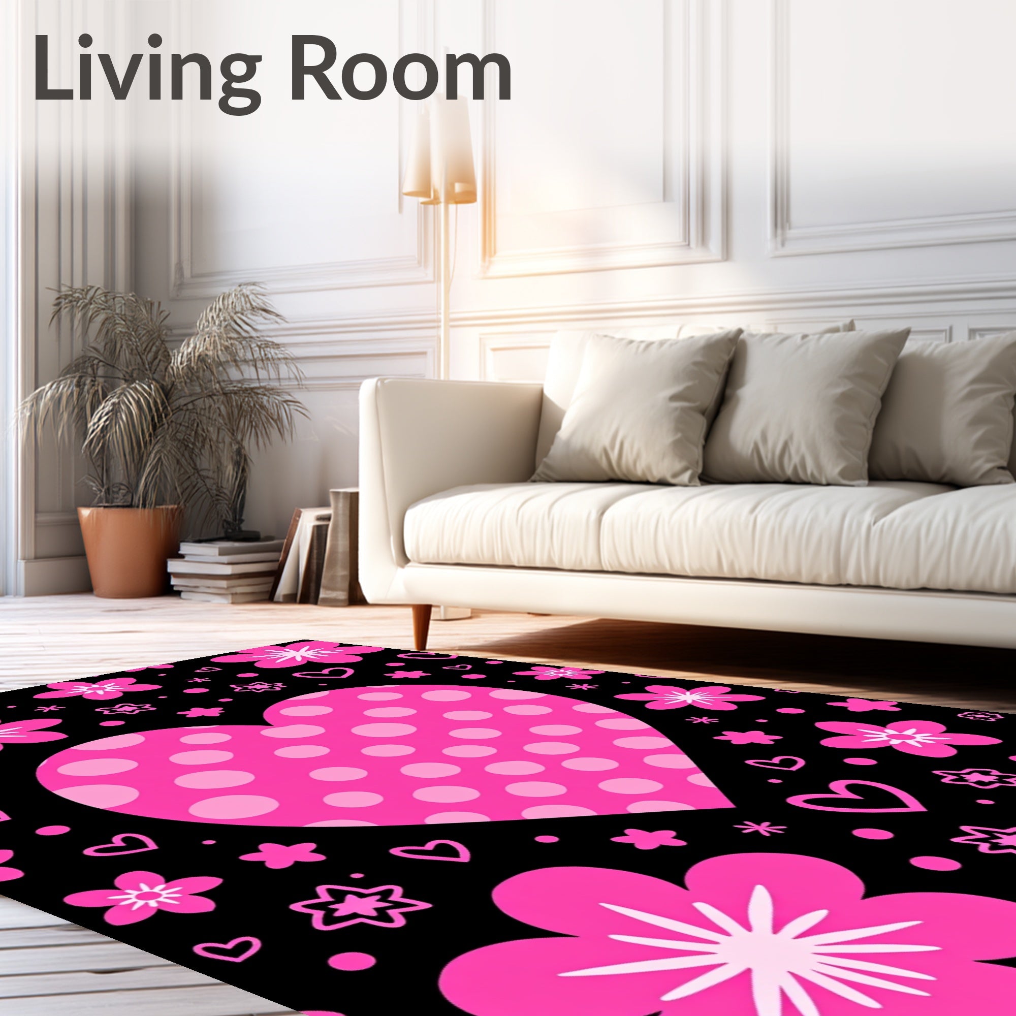 Flatwoven High Traffic Area Rug, Charming Kawaii with Playful Blossom Details and Whimsical Dots, Non Slip, Stain Resistant, Washable Area Rugs for Living Room, Bedroom (Pink) Overview: