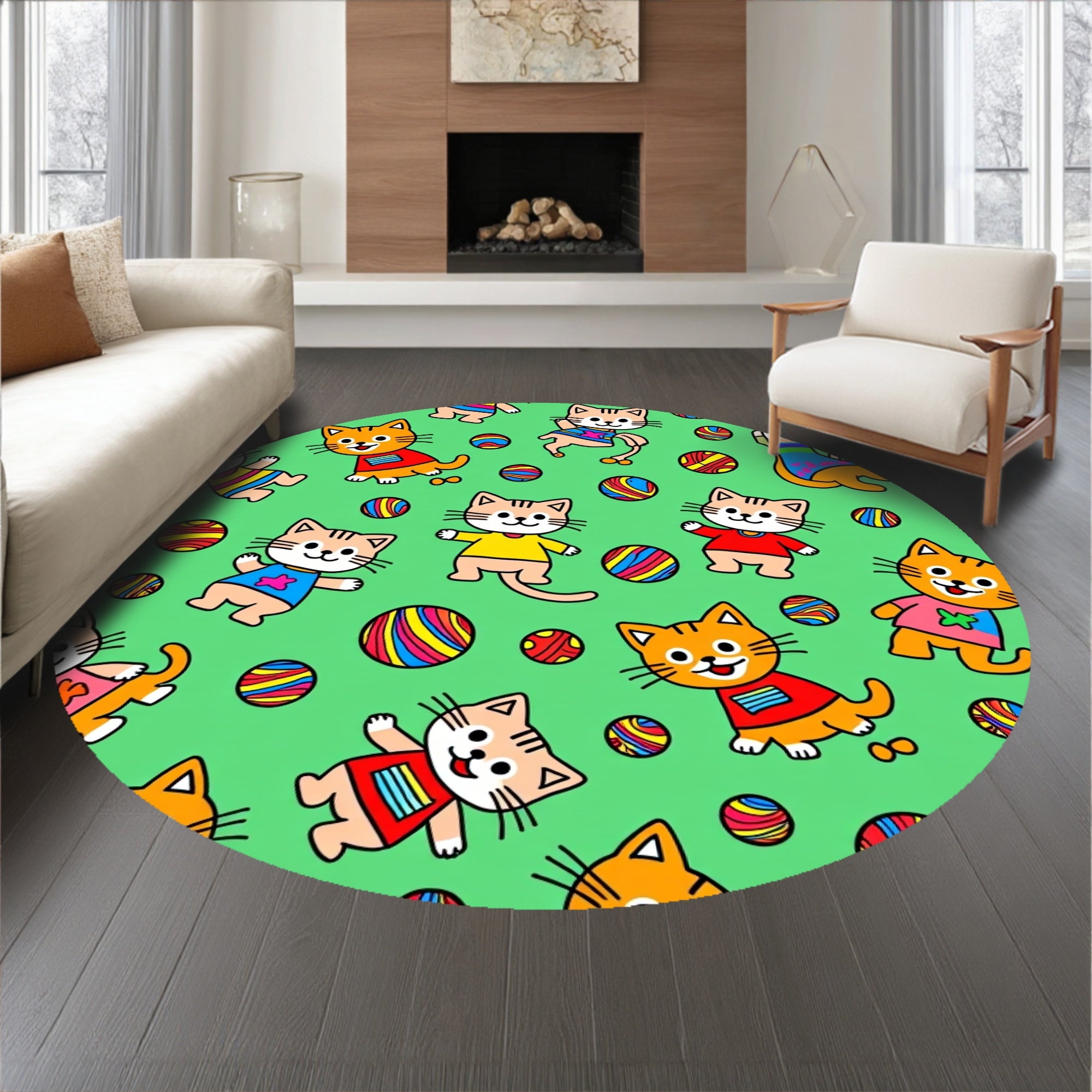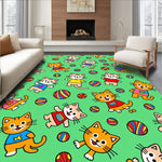 Ultra Soft Area Rug, Non Slip, Stain Resistant, Washable Area Rugs for Living Room, Bedroom, Charming Kitty Parade Motif Artwork With Yarn Accents(Green) Overview: