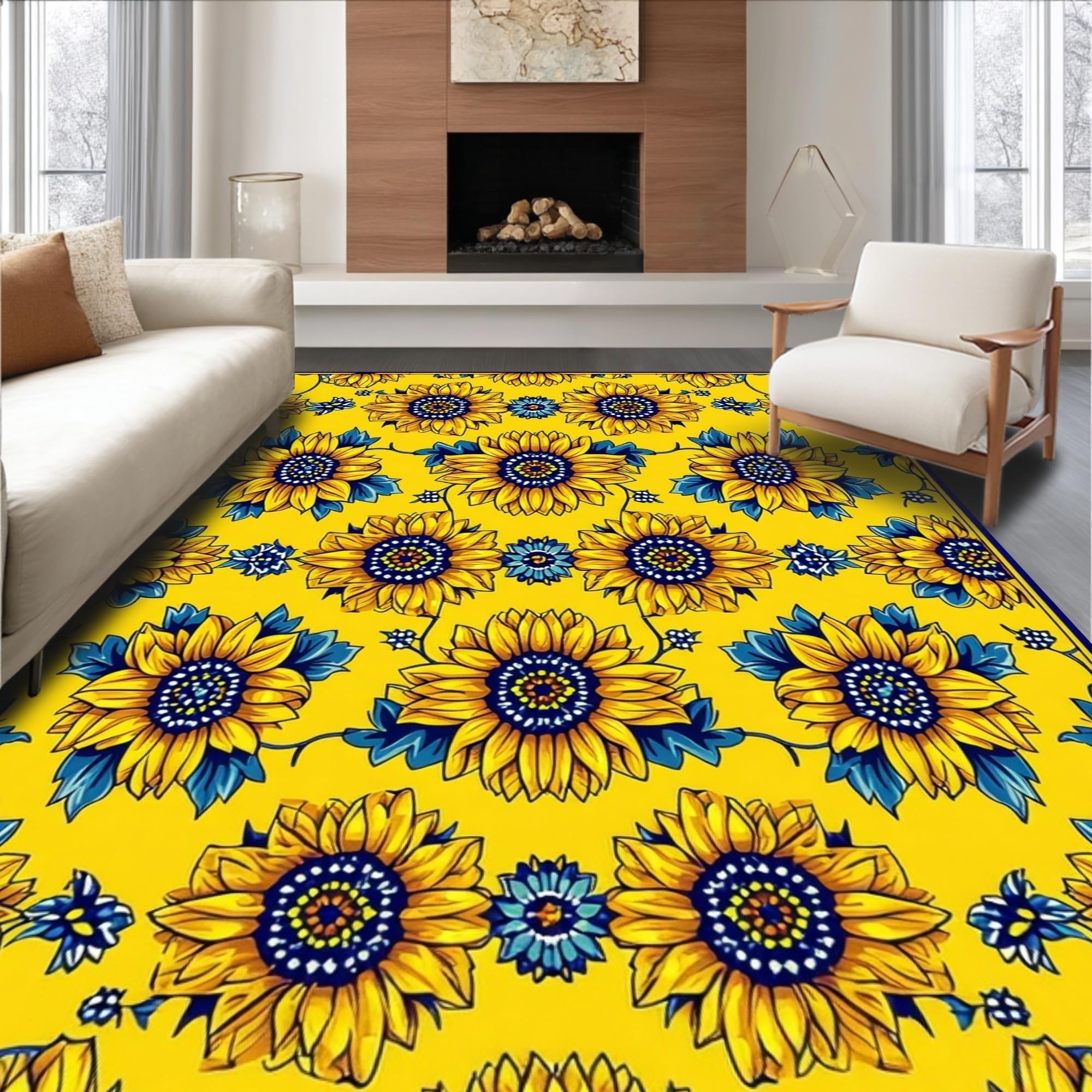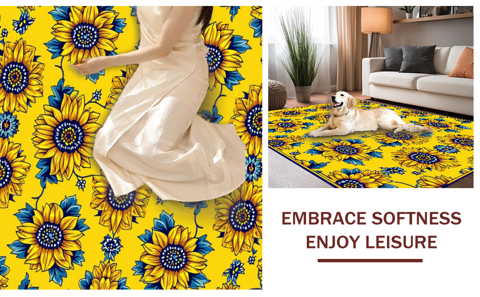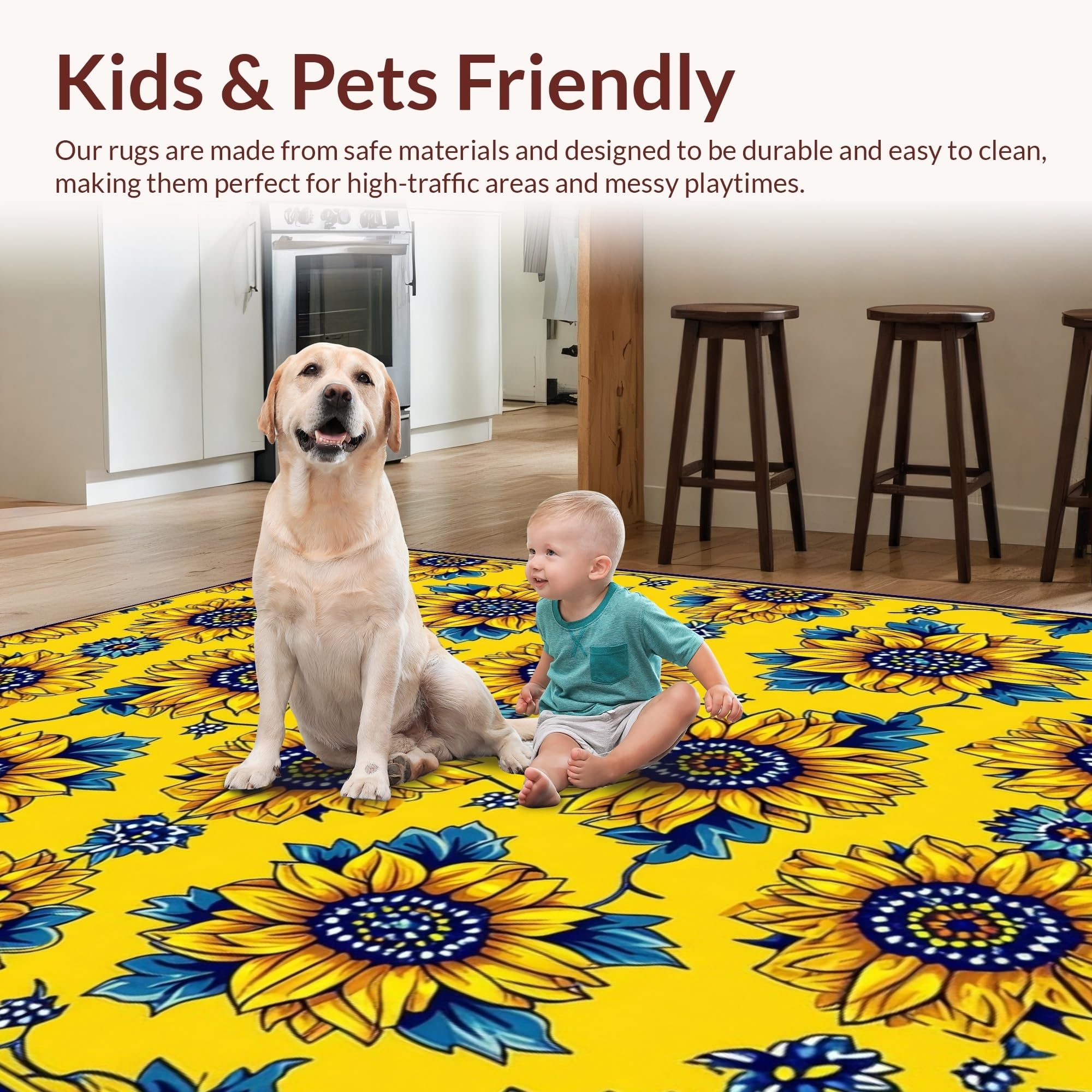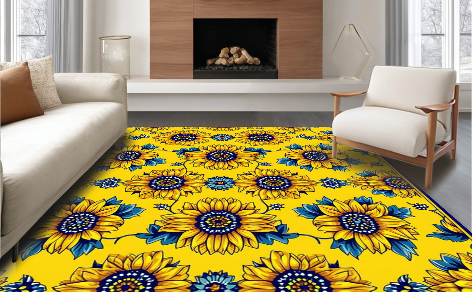 Ultra Soft Area Rug, Non Slip, Stain Resistant, Washable Area Rugs for Living Room, Bedroom, Charming Low-Pile Botanical Elegance(Yellow) Overview:
