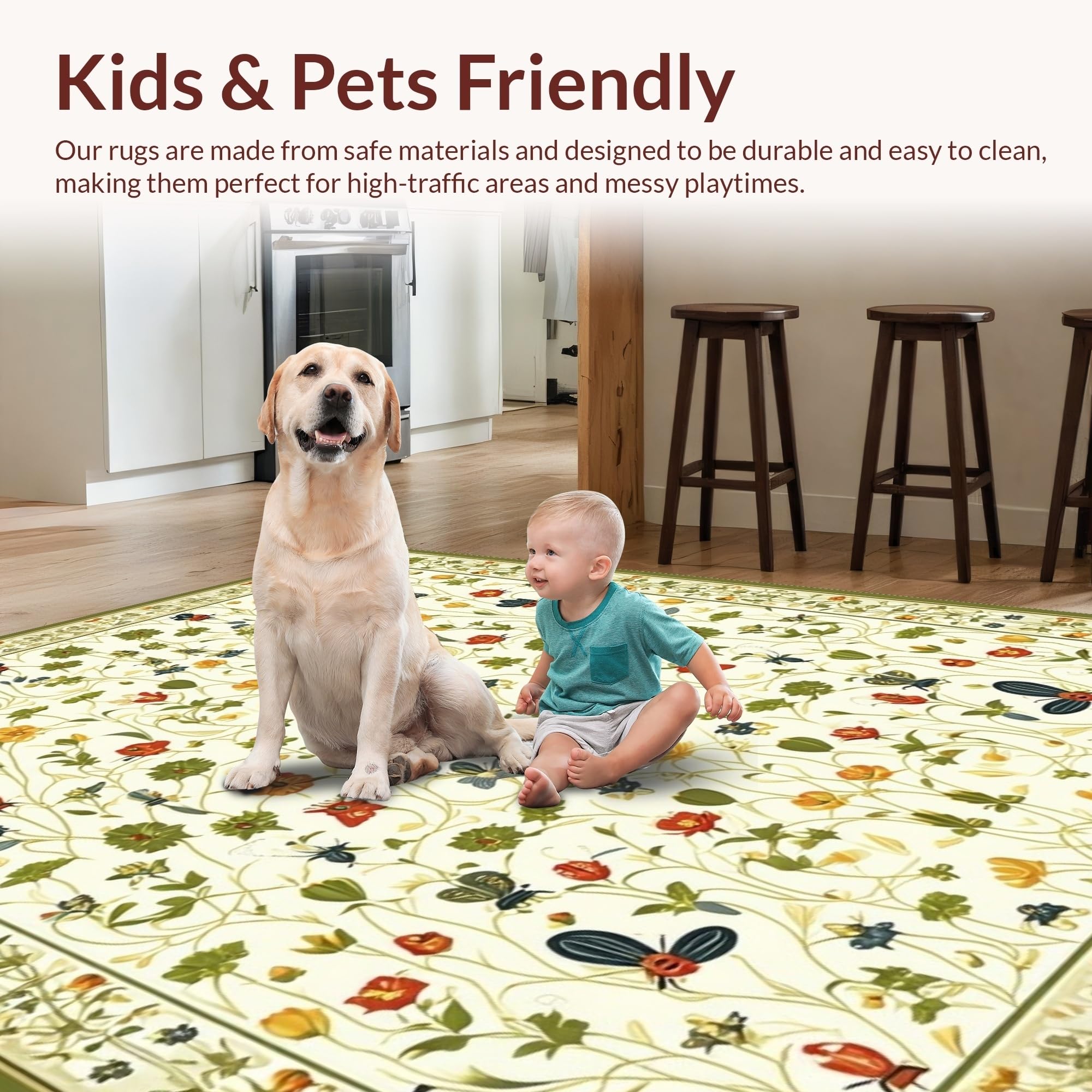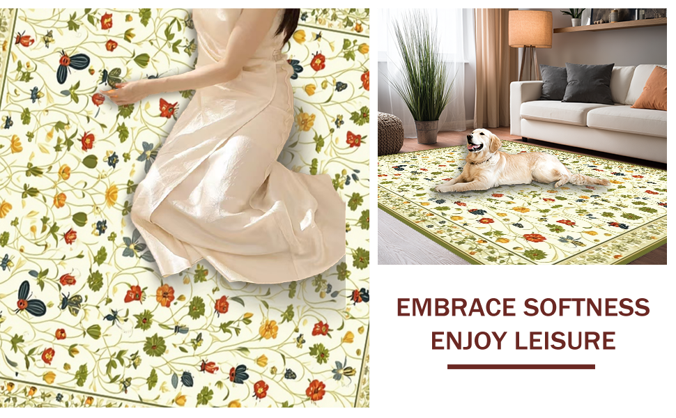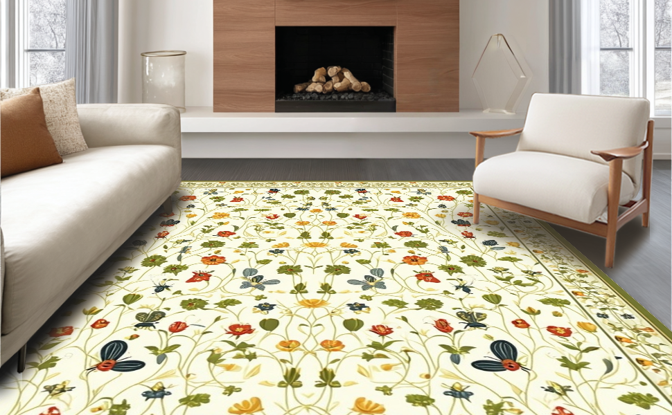 Ultra Soft Area Rug, Non Slip, Stain Resistant, Washable Area Rugs for Living Room, Bedroom, Charming Natural Motif Display(Ivory) Overview: