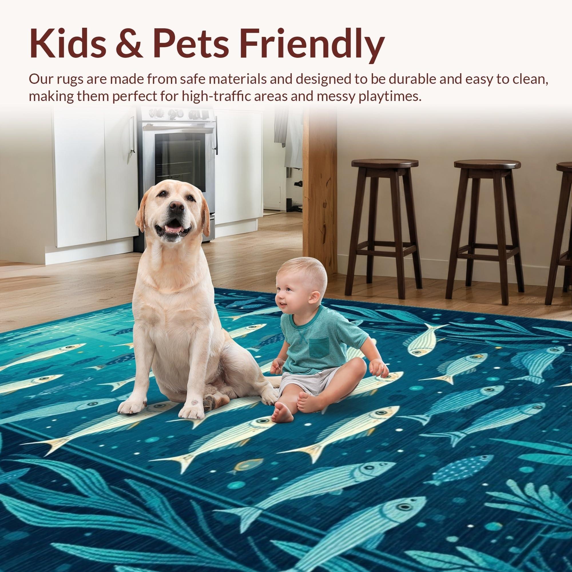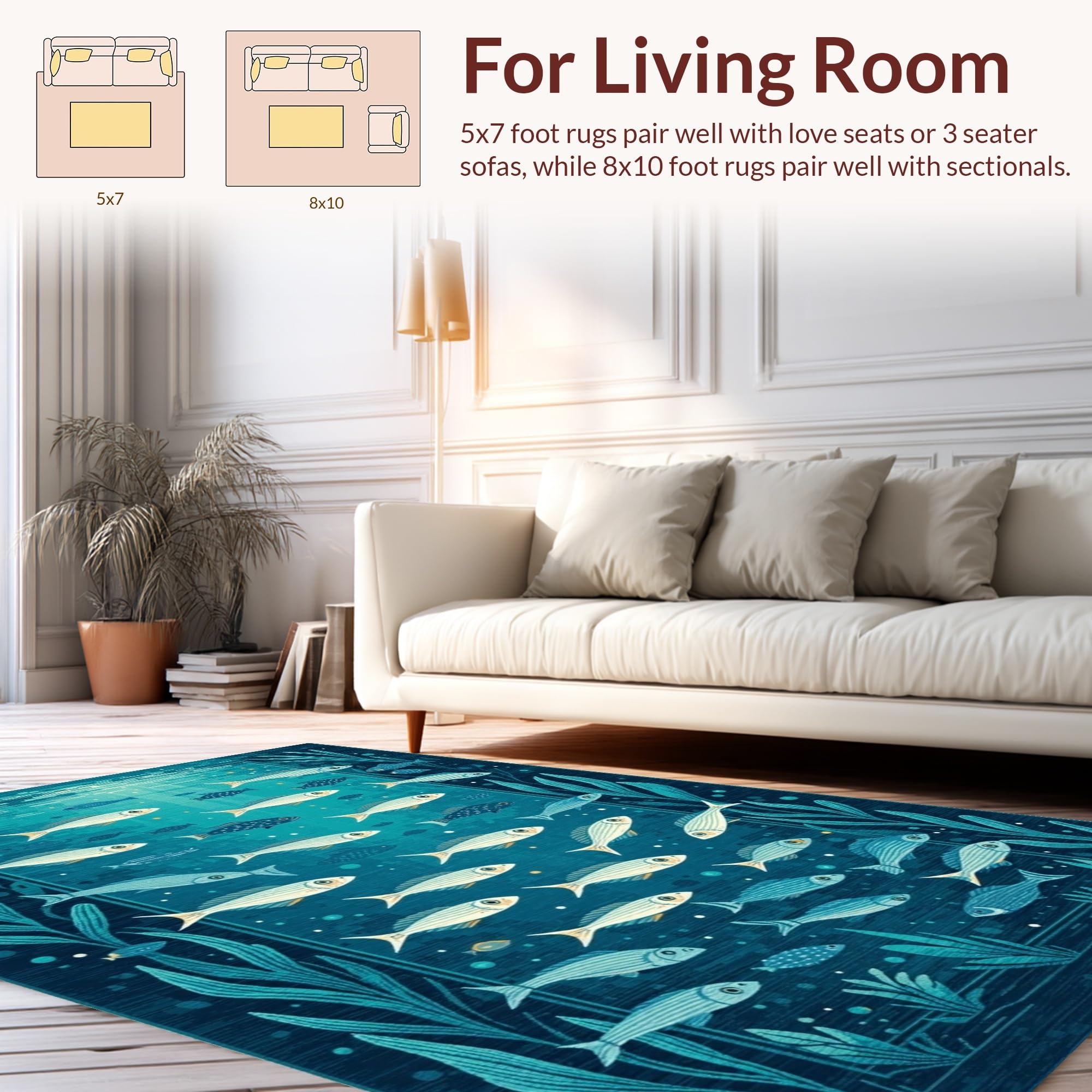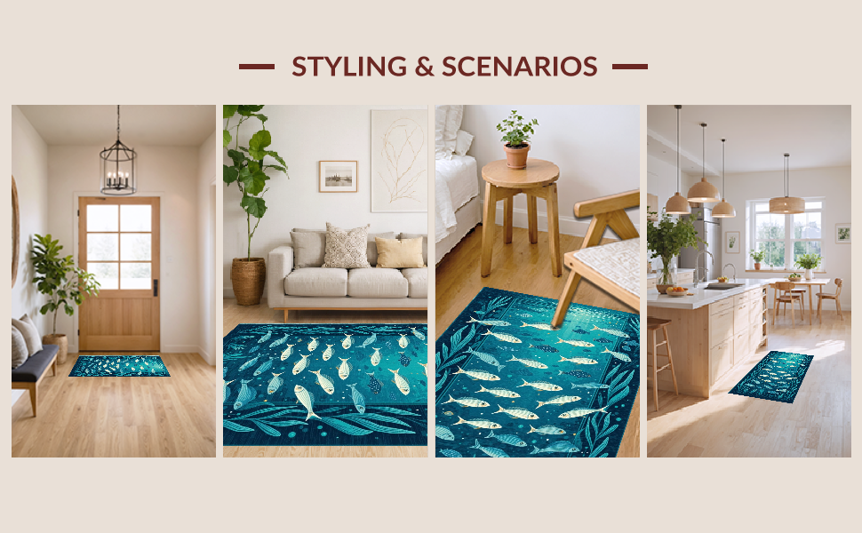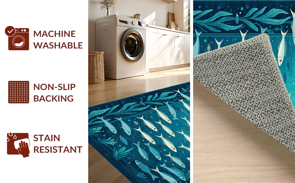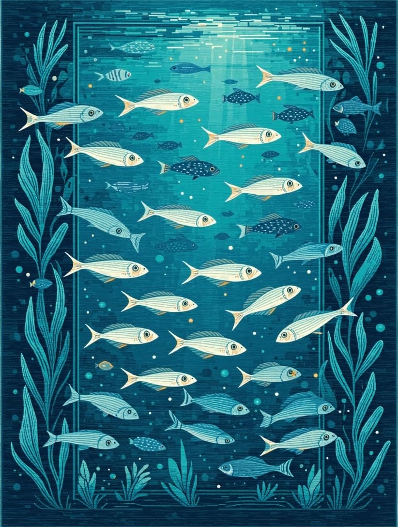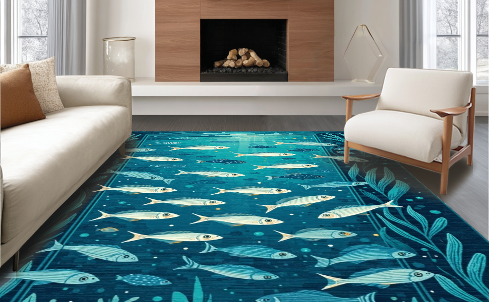 Ultra Soft Area Rug, Non Slip, Stain Resistant, Washable Area Rugs for Living Room, Bedroom, Charming Nautical Aesthetic Rug(Blue) Overview: